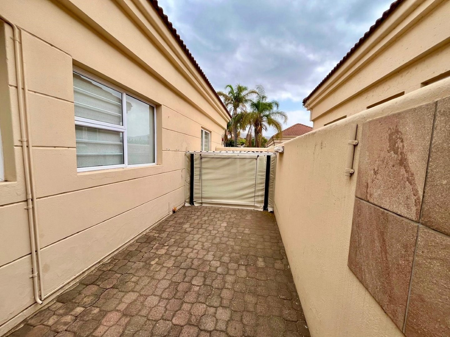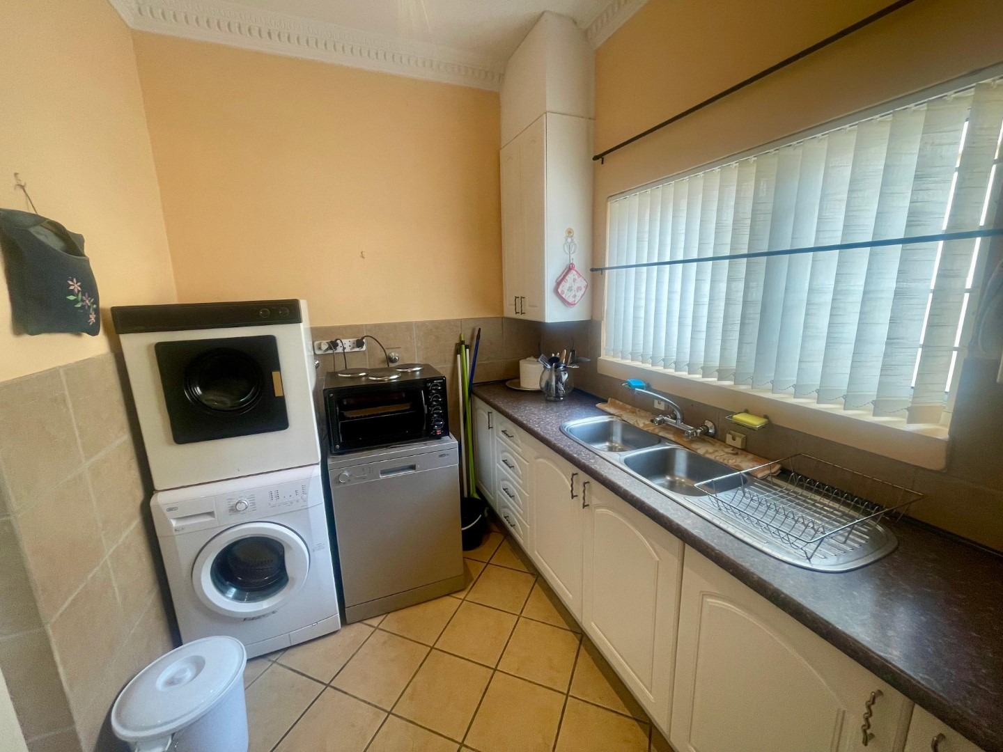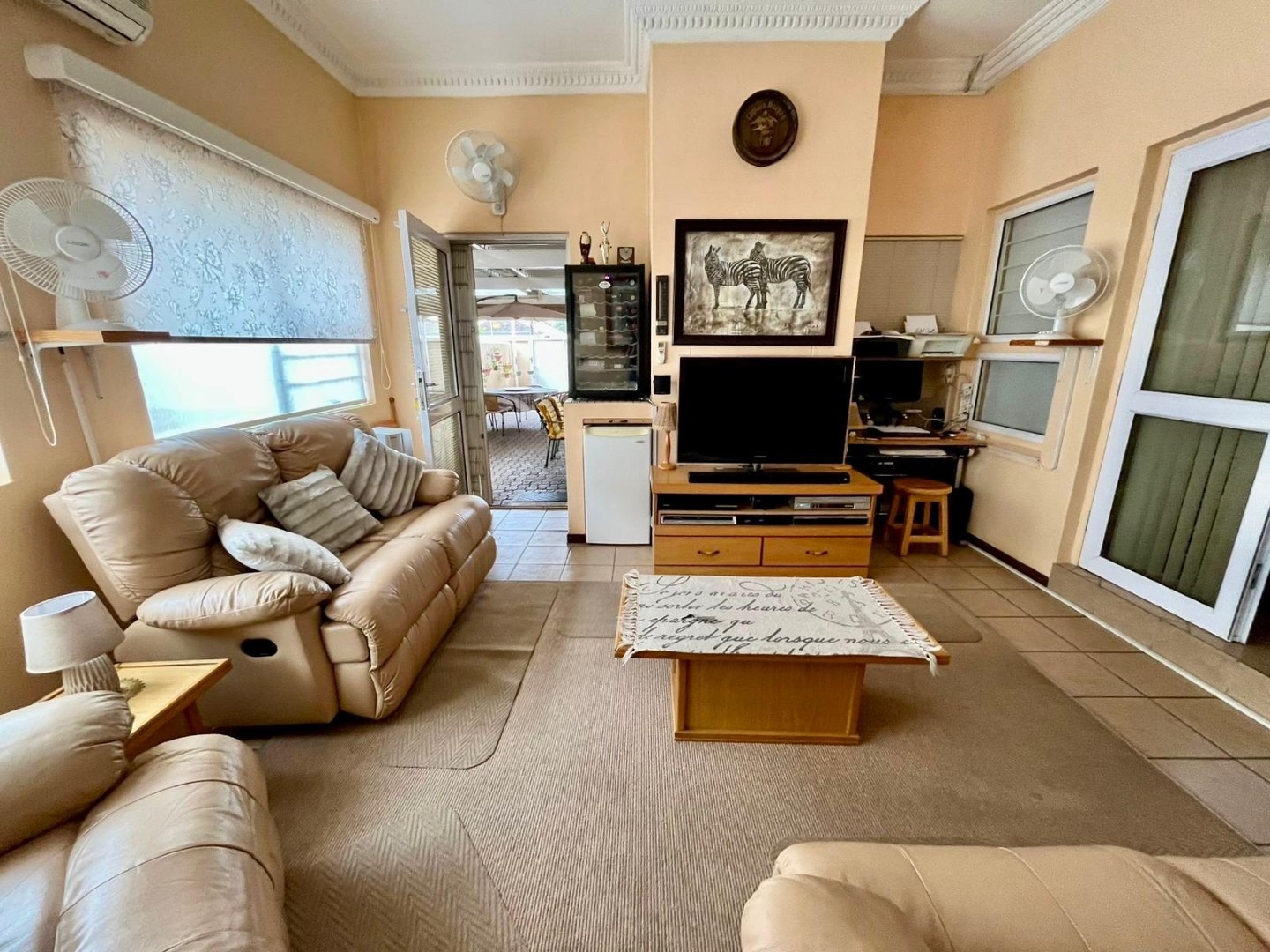 This beautiful 3-bedroom, 2-bathroom home is perfect for comfortable living, with the main bedroom offering an ensuite for added privacy and convenience. The house is fully equipped with 5 air conditioners strategically placed throughout for optimal comfort. Enjoy entertaining or relaxing in the enclosed patio, which includes a built-in braai for year-round BBQs. Additionally, there’s a well-designed outdoor braai kitchen, perfect for hosting guests.