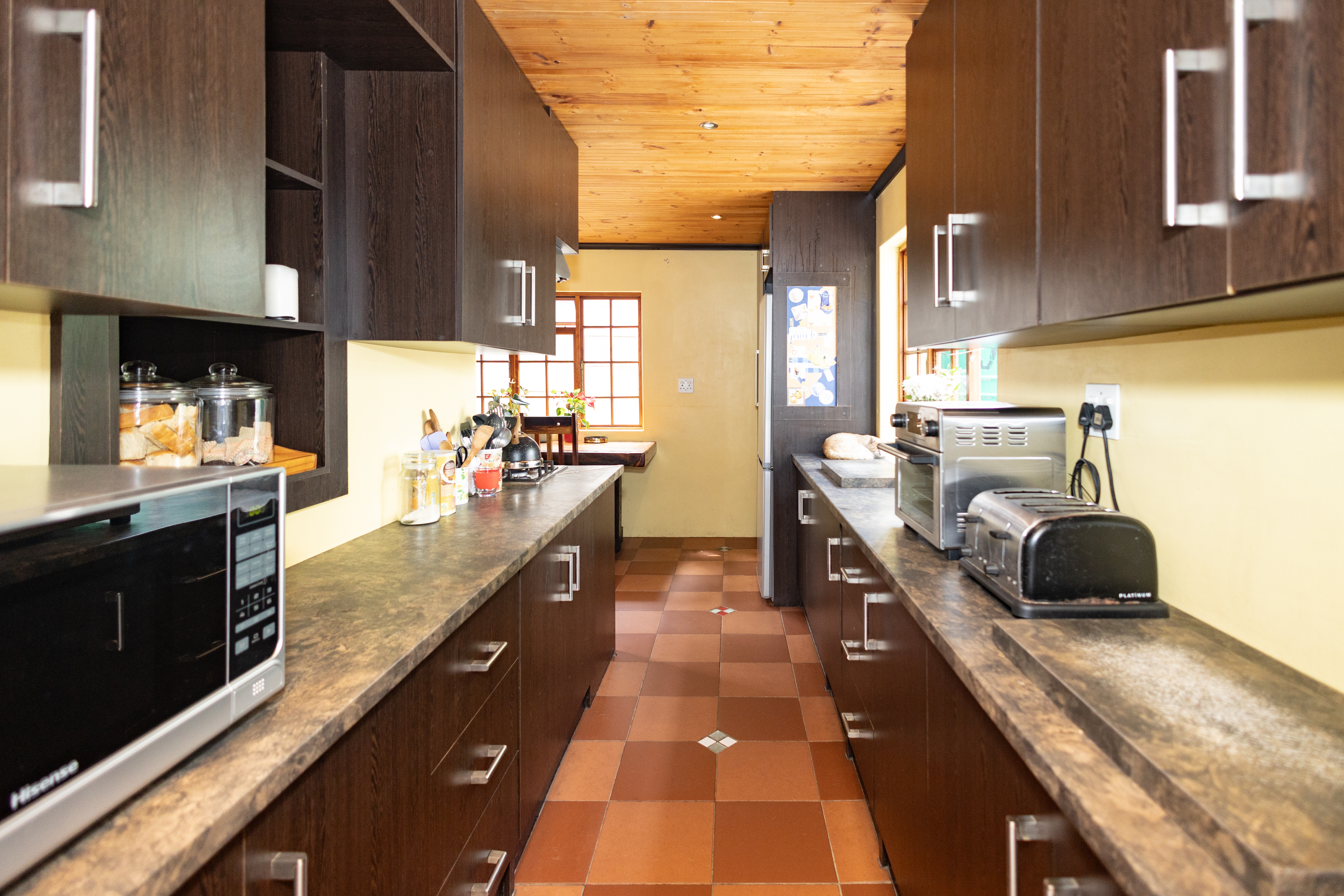 A large, modern kitchen serves as the heart of the home, offering ample cupboard space and functionality for the whole family. Step outside to an undercover braai area, perfect for year-round entertaining.