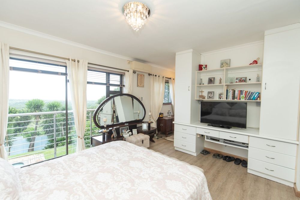 The kitchen is truly a chef’s delight, featuring built-in appliances, ample cupboard space, and a stunning view overlooking the ocean, pool, and lush garden. A second kitchen/scullery offers additional convenience with a gas stove, prep bowl, and space for a washer and dryer.