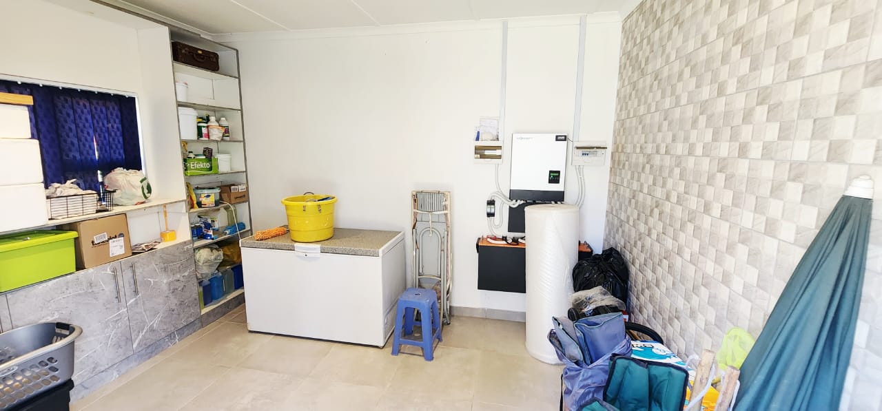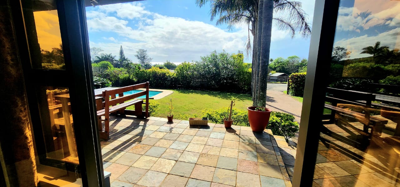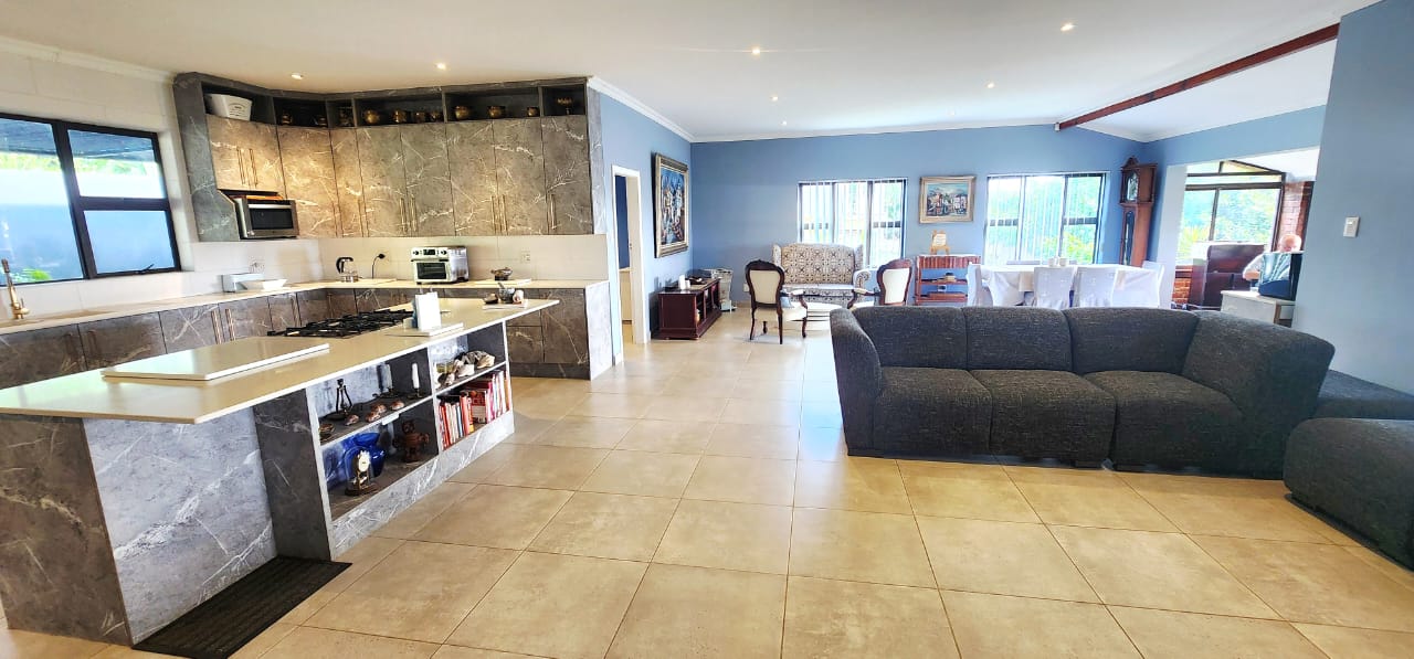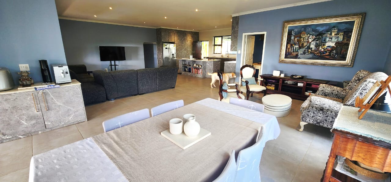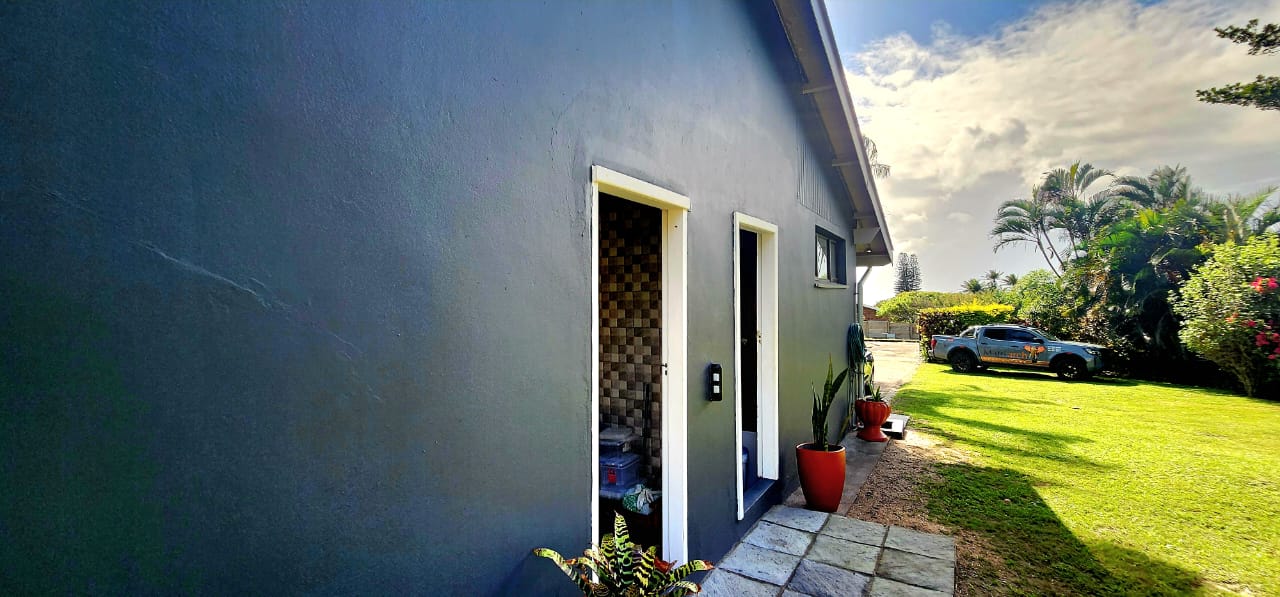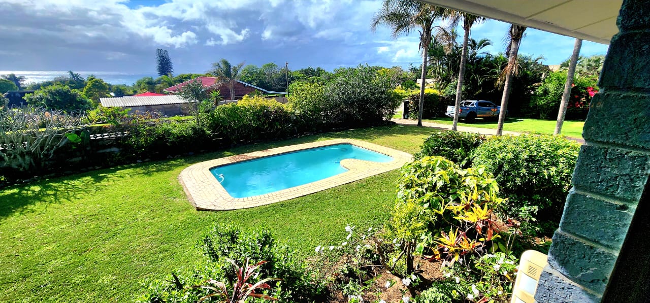Set on a flat stand, only 200m from the beach and the local superette a short walk, a safe and secure area where the locals form a tight community. This immaculate home has been completely refurbished from floor to ceiling, electrical to plumbing. Stunning tiles throughout with modern kitchen and magical bathrooms. Enter into the long sunroom with lovely ocean views, this opens to the expansive open plan lounge, dining and kitchen areas with enough space to accommodate an intimate seating area. Off this area is a bedroom or study with its own ensuite consisting of toilet, basin and shower (perfect guest bedroom) On the opposite side of the home are 4 large bedrooms and a family bathroom (shower, basin and toilet), the main bedroom is huge and has a separate dressing room and a stunning ensuite, also with shower, basin and toilet. There is an outside laundry and a small workshop attached to the home, a single garage with a shadeport attached, the property is fully walled and secure with alarm and beams. The gardens are immaculate, with towering palms lining the driveway, rolling lawns and a swimming pool. There is a 7,7kw, 14 panel solar system with inverter and back-up batteries, running 95% off the grid. Water storage tanks for the dry days, plumbed to the home and a solar geyser as well. Looking for a property that is move-in ready, then this is the one! Please contact us ANYTIME to chat further! Matriarch Real Estate powered by Mandate Property Group (Pty)Ltd