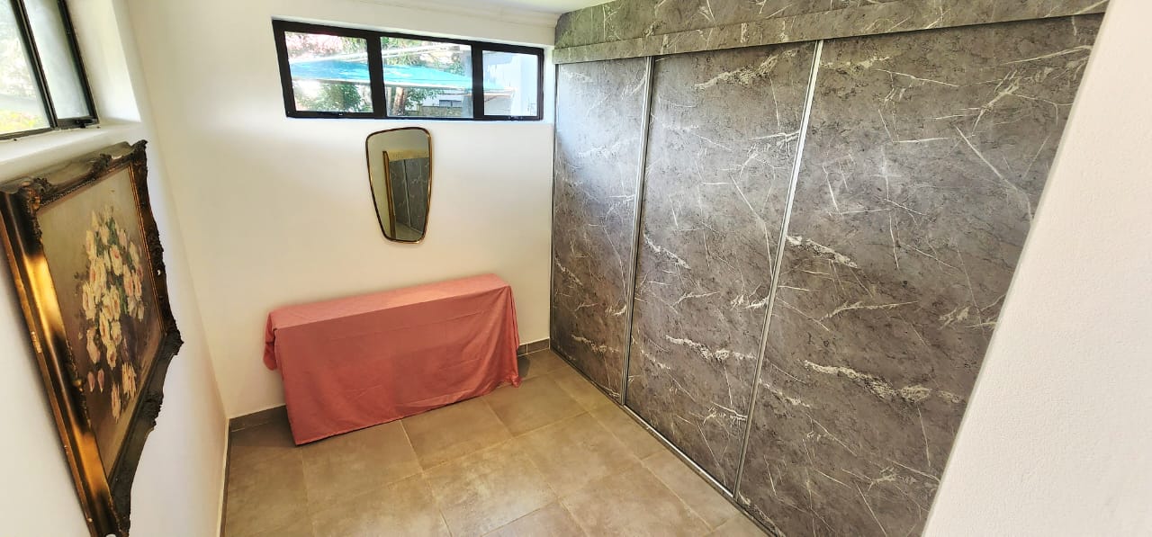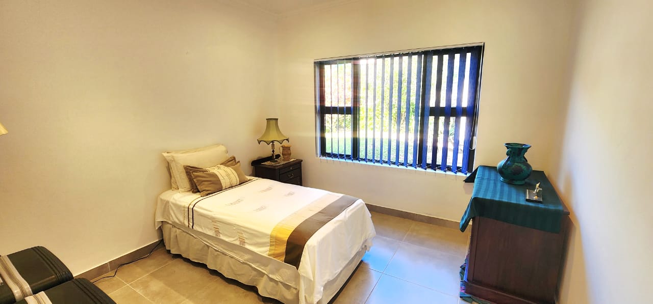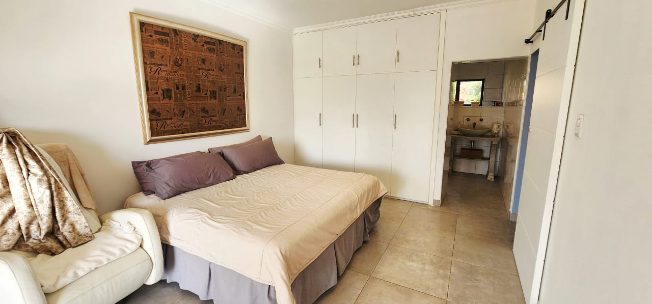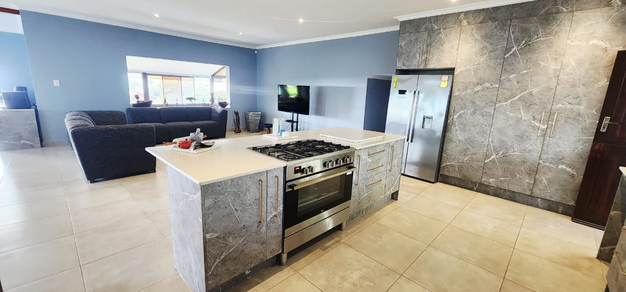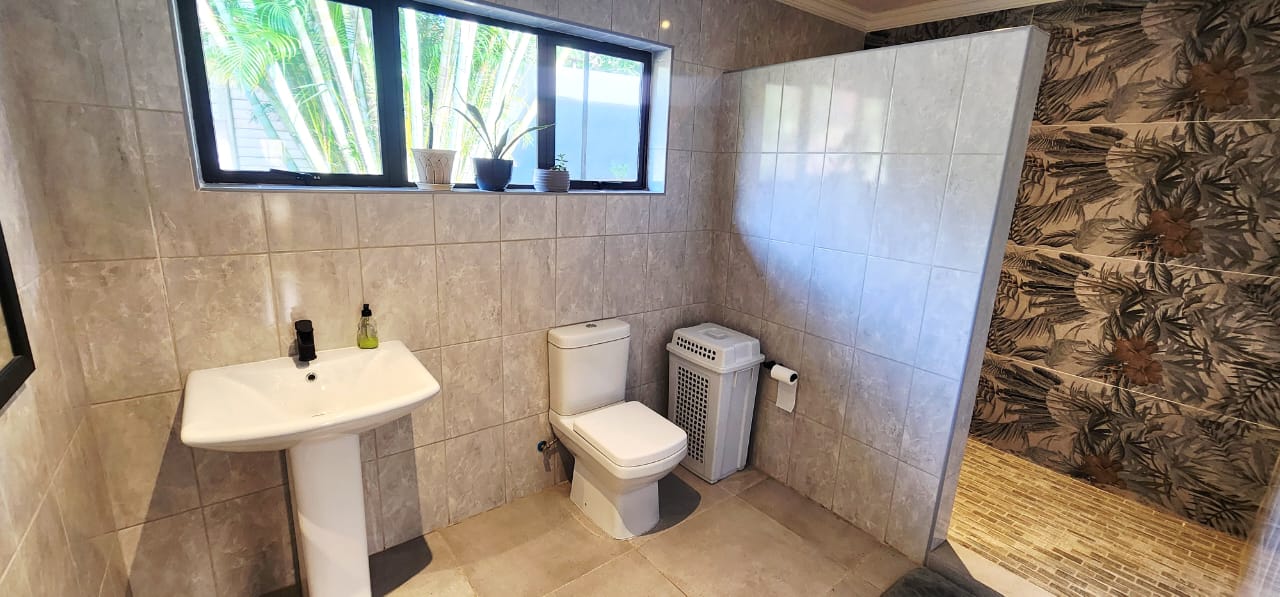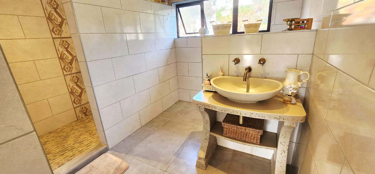 Set on a flat stand, only 200m from the beach and the local superette a short walk, a safe and secure area where the locals form a tight community. This immaculate home has been completely refurbished from floor to ceiling, electrical to plumbing. Stunning tiles throughout with modern kitchen and magical bathrooms. Enter into the long sunroom with lovely ocean views, this opens to the expansive open plan lounge, dining and kitchen areas with enough space to accommodate an intimate seating area. Off this area is a bedroom or study with its own ensuite consisting of toilet, basin and shower (perfect guest bedroom) On the opposite side of the home are 4 large bedrooms and a family bathroom (shower, basin and toilet), the main bedroom is huge and has a separate dressing room and a stunning ensuite, also with shower, basin and toilet. There is an outside laundry and a small workshop attached to the home, a single garage with a shadeport attached, the property is fully walled and secure with alarm and beams. The gardens are immaculate, with towering palms lining the driveway, rolling lawns and a swimming pool. There is a 7,7kw, 14 panel solar system with inverter and back-up batteries, running 95% off the grid. Water storage tanks for the dry days, plumbed to the home and a solar geyser as well. Looking for a property that is move-in ready, then this is the one! Please contact us ANYTIME to chat further! Matriarch Real Estate powered by Mandate Property Group (Pty)Ltd