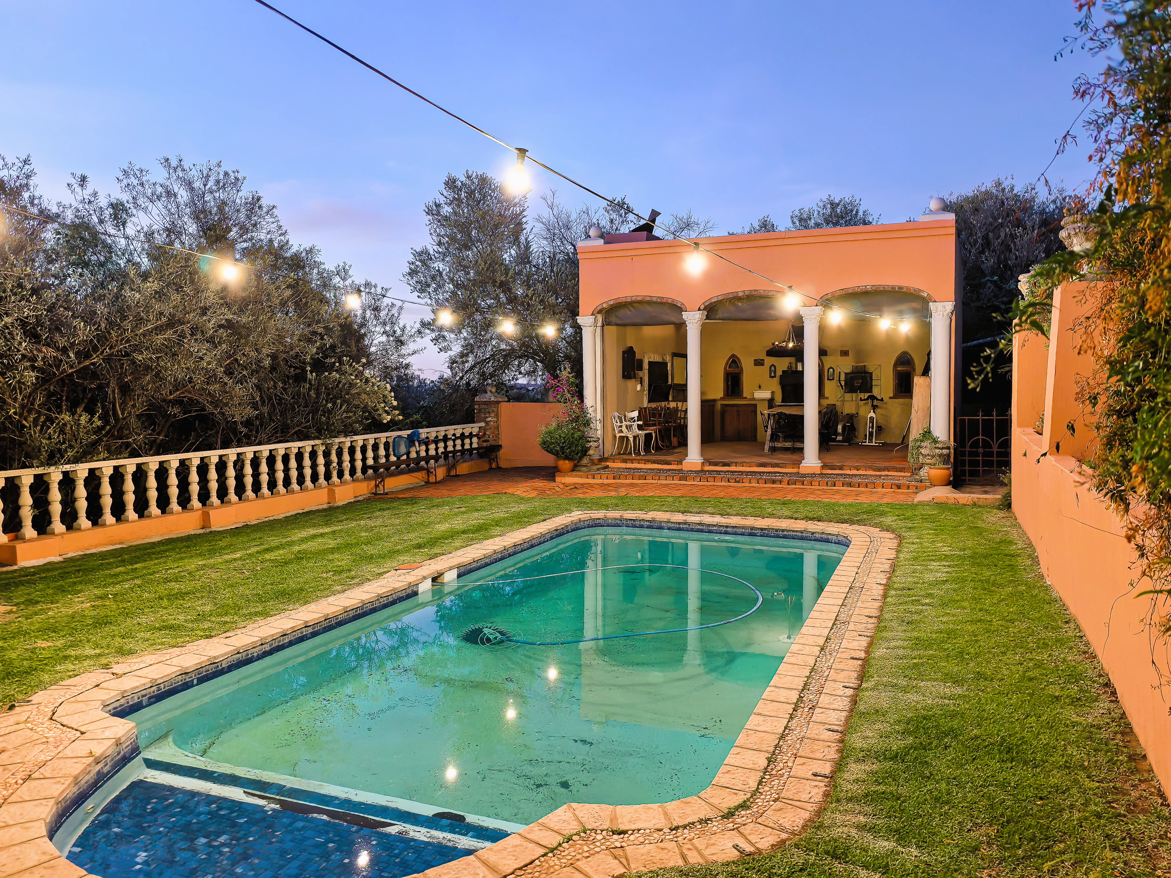 The main villa captures panoramic sunset views and exudes understated sophistication. Featuring six luxurious bedrooms, expansive living and entertainment areas, and seamless indoor–outdoor flow to verandas, patios, and a shimmering pool, the home offers the ultimate sanctuary for refined family living or exclusive guest accommodation. Two fully self-contained flatlets provide additional versatility for extended family or visitors.