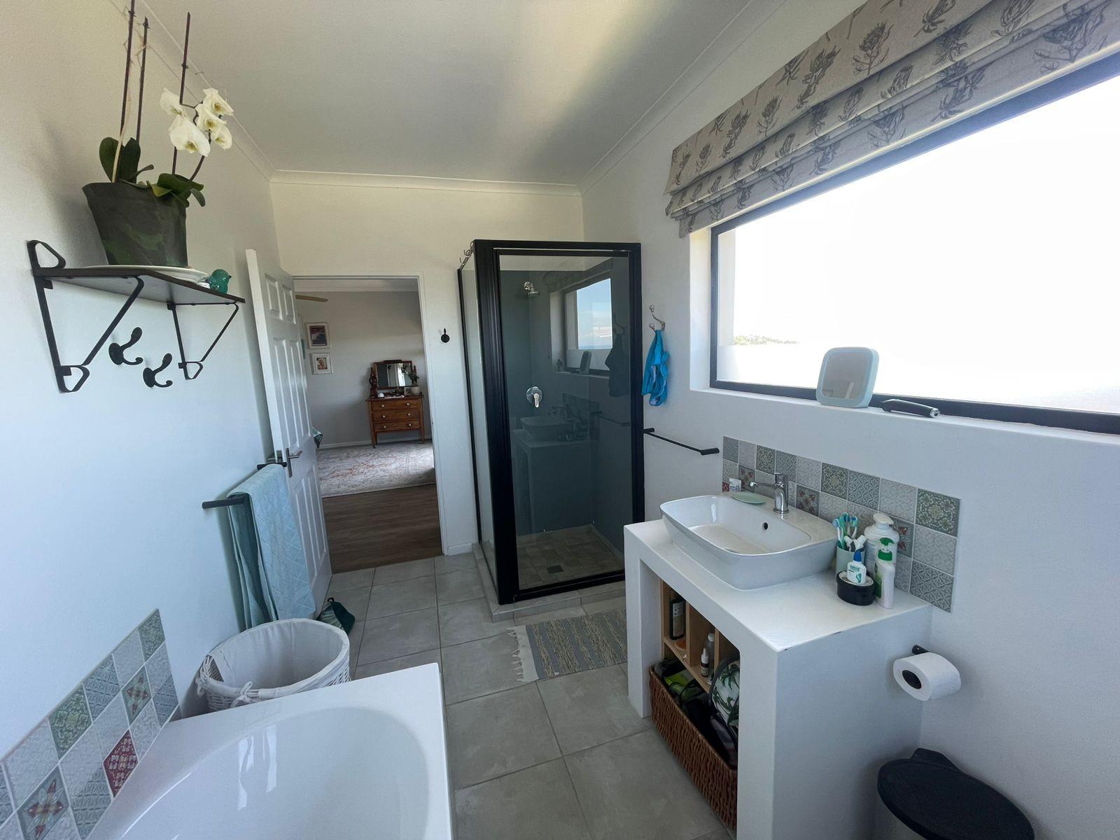 The outdoor area is perfect for family living, with a spacious paved yard, a built-in braai, and even an outdoor shower for rinsing off after those summer beach days. Parking is no problem, with four garages plus extra parking spaces.