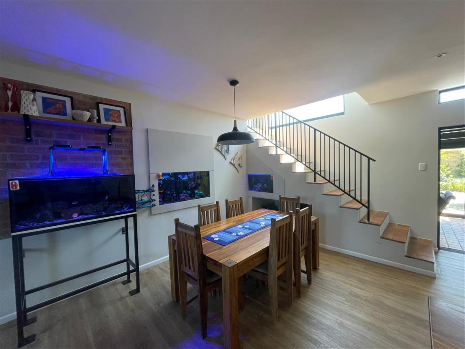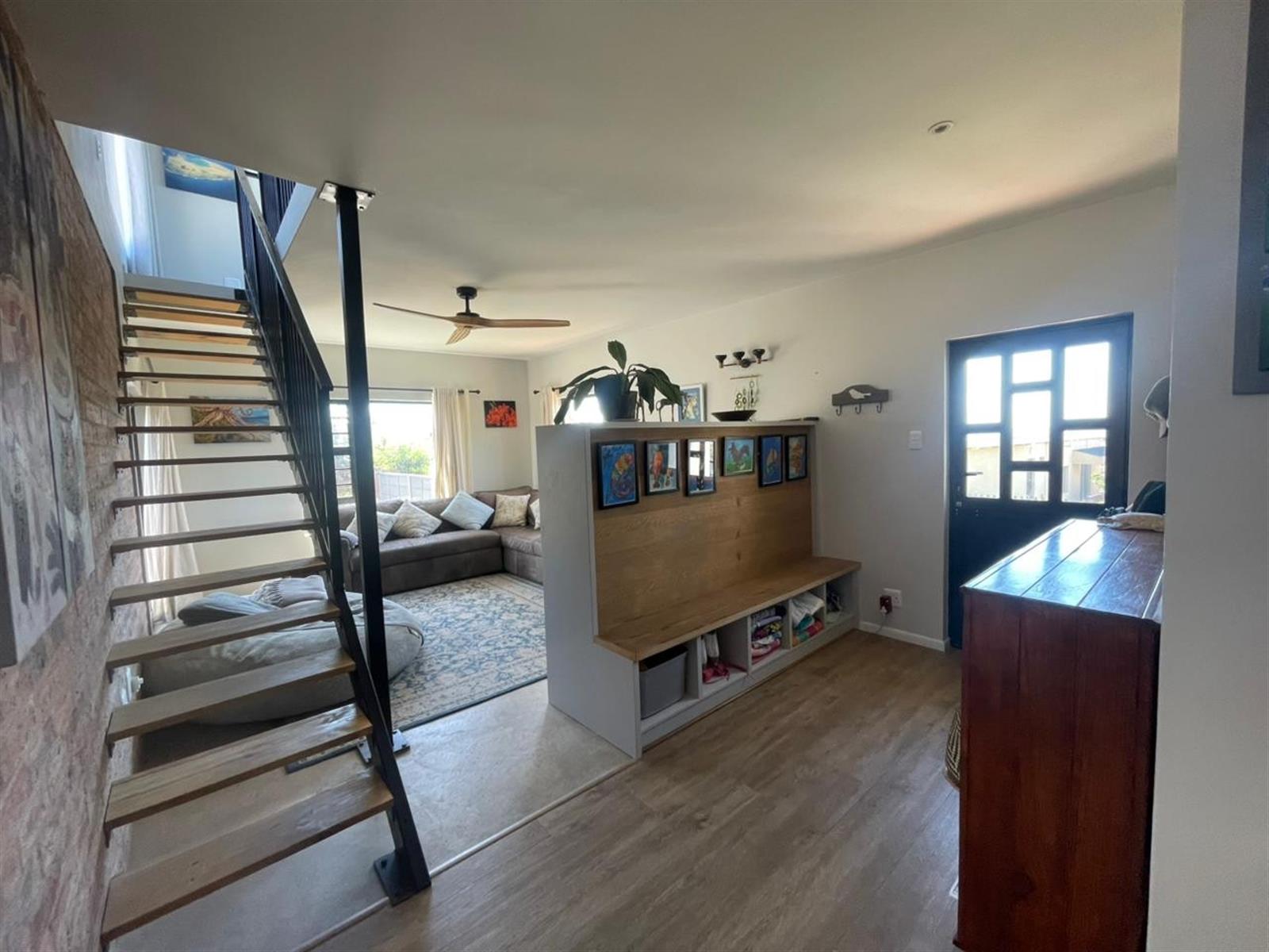 You’ll find three separate lounges, giving you loads of space for different uses—relaxing in the sun with a book, TV time with the family, or hosting guests with a braai. Large windows and sliding doors open up to the outside, including a balcony upstairs with built-in planters and lovely sea views.