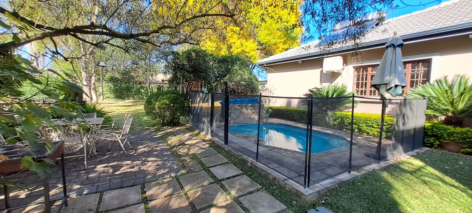 The mature garden with a secured plunge pool and kids jungle gym is level and fully walled making it a haven for outdoor living.