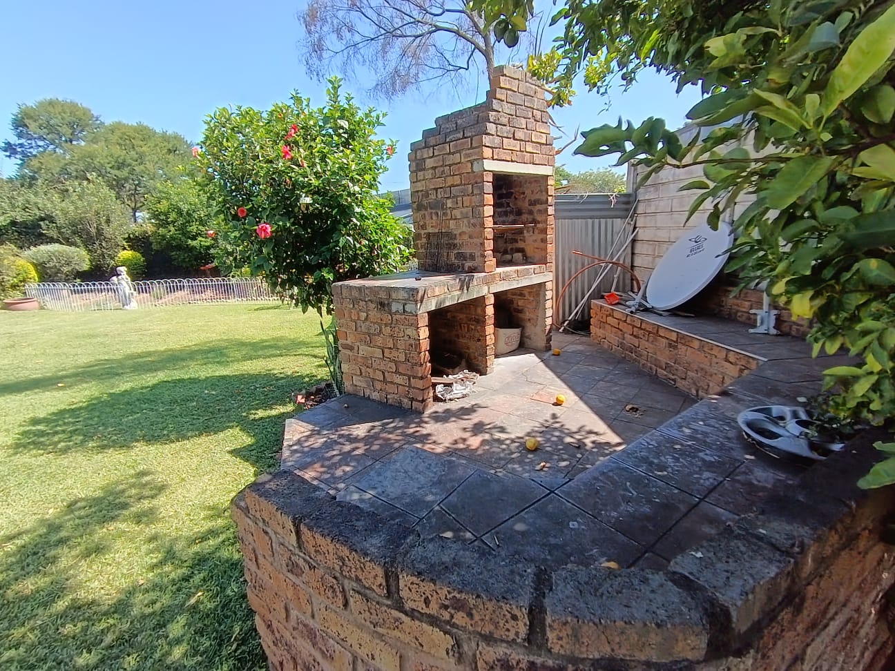 The kitchen leads to a spacious patio overlooking the garden. Built-in braai and seating area located in the garden. Swimming pool and lapa. Located close to shops, this 4 Bedroom House in Queenswood offers space and convenience.
