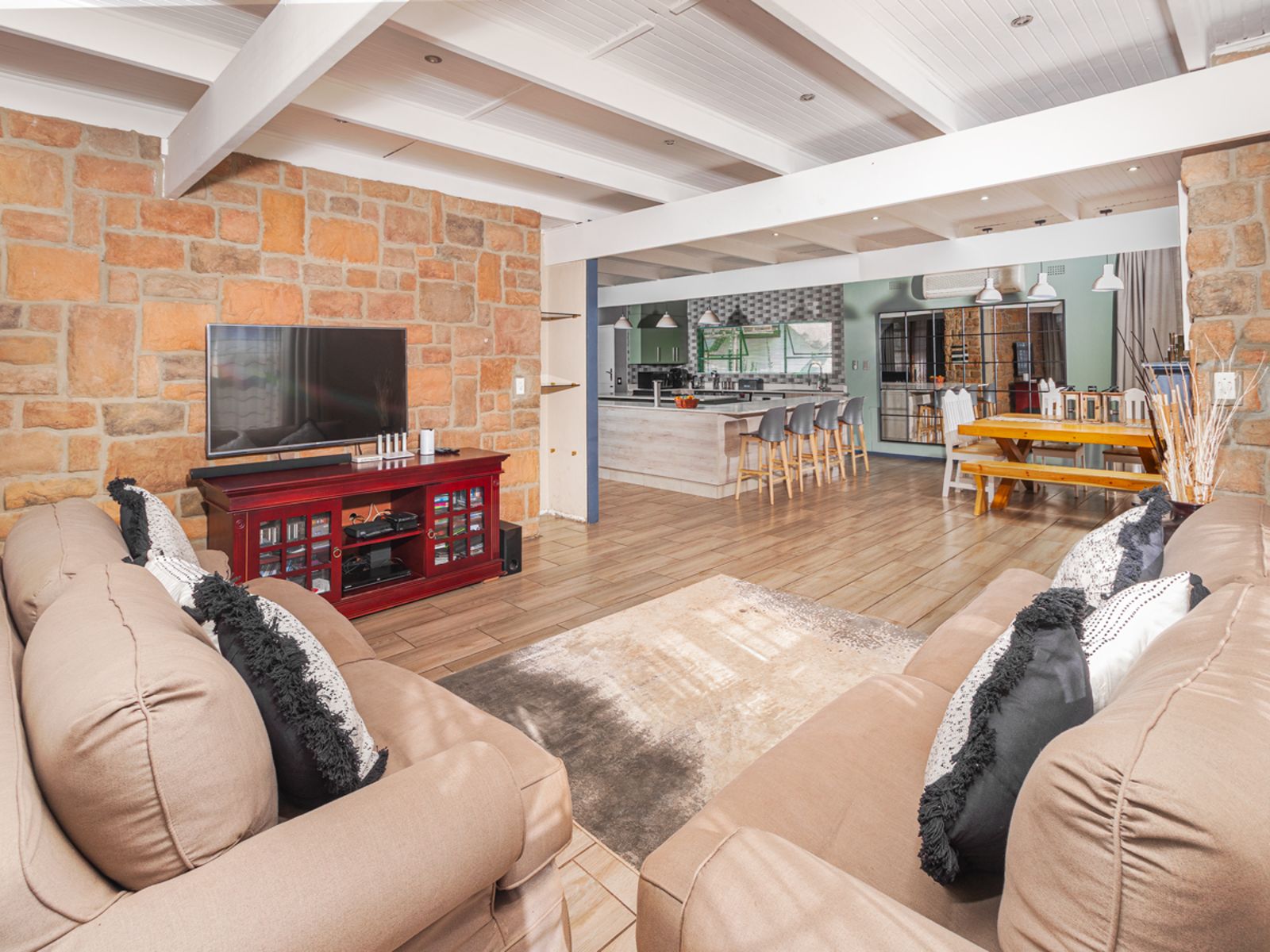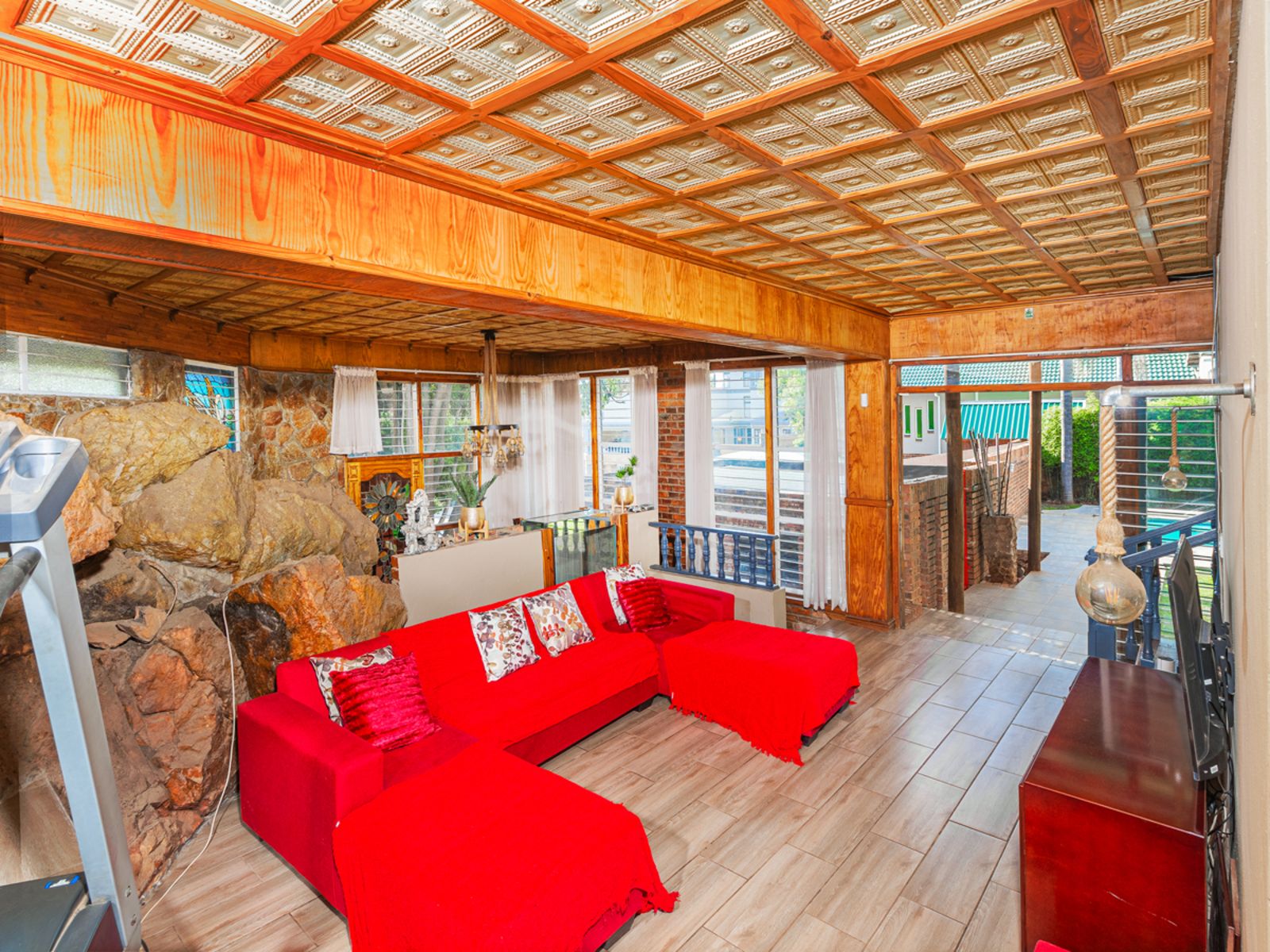 Boasting an open-plan layout, the living, dining, TV room and kitchen flow seamlessly, creating an inviting atmosphere ideal for effortless hosting. Lodge-style finishes with large outdoor entertainment area and pool enhance its warmth and character, offering a refined blend of luxury and comfort.