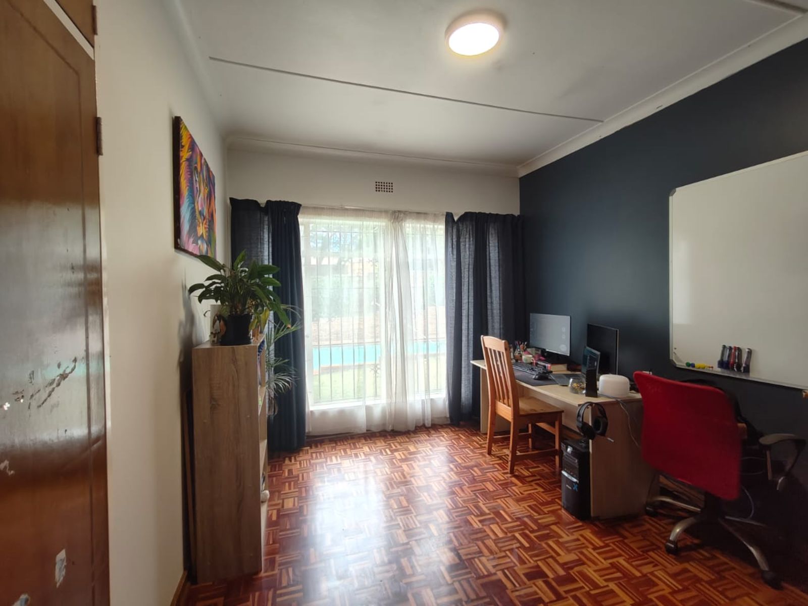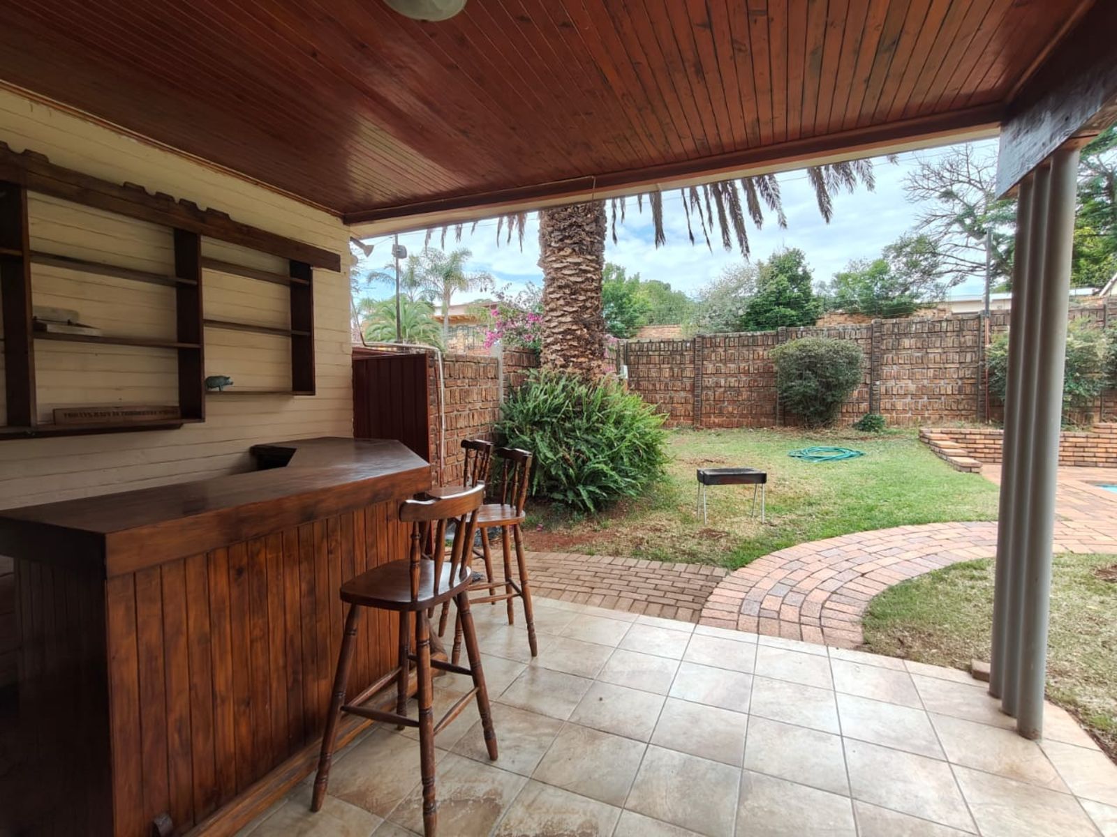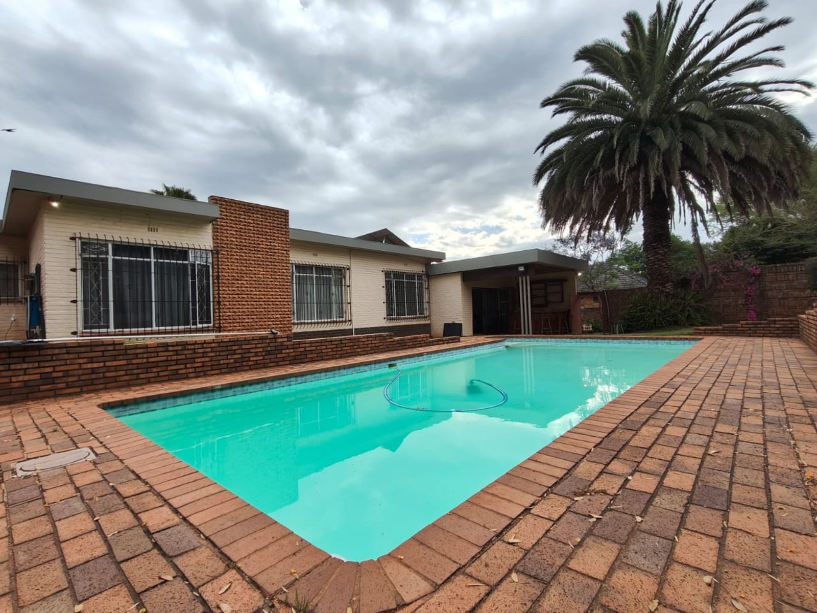 The home offers three well-sized bedrooms, two full bathrooms, and a study — perfect for those working from home. An additional fourth bedroom can also serve as a spacious entertainment room, leading to a covered bar area and a sparkling swimming pool, making it ideal for hosting friends and family.