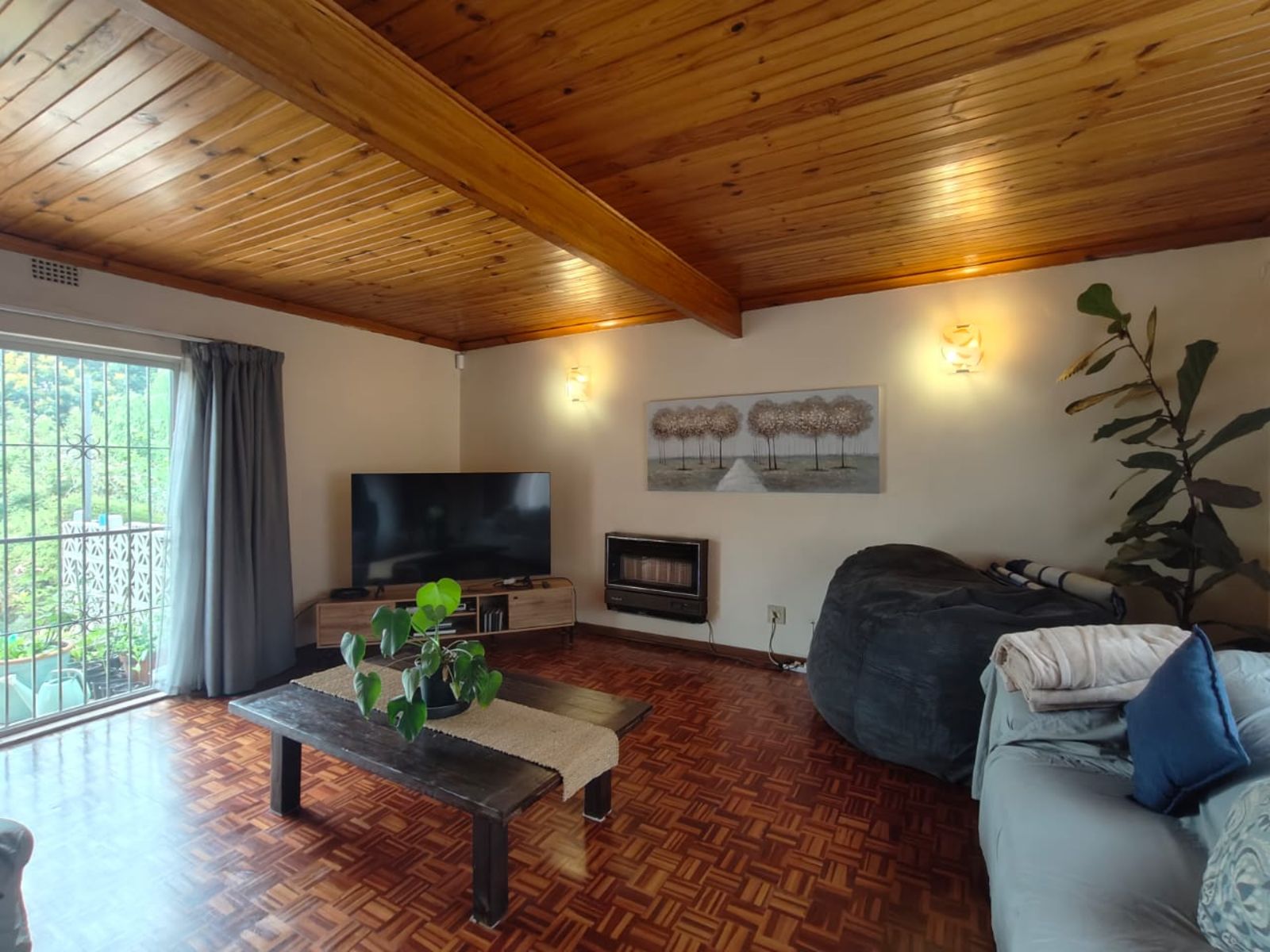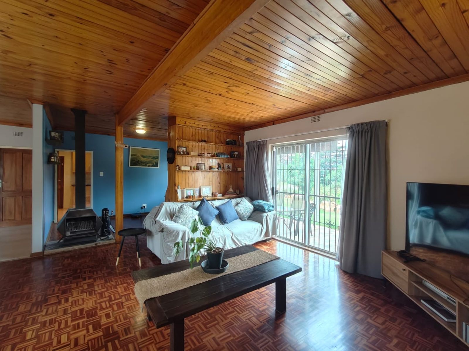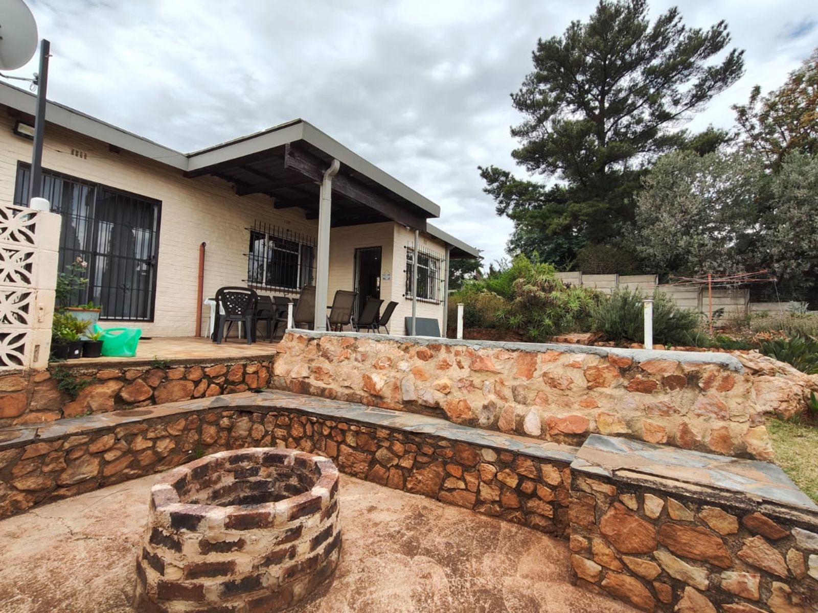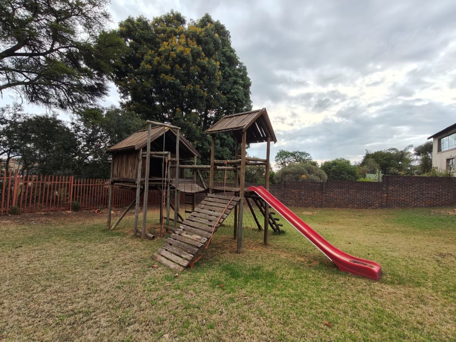 Step inside through a welcoming entrance hall that flows into a spacious open-plan lounge and dining area, opening onto a covered patio — ideal for enjoying morning coffee or family gatherings. The patio overlooks a large, terraced garden with a fire pit and a jungle gym, providing endless outdoor fun for children and guests alike.