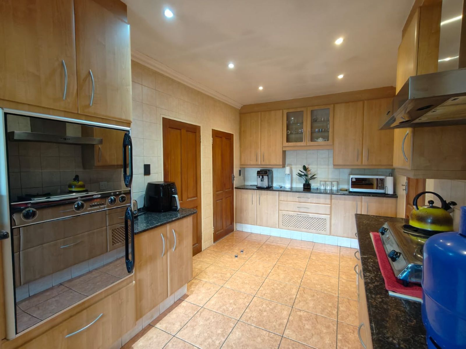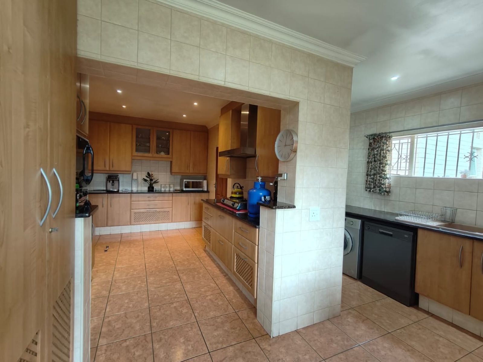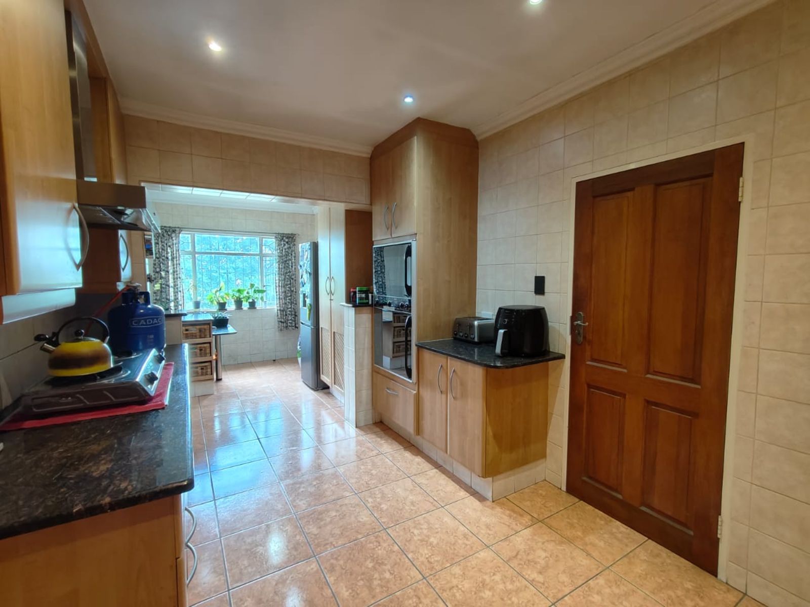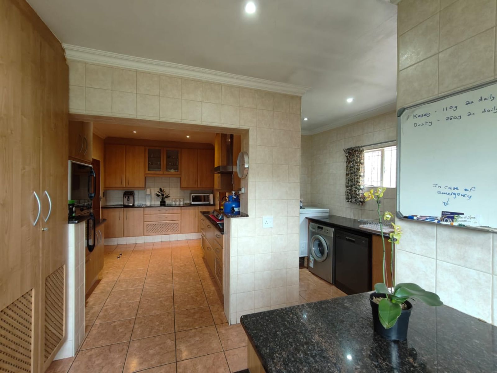 The kitchen is generous in size, featuring granite countertops, plenty of cupboard space, and a separate scullery for added convenience.
