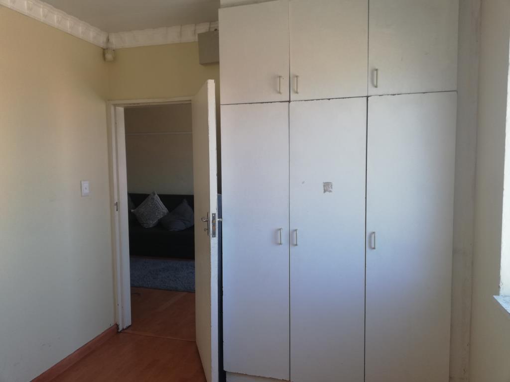 Natural light floods the unit through well-placed windows, creating a welcoming atmosphere in the flat. Both bedrooms feature built-in cupboards, providing ample storage for clothing and personal belongings. There is one bathroom, featuring a bathtub, as well as shelving.