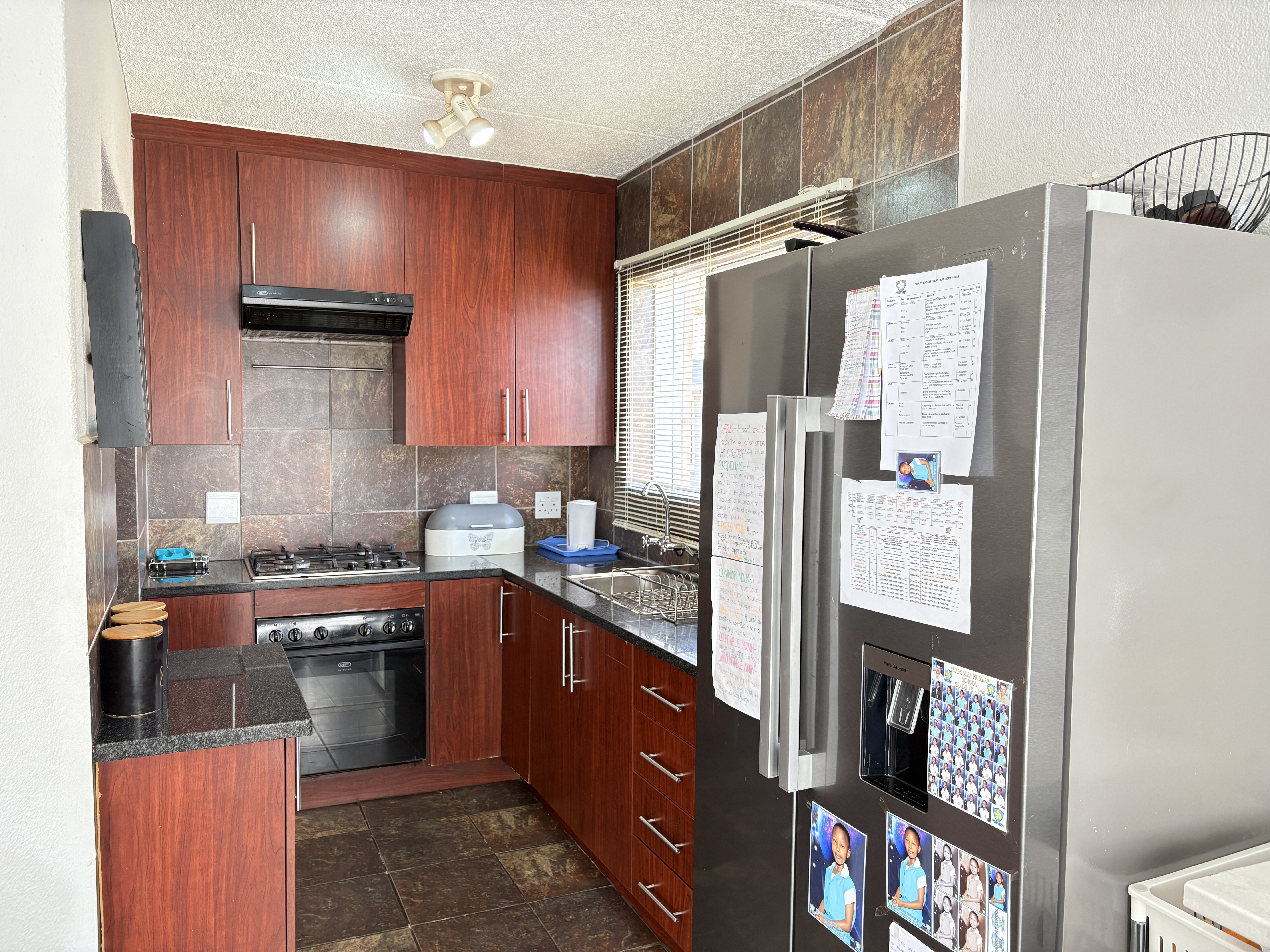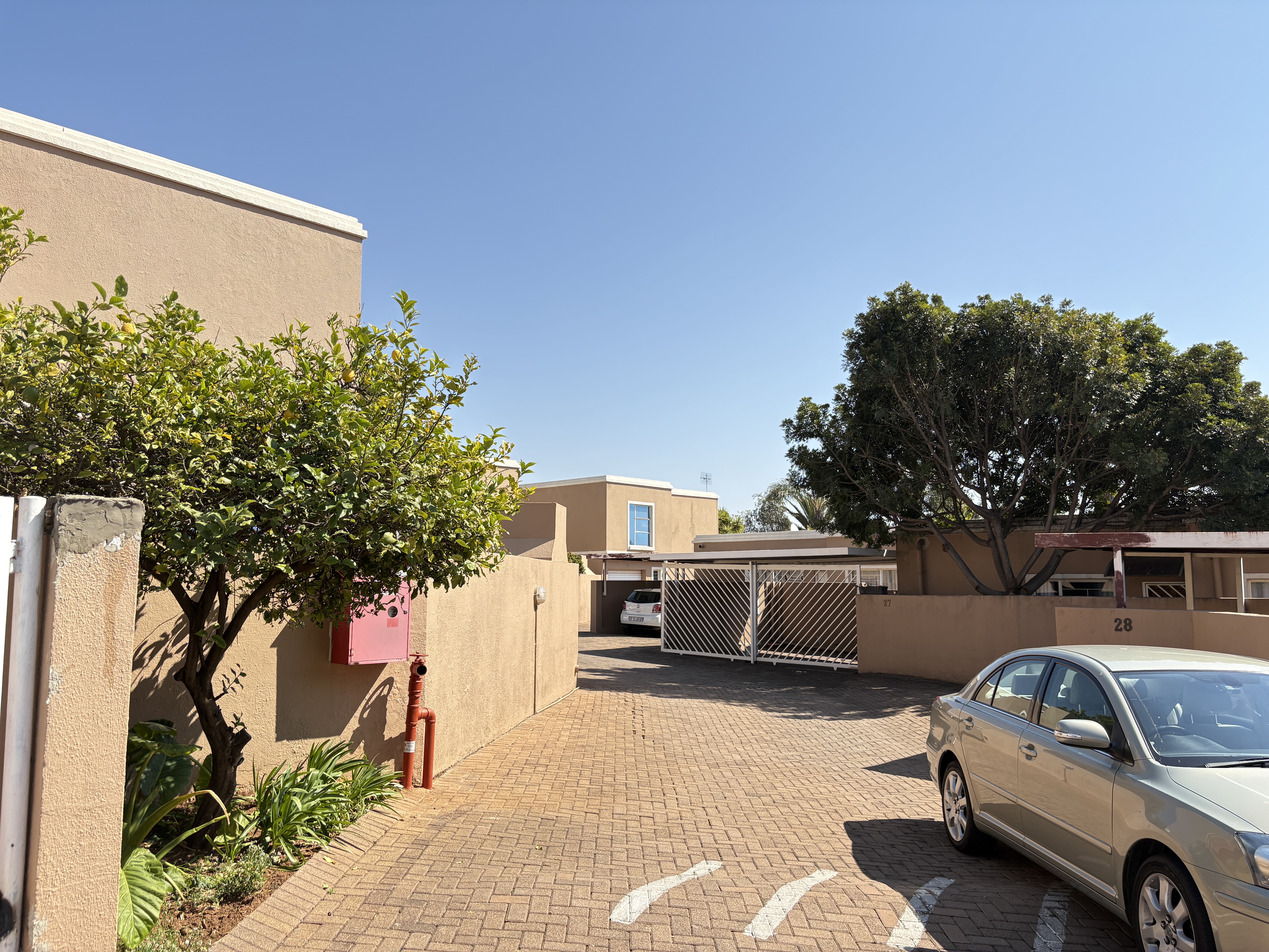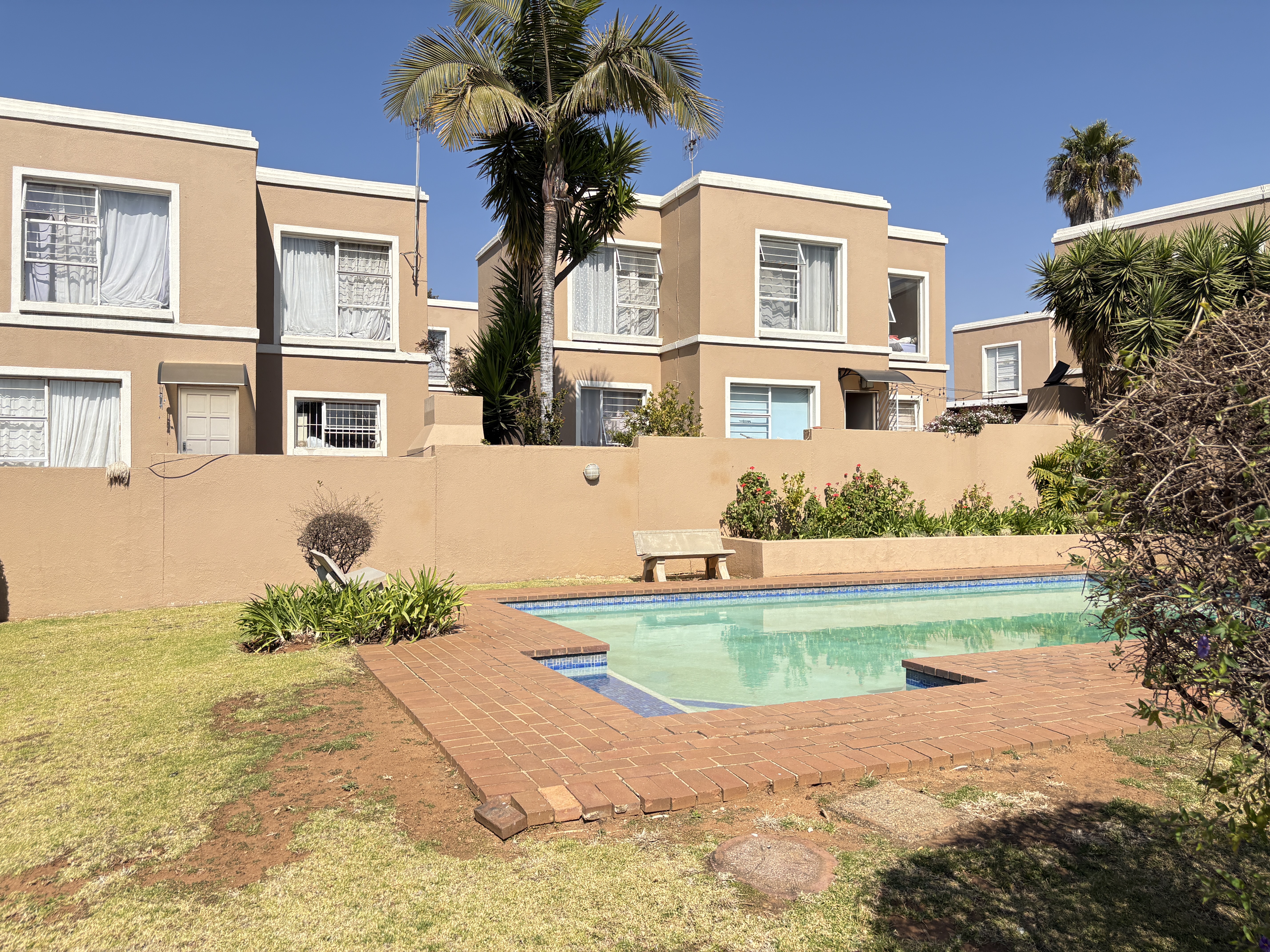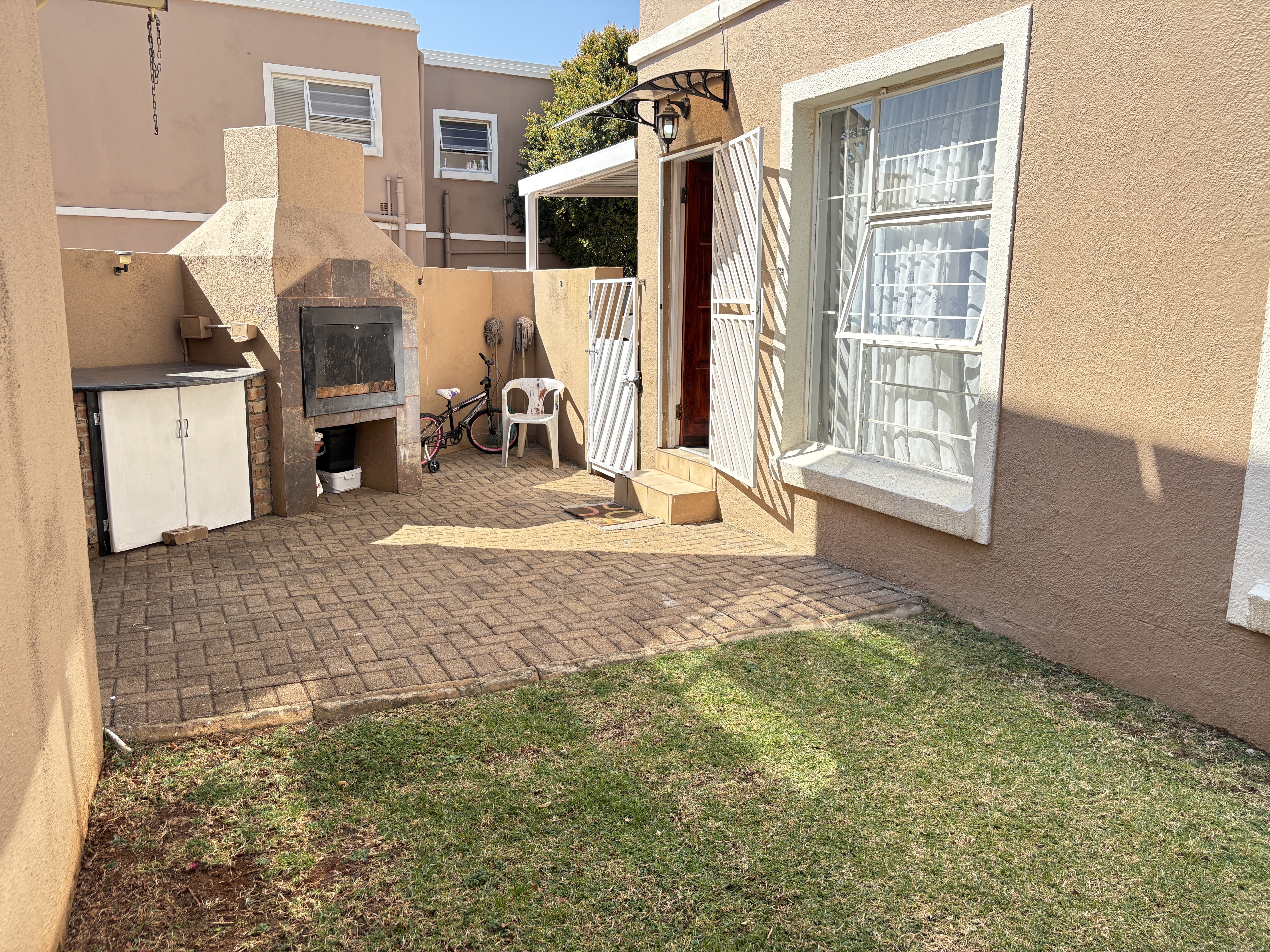 Welcome to this charming townhouse featuring three spacious bedrooms located on the upper level, providing a peaceful retreat. The main bedroom boasts an en-suite bathroom for added convenience. On the ground floor, you'll find an inviting open-plan kitchen seamlessly flowing into the lounge, perfect for entertaining or family gatherings.