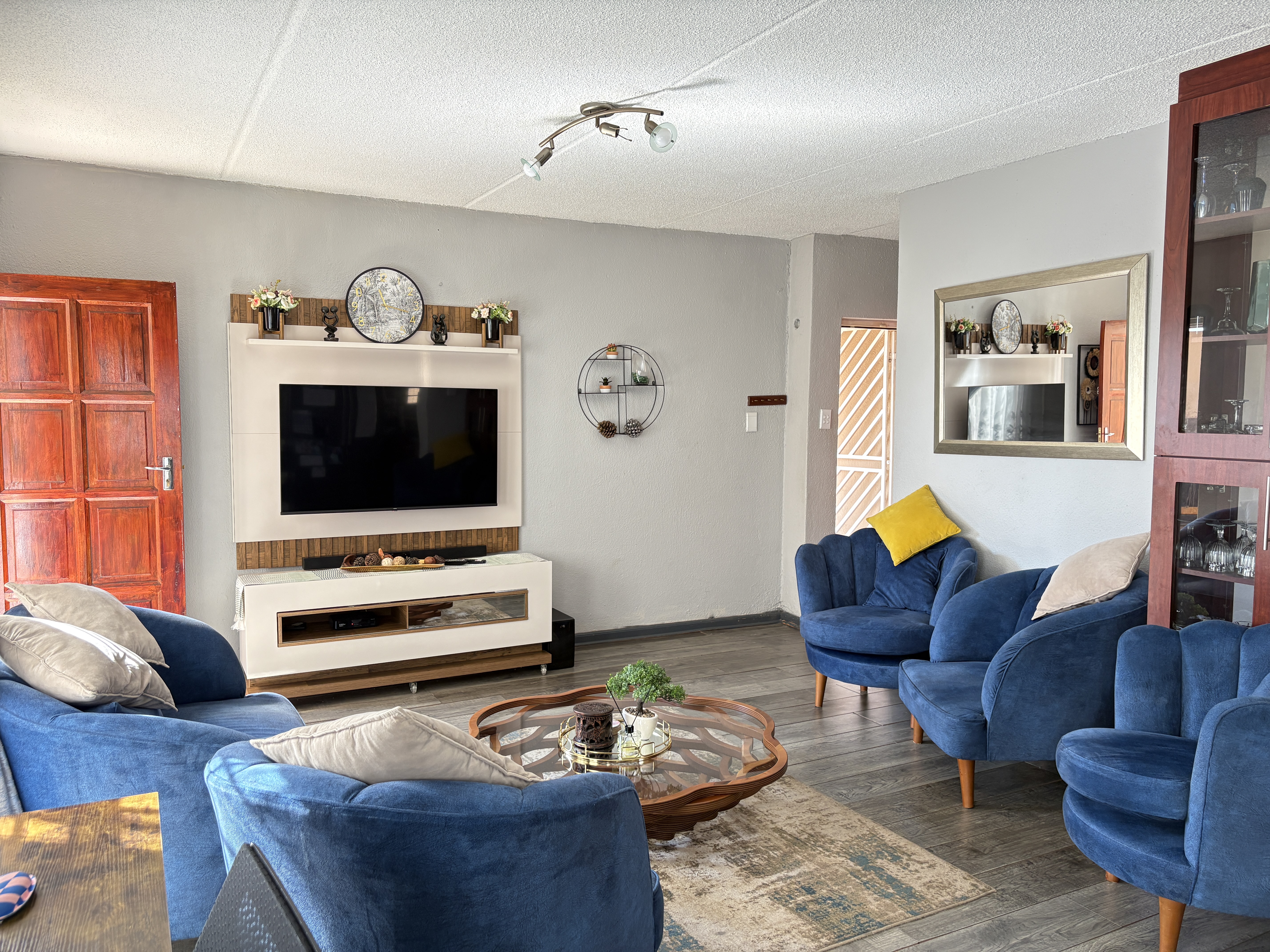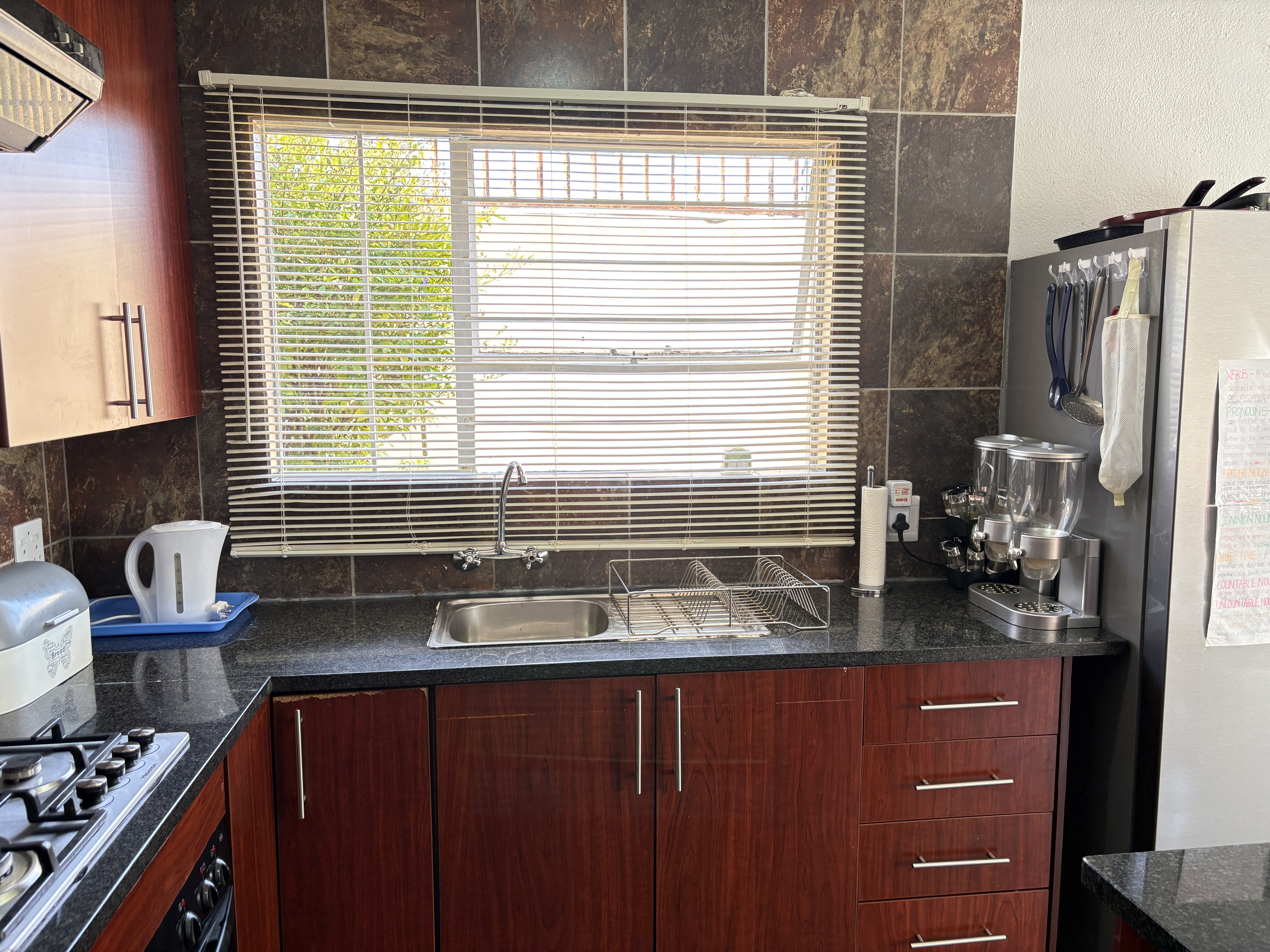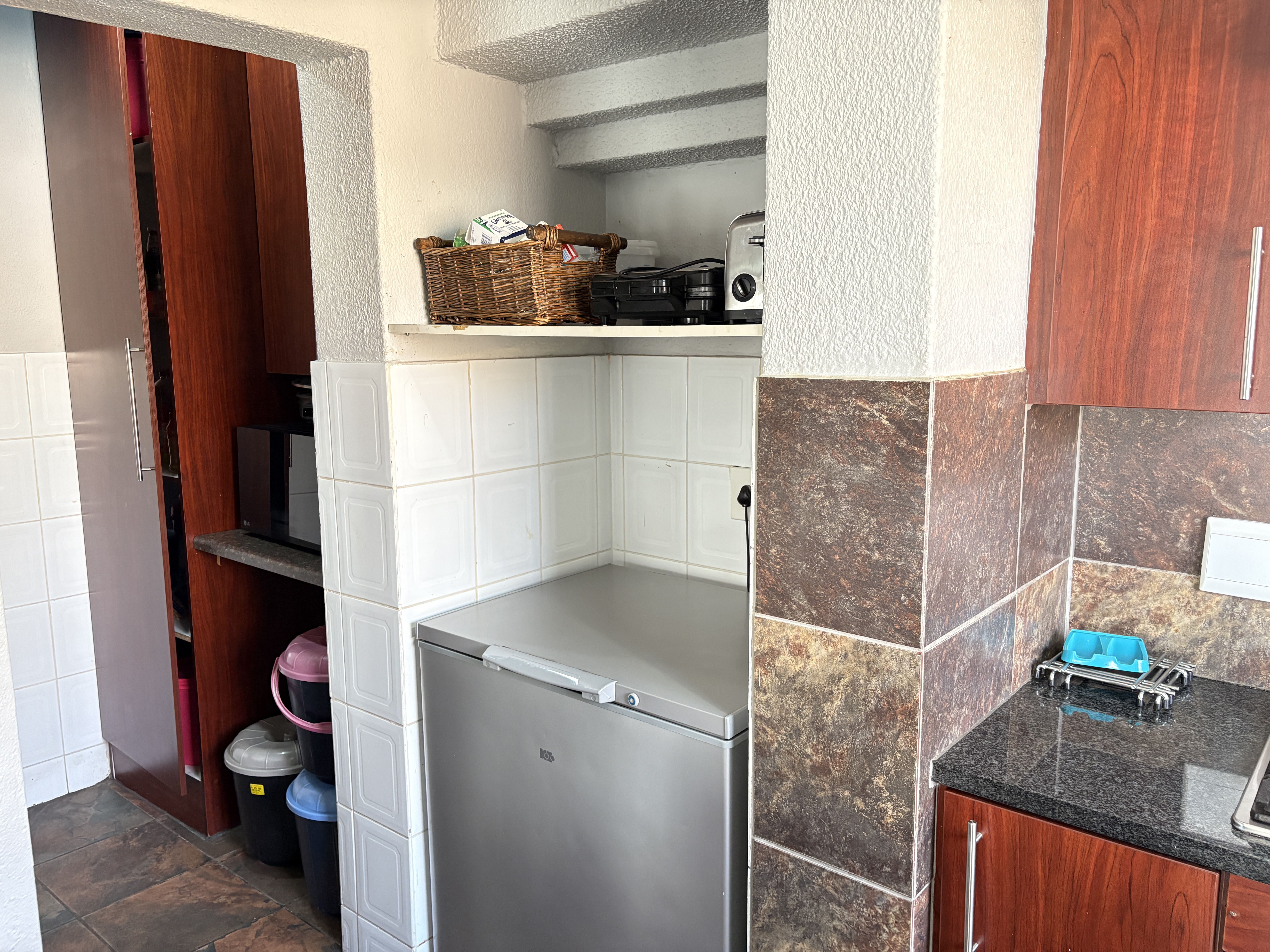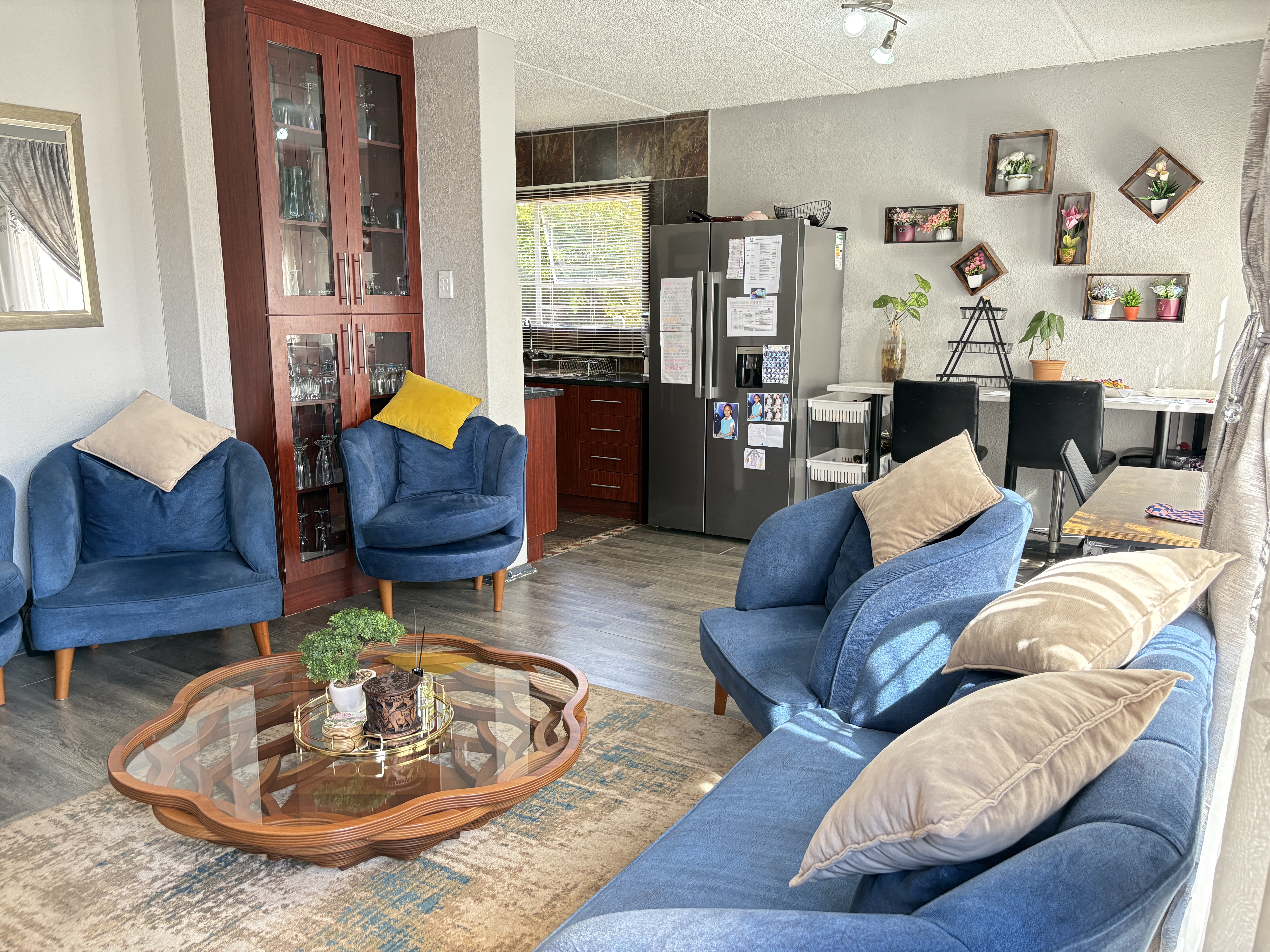 Welcome to this charming townhouse featuring three spacious bedrooms located on the upper level, providing a peaceful retreat. The main bedroom boasts an en-suite bathroom for added convenience. On the ground floor, you'll find an inviting open-plan kitchen seamlessly flowing into the lounge, perfect for entertaining or family gatherings.