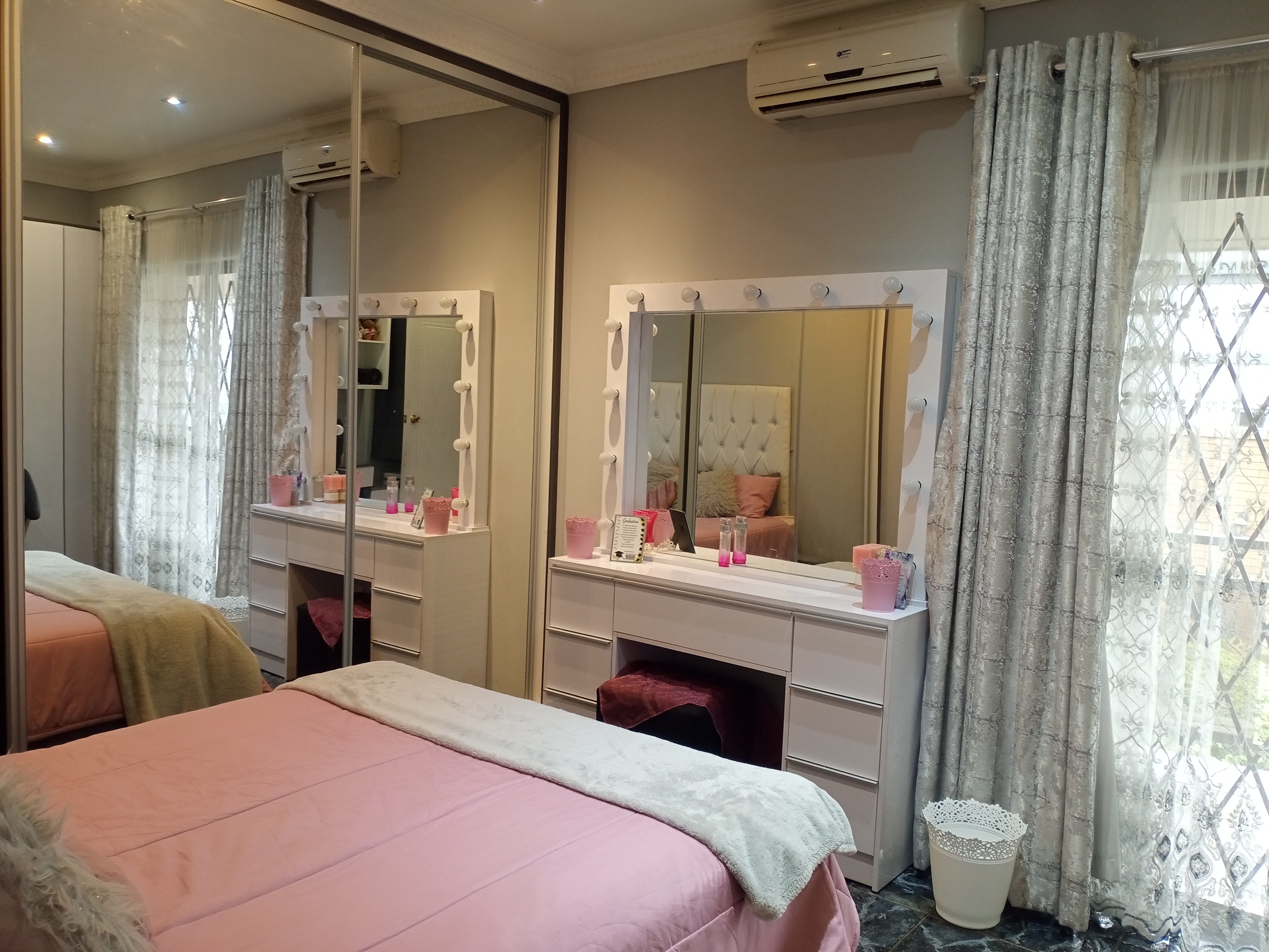 Featuring charming ambient views, this colossal home shows off its beauty from the very entrance. . This spacious, fully airconditioned home truly has it all, beautiful spacious living and dining areas made for entertaining with blueline design and an ultra-modern fitted kitchen being just the start. The large aluminium windows in the open-plan living space ensures this home gets plenty of natural light. The home boasts 4 bedrooms which are spacious and has 3 bathrooms (including 2 en-suite) including the luxurious master bedroom which boasts a his and hers walk in closet. Additional features of this property include a work from home environment as a private office area flanks the 2 automated garages which can easily accommodate upto 7 cars, a double shadeport for 2 cars, air conditioning and a state of the art alarm system which features outdoor beams and CCTV cameras for added peace of mind. Words are limiting ... a home that surpasses expectations.... Serious seller requesting only serious and approved buyers to view. Contact the agent now for a private viewing!!