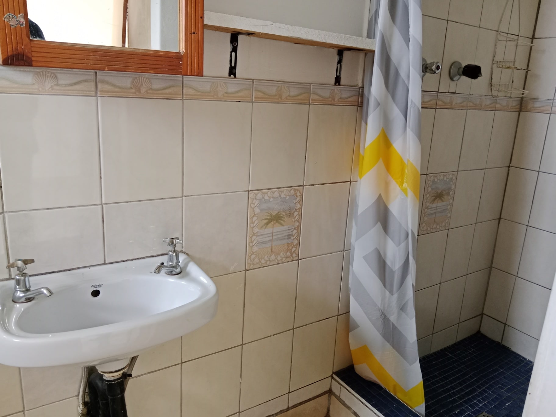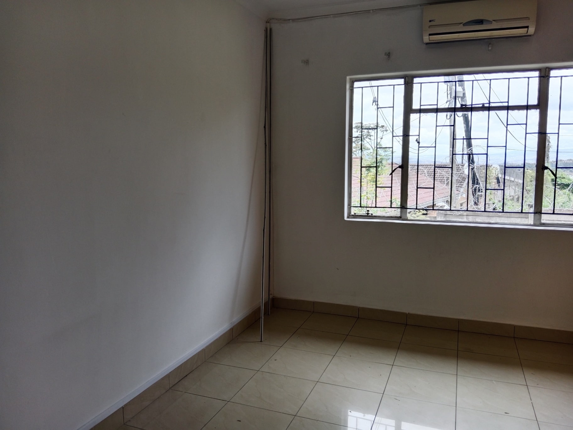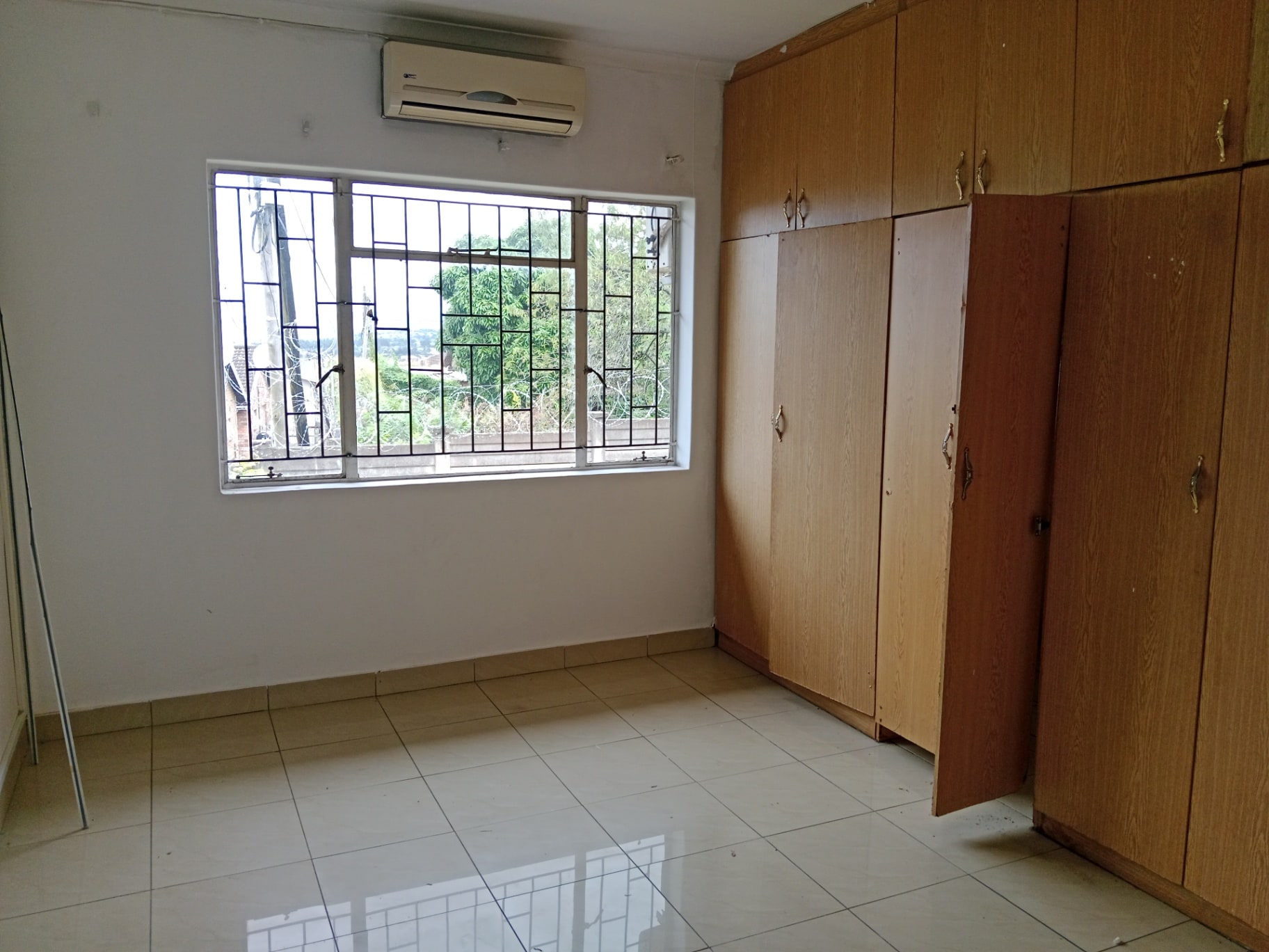 The property features three well-sized bedrooms with built-in cupboards, while the main bedroom is enhanced with an air conditioner and a private en-suite bathroom for added comfort.