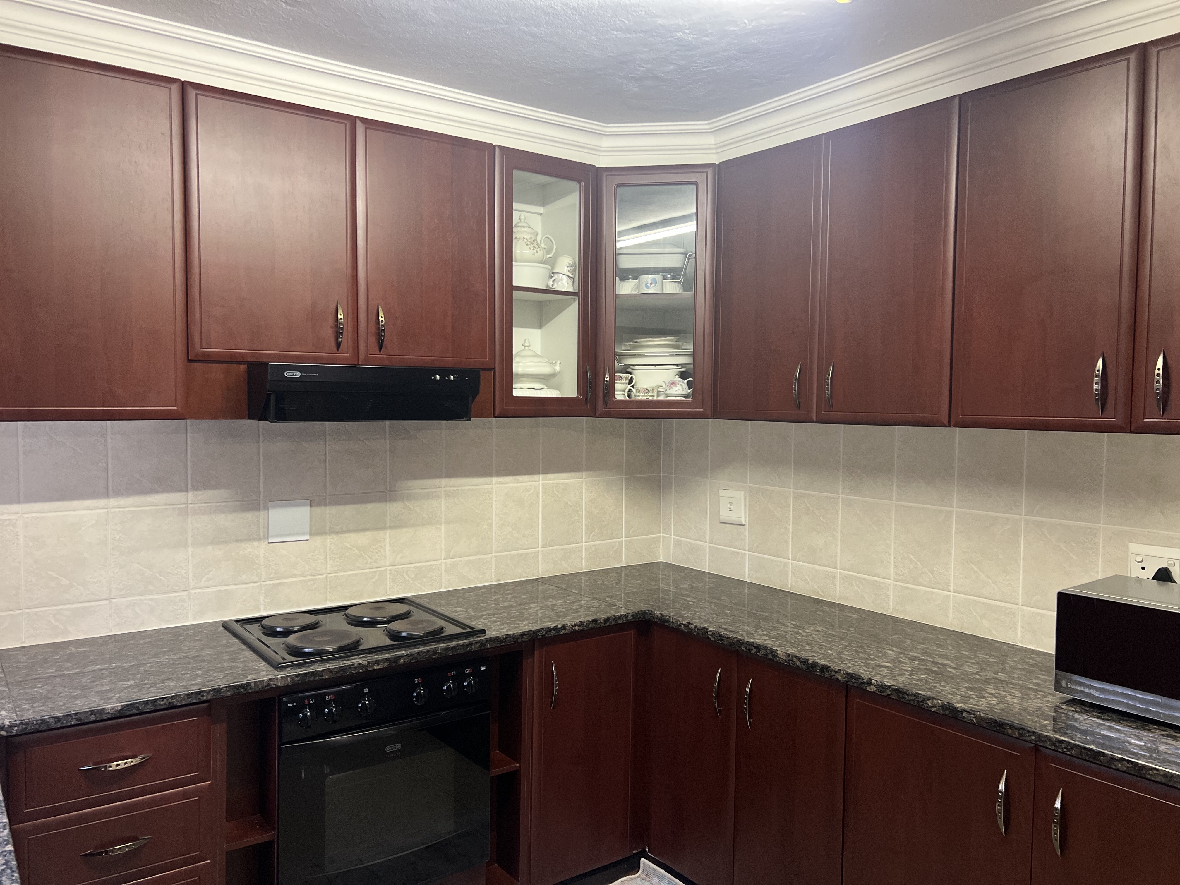 Upon entry, you’re enveloped in a welcoming atmosphere, accentuated by seamless tiling that guides you through voluminous interiors. The open-plan living areas lend themselves to both intimate family evenings and sophisticated entertaining. At the heart of the home lies a modern kitchen sanctuary, where lustrous granite counter tops meet an eye-level oven, offering both aesthetic pleasure and culinary utility.