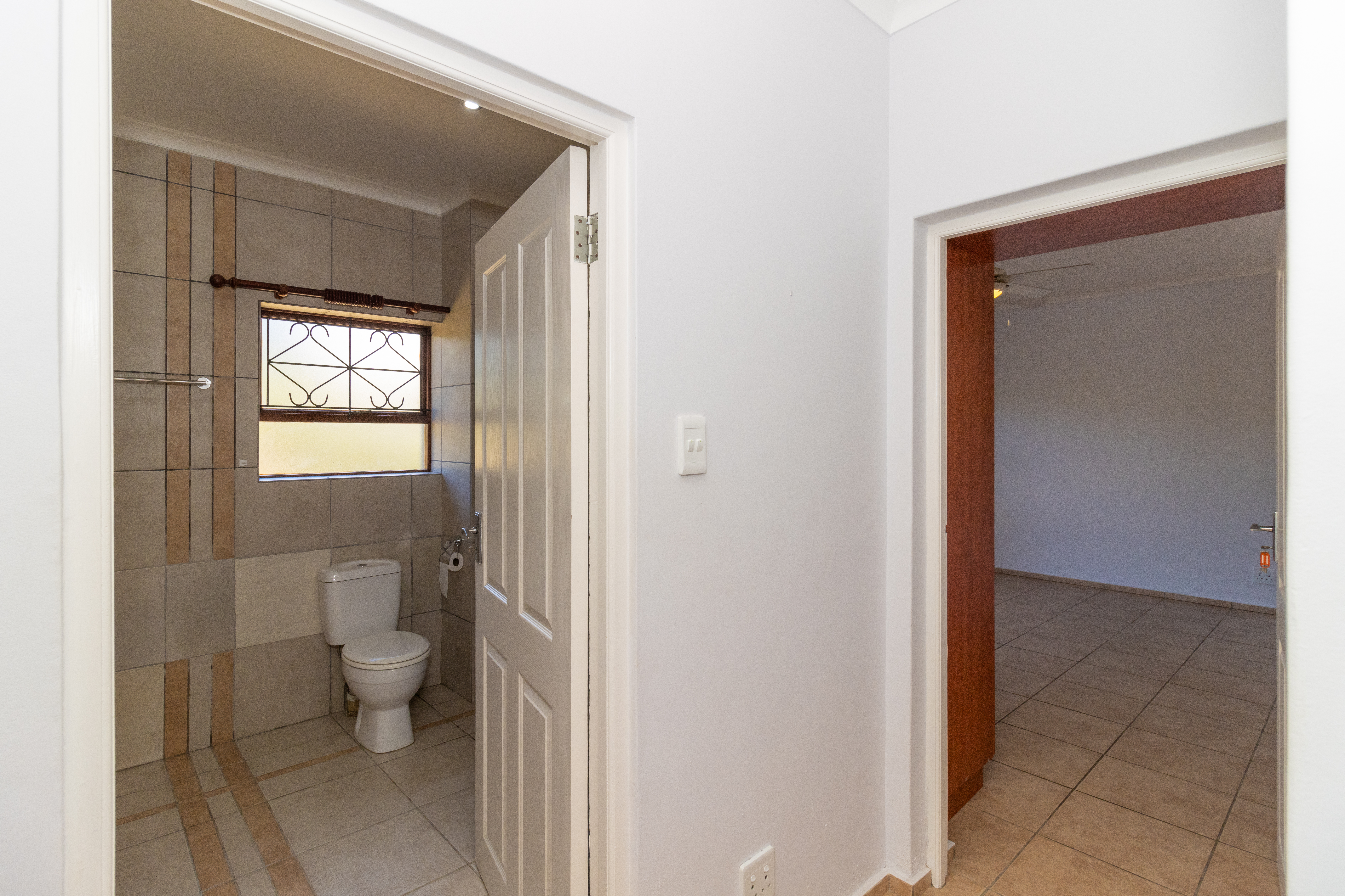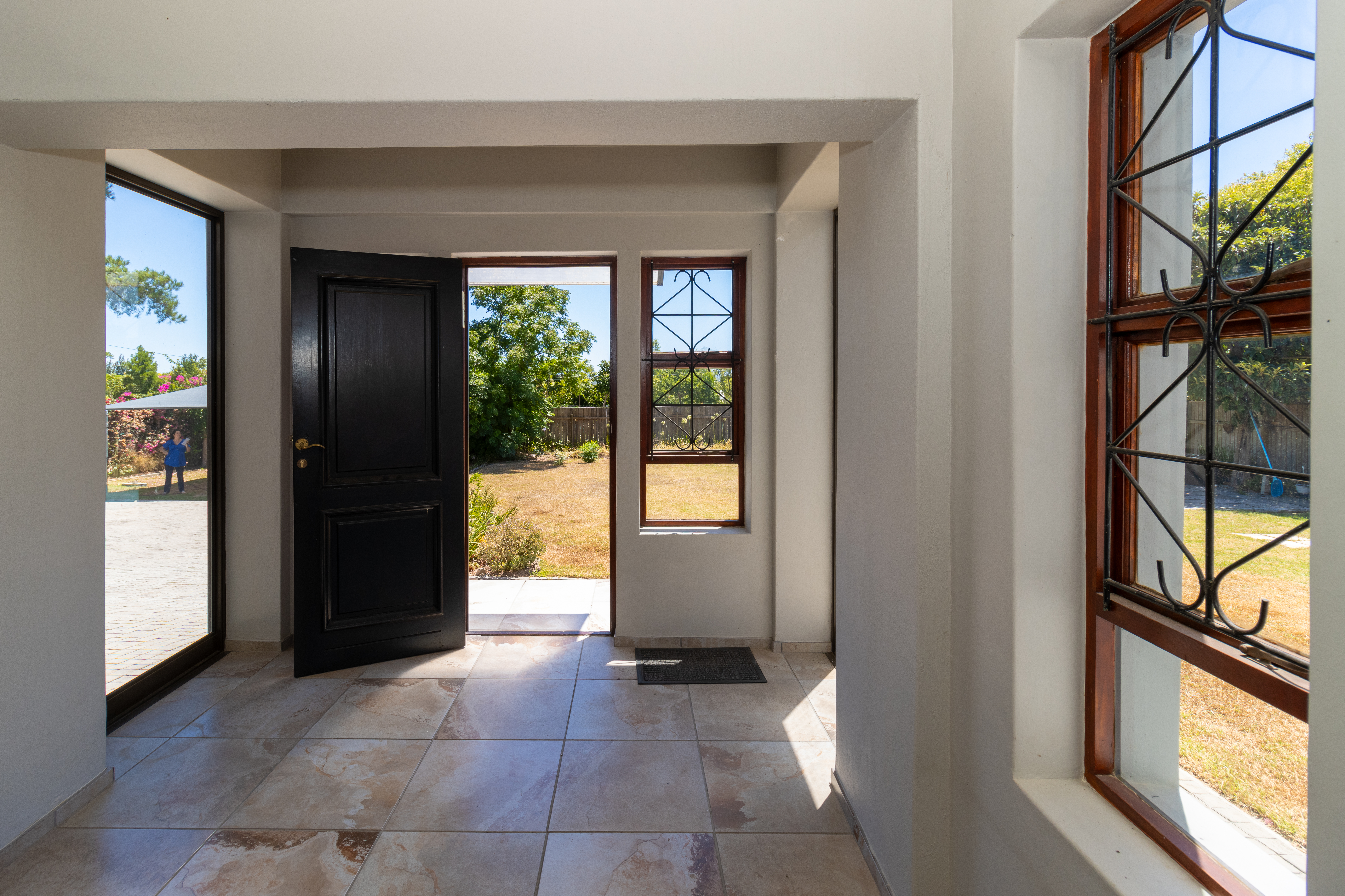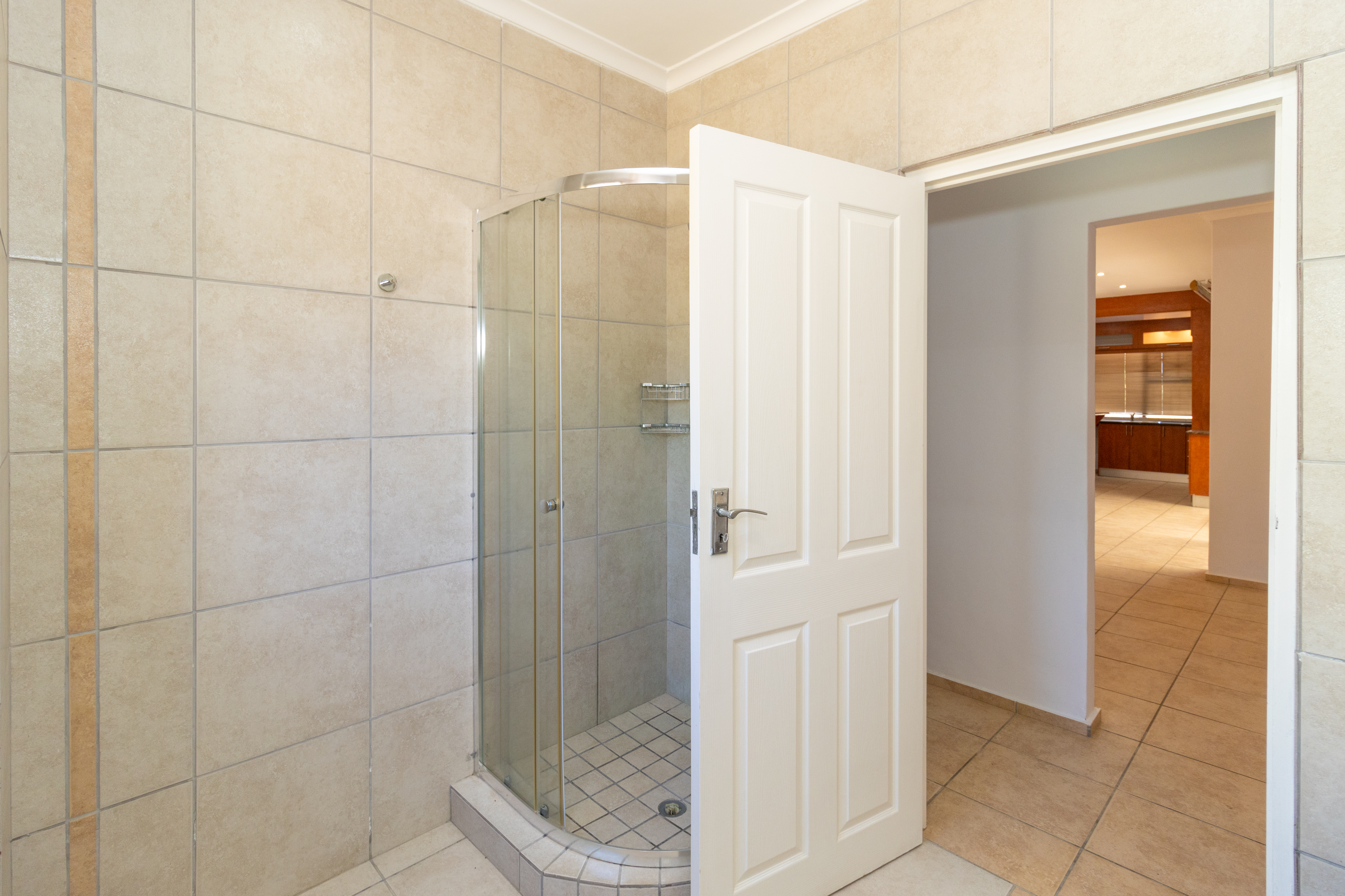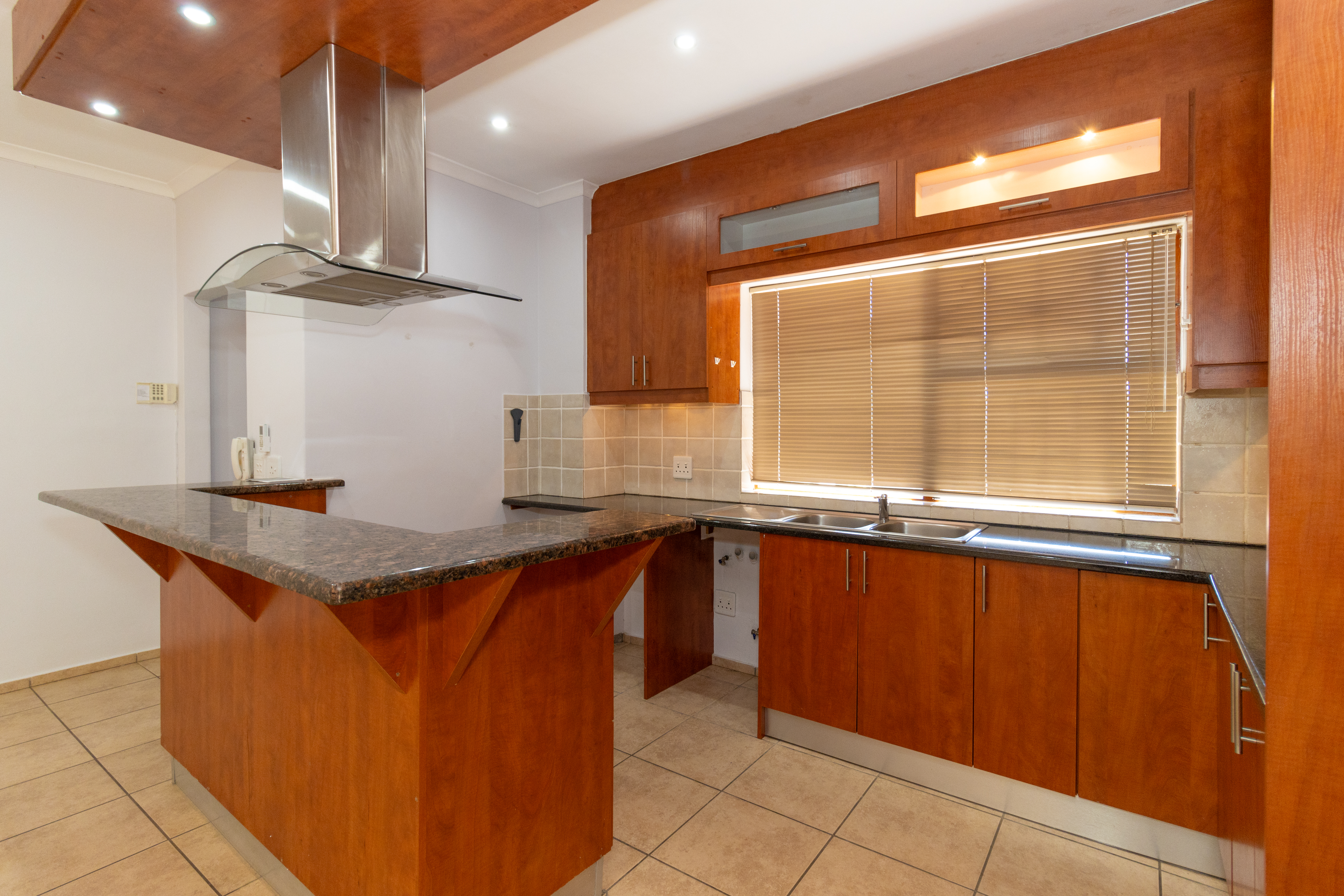 The home features a stylish open-plan kitchen and lounge that flows out to an enclosed braai area, perfect for entertaining.