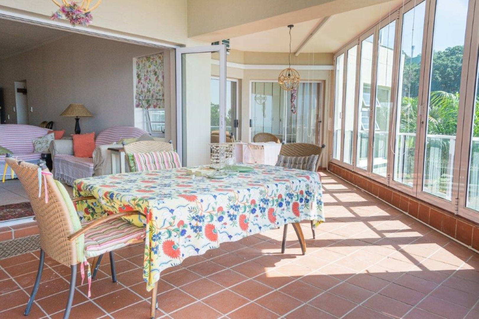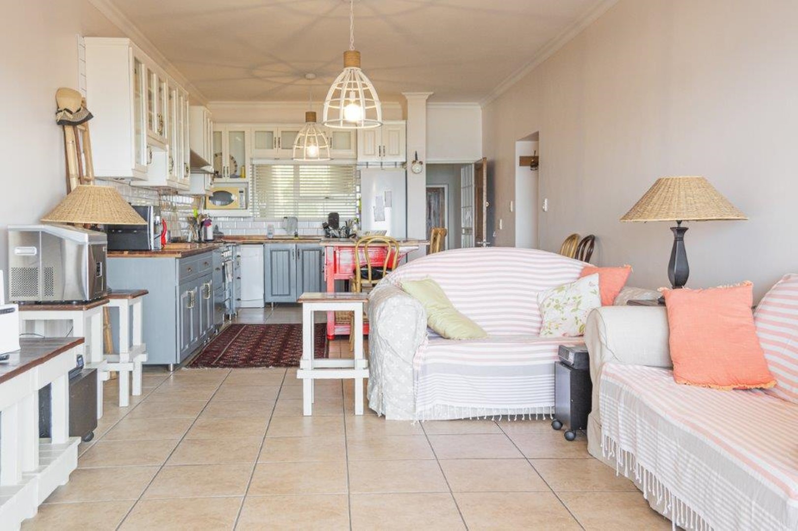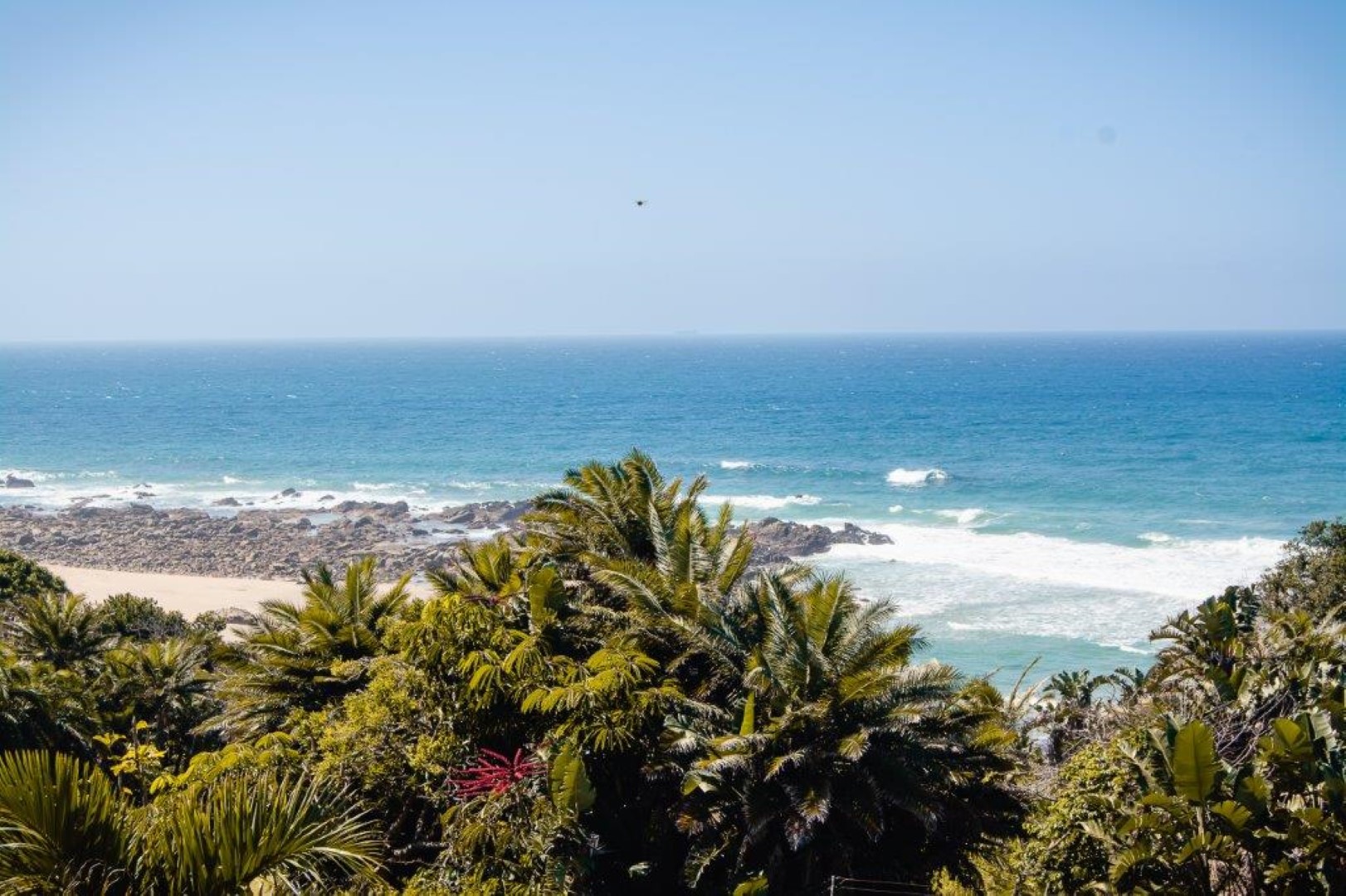 The open plan living area contains a modern kitchen that leads to the lounge and the enclosed entertainment veranda, where you can view the sandy beach and rocks as well as the Indian Ocean.