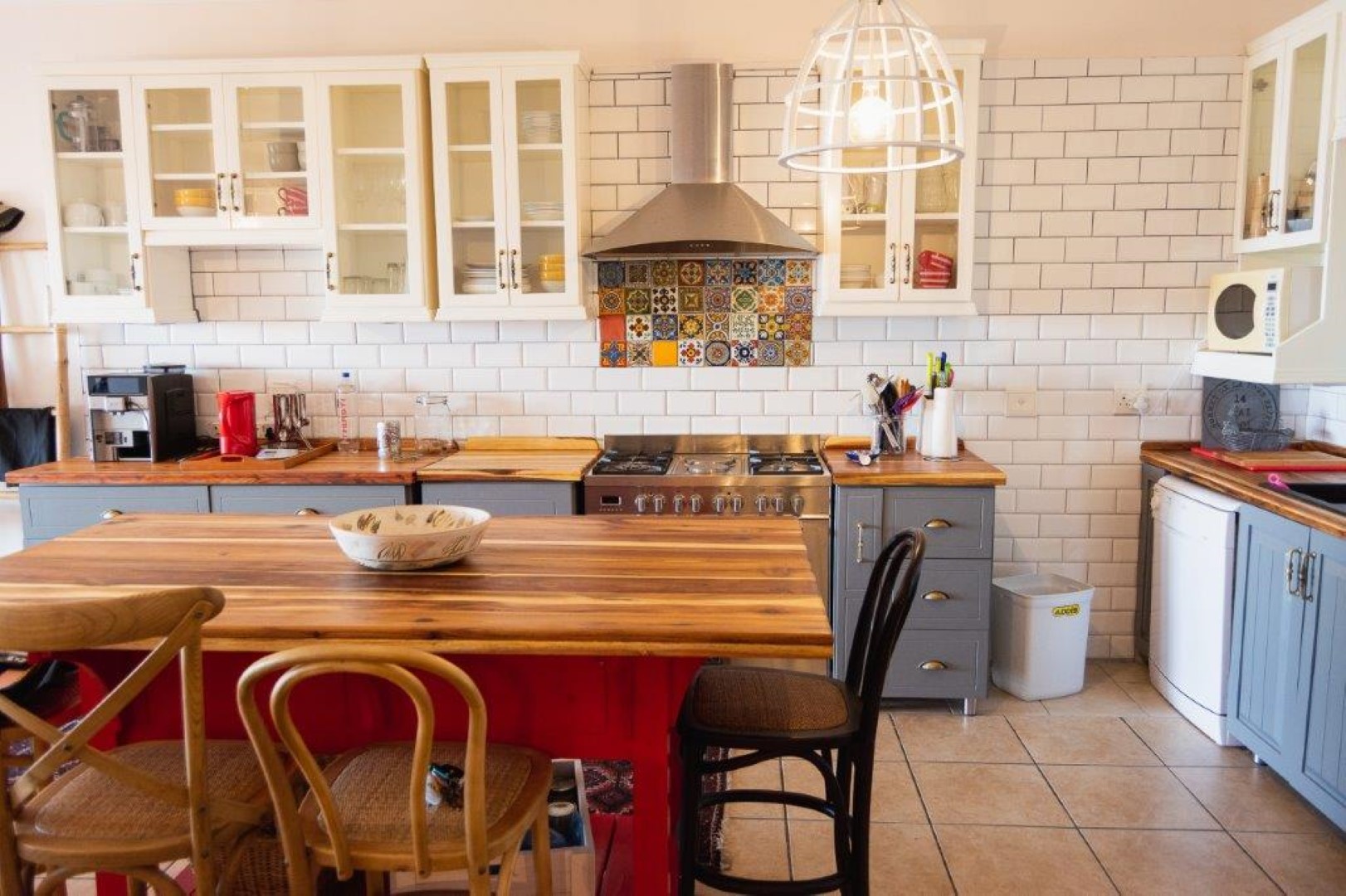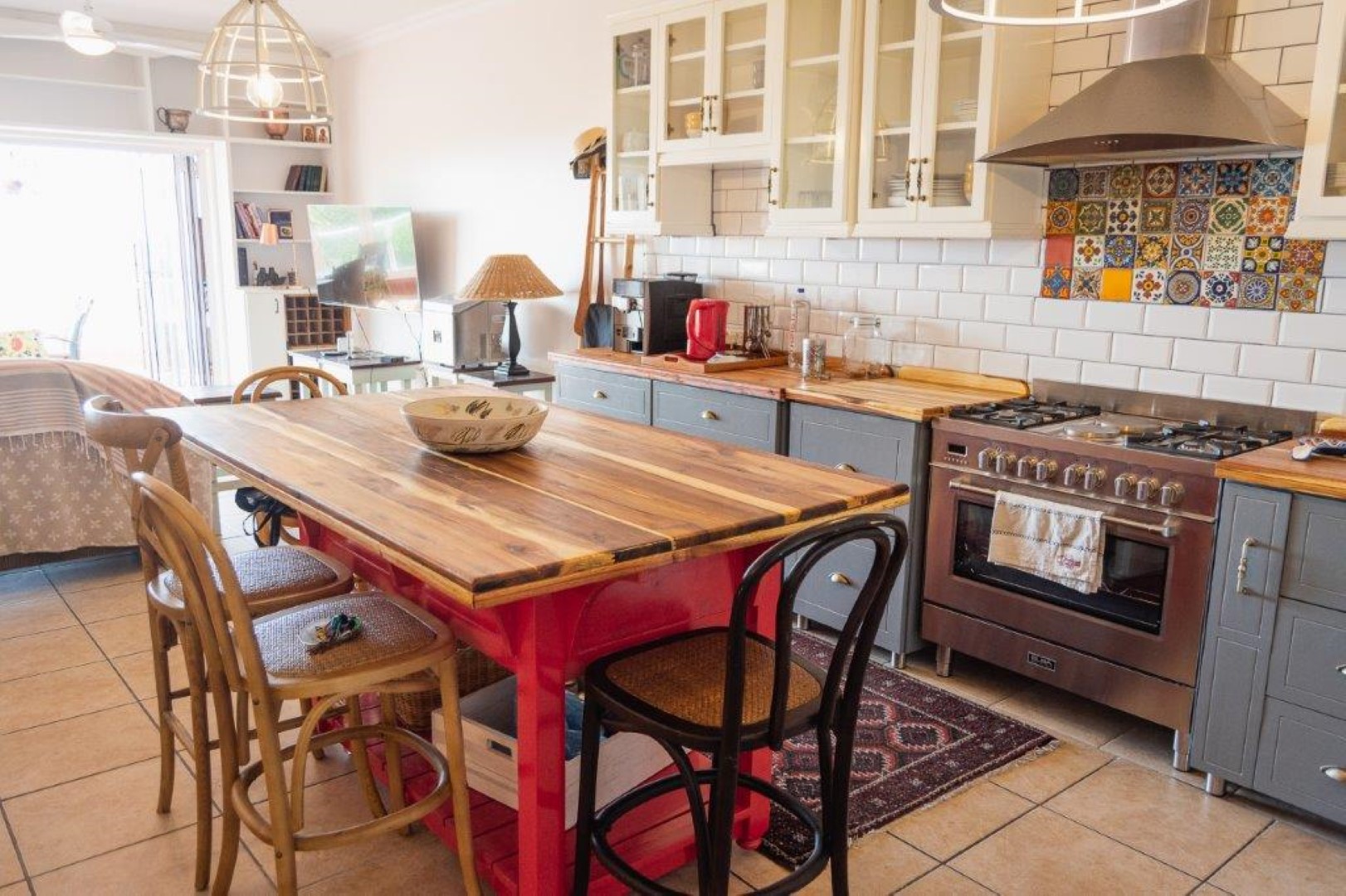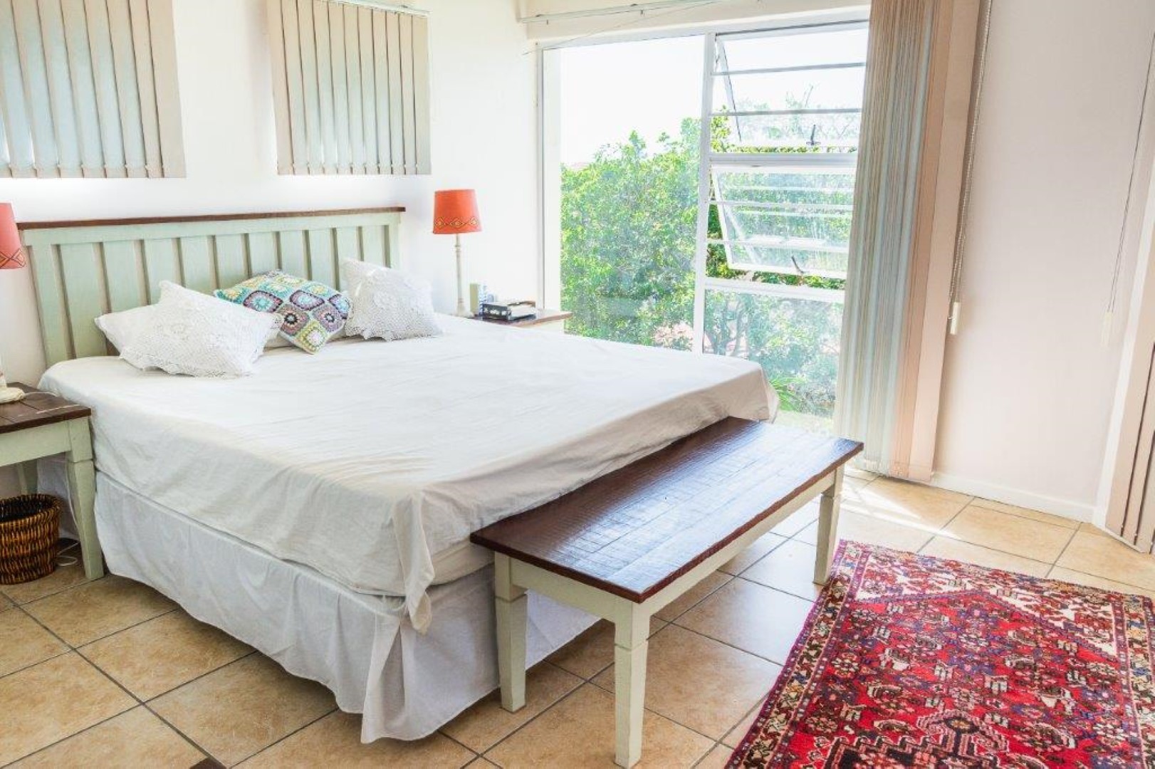 The open plan living area contains a modern kitchen that leads to the lounge and the enclosed entertainment veranda, where you can view the sandy beach and rocks as well as the Indian Ocean.
