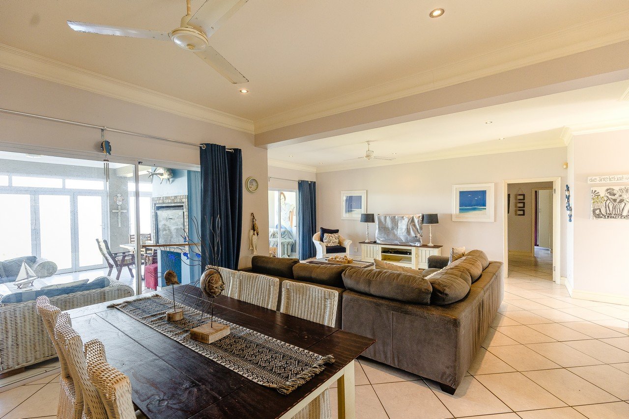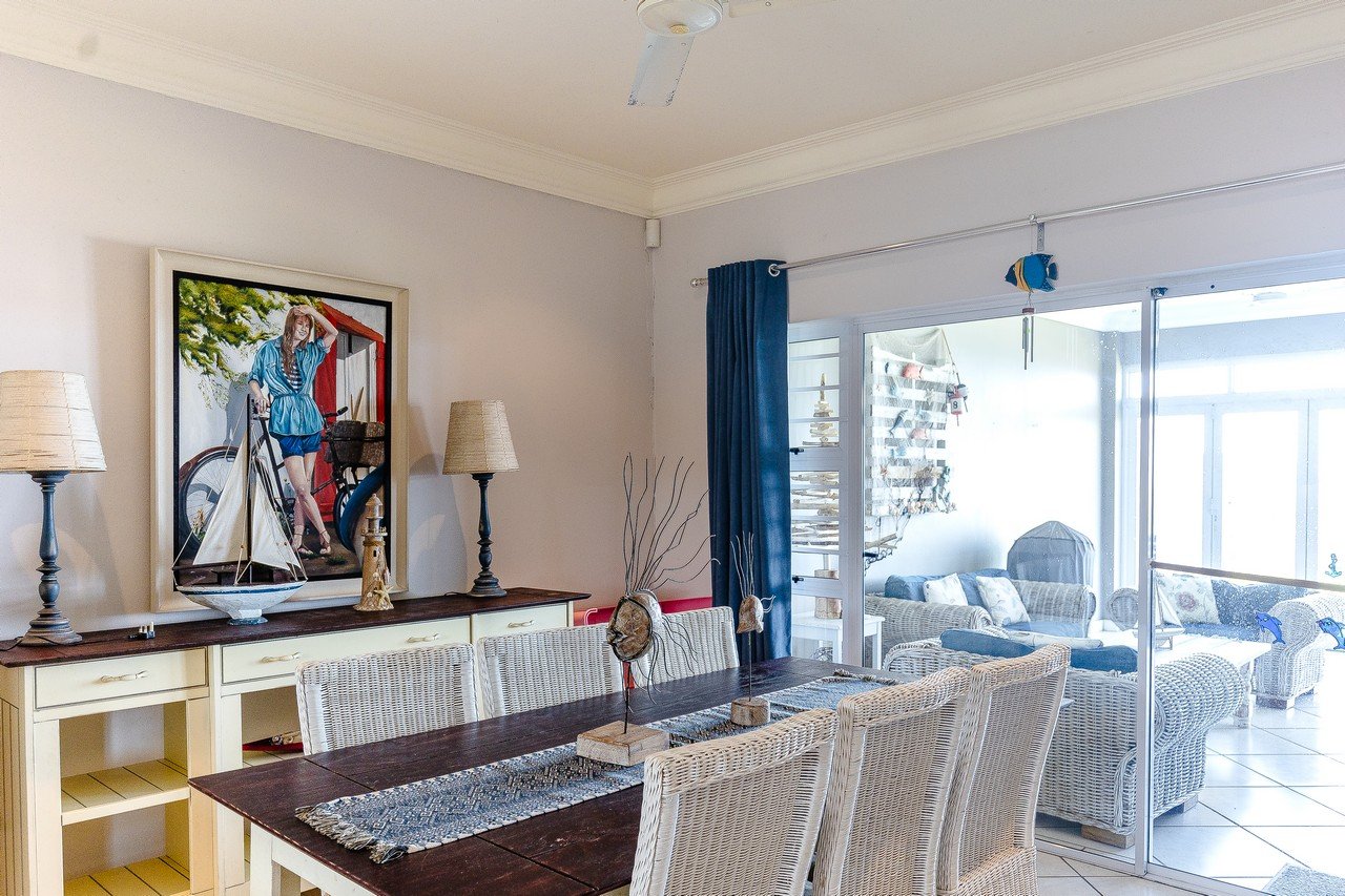 Nestled on the ground floor, this modern and spacious unit boasts an open-plan layout, offering a seamless flow between the kitchen, lounge, and dining room. The kitchen, adorned with sleek granite tops and ample cupboard space, includes a convenient scullery for added practicality. The lounge and dining room lead to an enclosed area featuring a built-in braai, perfect for entertaining guests. The enclosed patio has beautiful sea views and opens via stack doors to the garden area. The unit comprises four generously sized bedrooms and two bathrooms (one being en-suite) equipped with both bath and shower. One of the bedrooms opens to an additional undercover veranda, enhancing the living space.