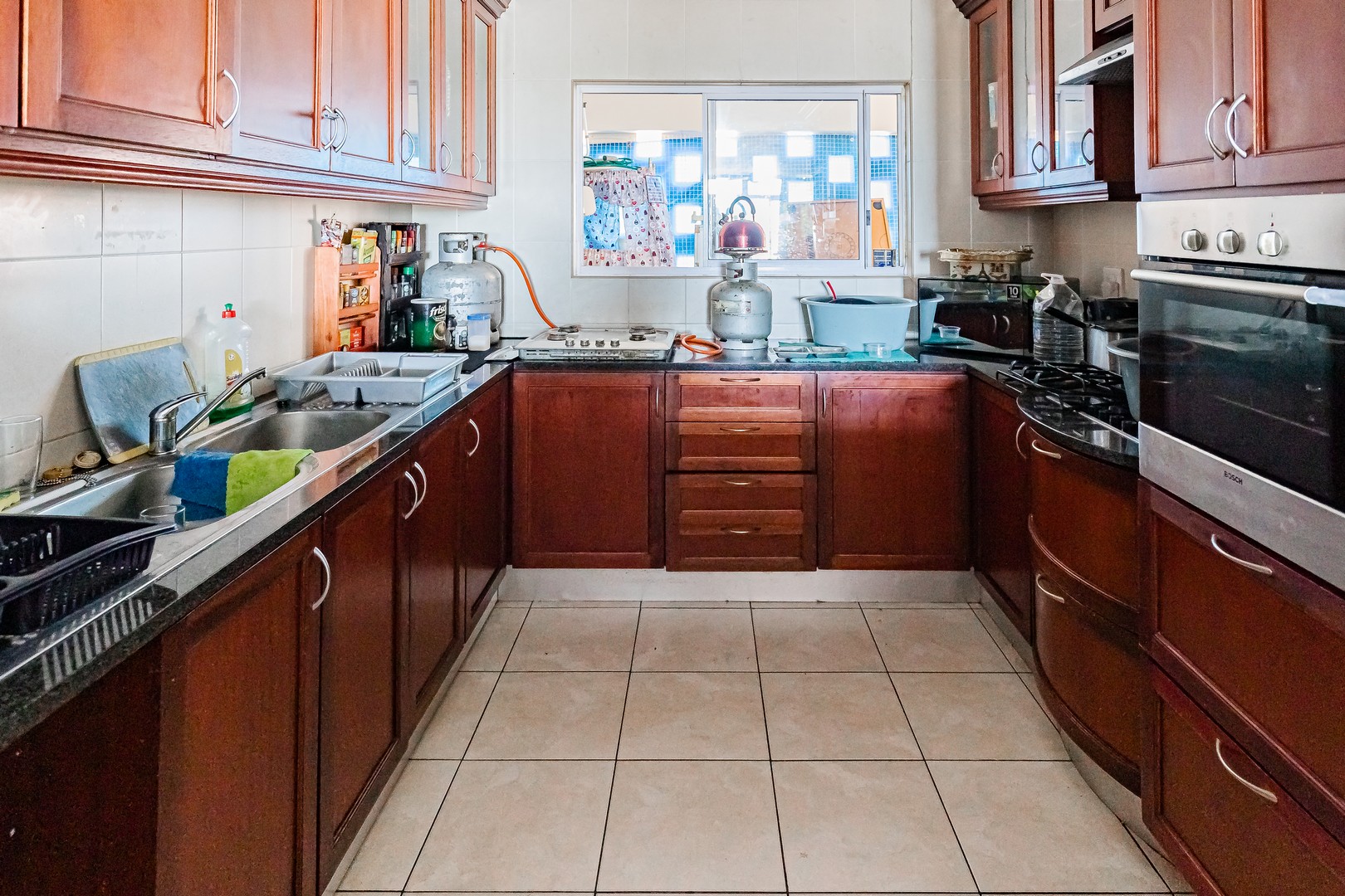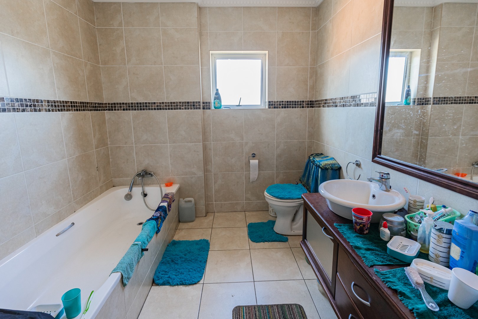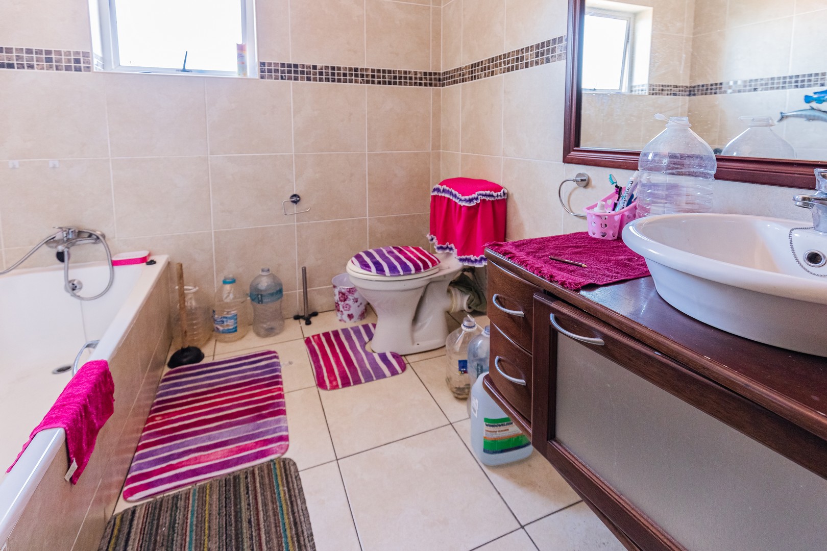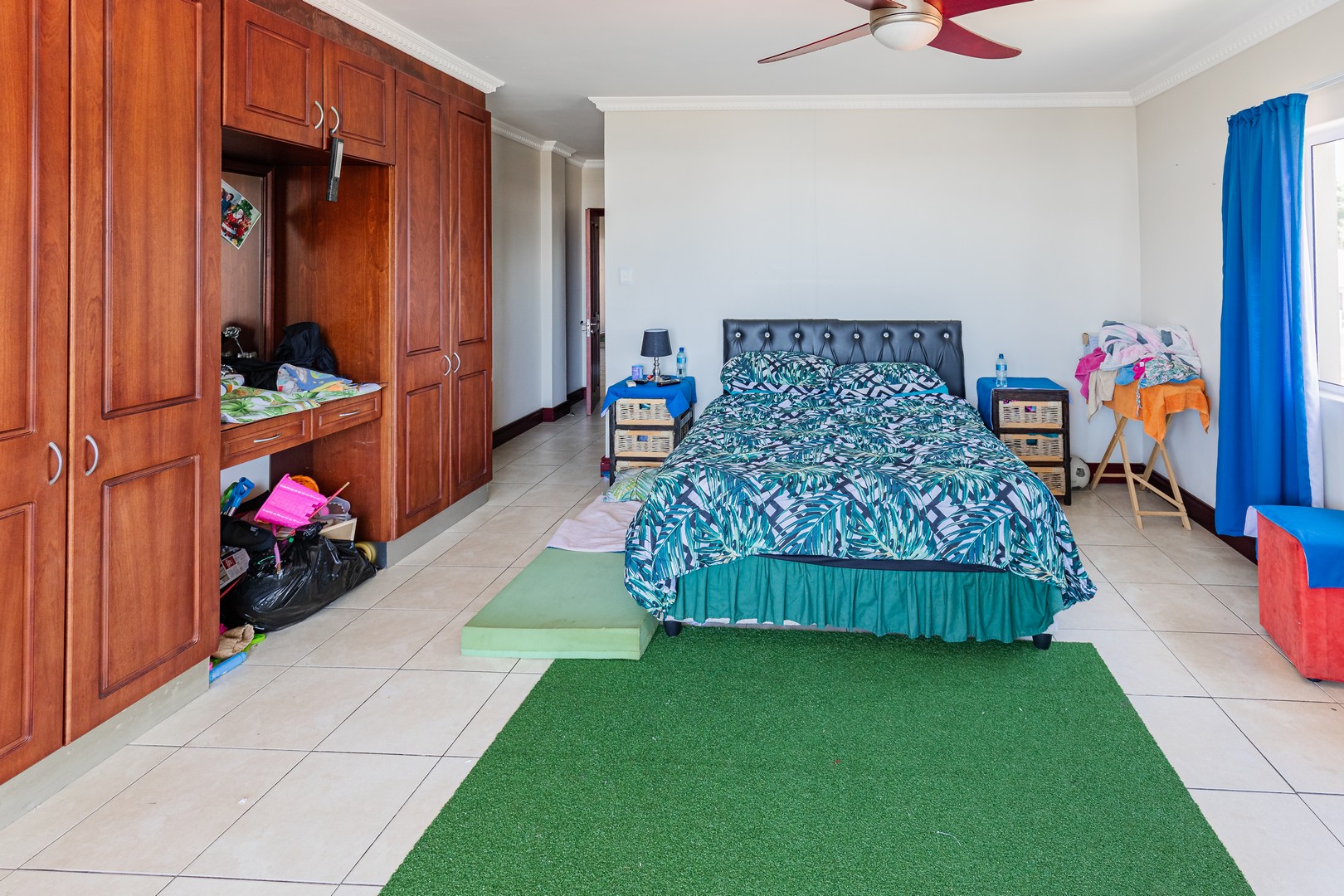 The bedrooms are spacious and they all have built in cupboards and fans. The guest bathroom is a full bathroom with both shower and bath. The main bedroom also opens onto the balcony and has a full main en-suite bathroom.
