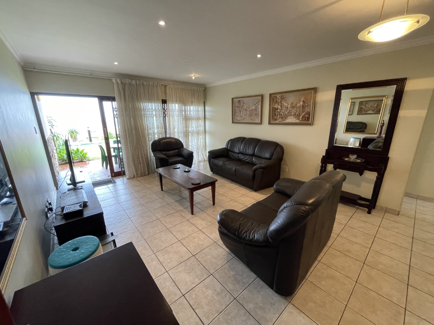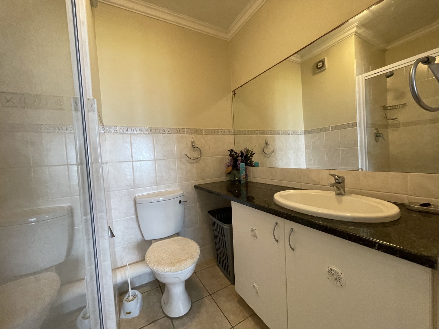What you get: 3 bedrooms, 2 bathrooms, spacious kitchen and living area, patio with small garden area and AMAZING SEA VIEWS! Once entering the secure premises you are able to park in the single garage and visitor's parking is available. A short walk from the parking area and you enter the tidy unit. You are welcomed by the neat kitchen that has granite counter tops, all necessary electrical appliances, a large breakfast nook and cupboard space. Flowing from the kitchen into the living space is an open plan lounge fitted with a T.V port and sliding doors that lead you to the patio with stunning sea views. The main bedroom is fit for a queen sized bed, has built in cupboards, sea views and a sliding door that opens onto the patio. The main en-suite bathroom includes a shower, basin and toilet. The second and third bedrooms are fit for a double bed, have built in cupboards and share the second bathroom that includes a bath, toilet and basin.
