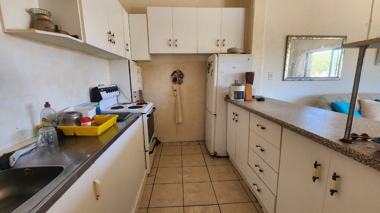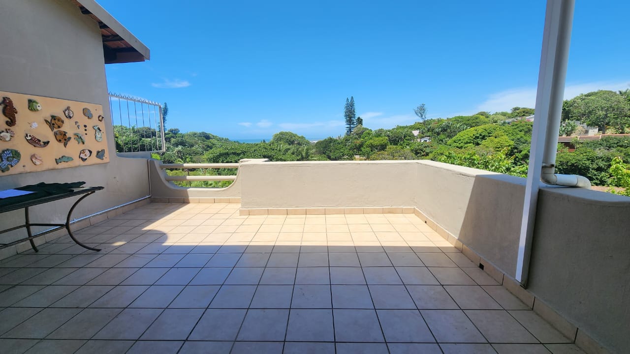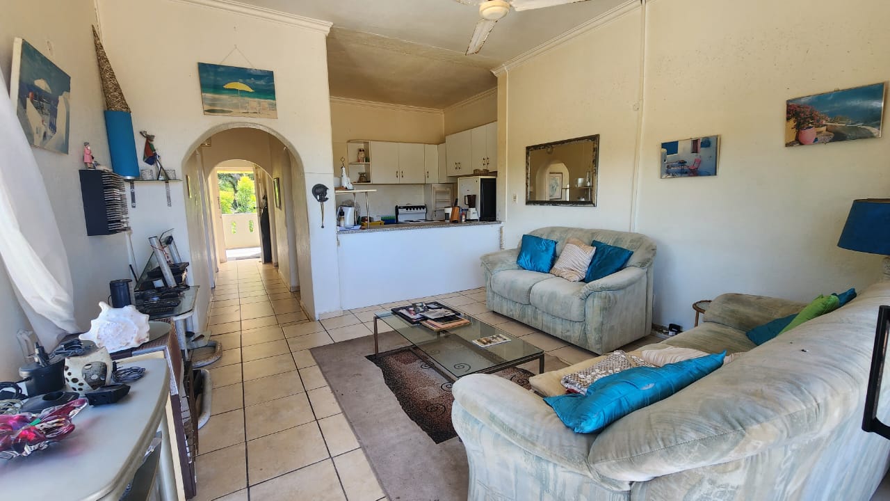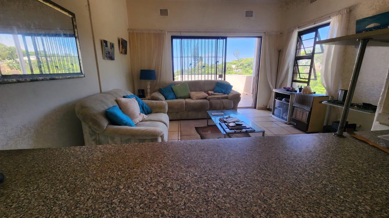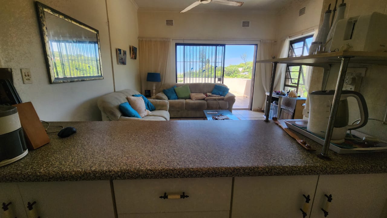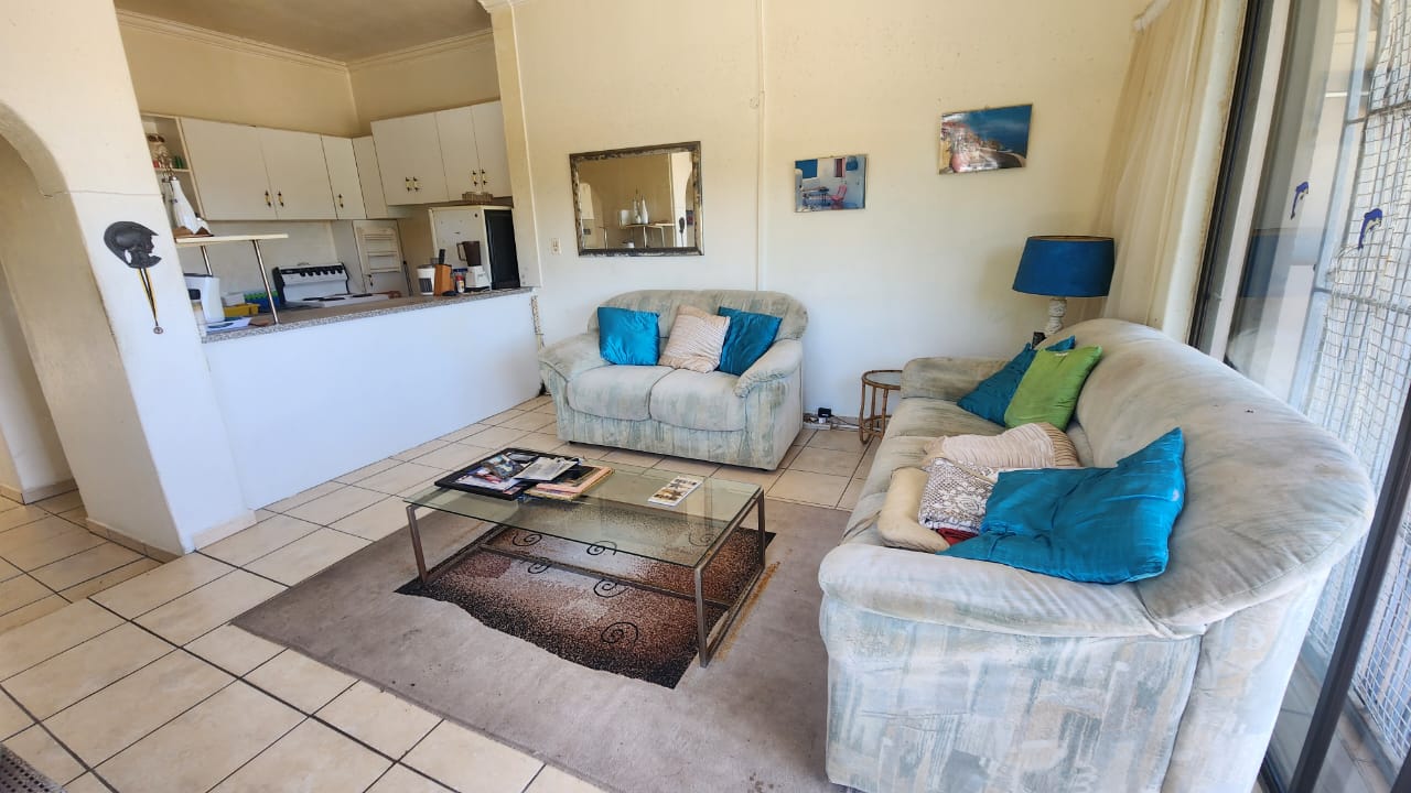 The living area is spacious and open plan which leads out onto a large private balcony, where breathtaking sea views await. The two bedrooms both have built in cupboards and fans and the main bedroom has an en-suite bathroom.
