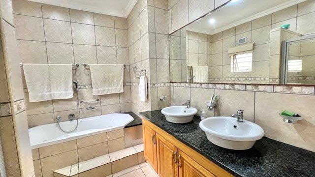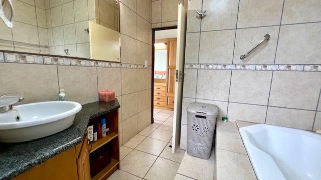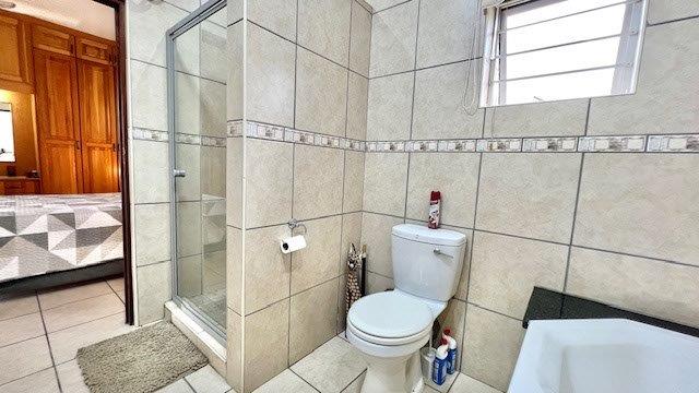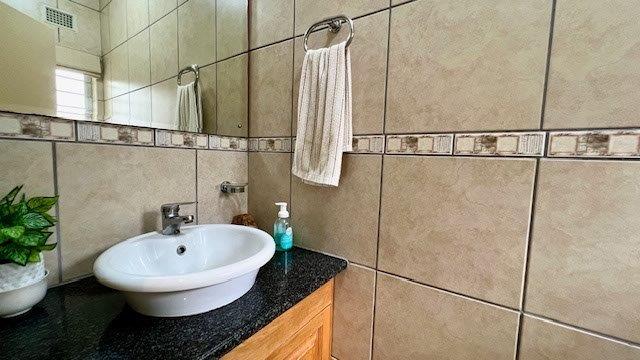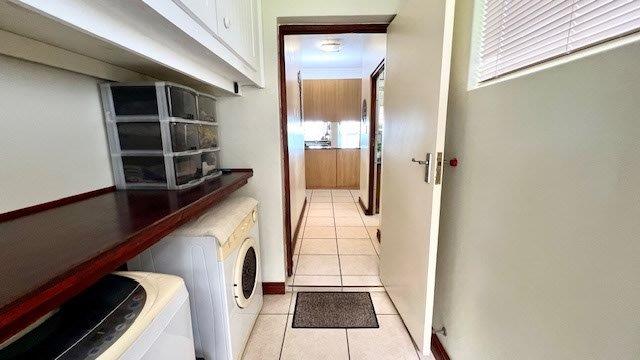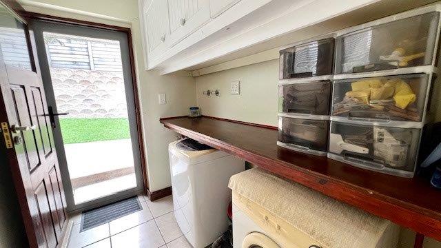 Next to the guest bathroom is a separate laundry room with a door leading directly to the back garden, making household chores effortless. The property also includes a JoJo tank for water storage, and the complex itself has a fully filtered borehole system supplying water to all units, ensuring a reliable water supply at all times.