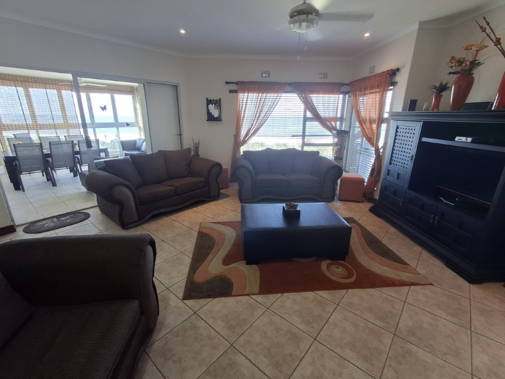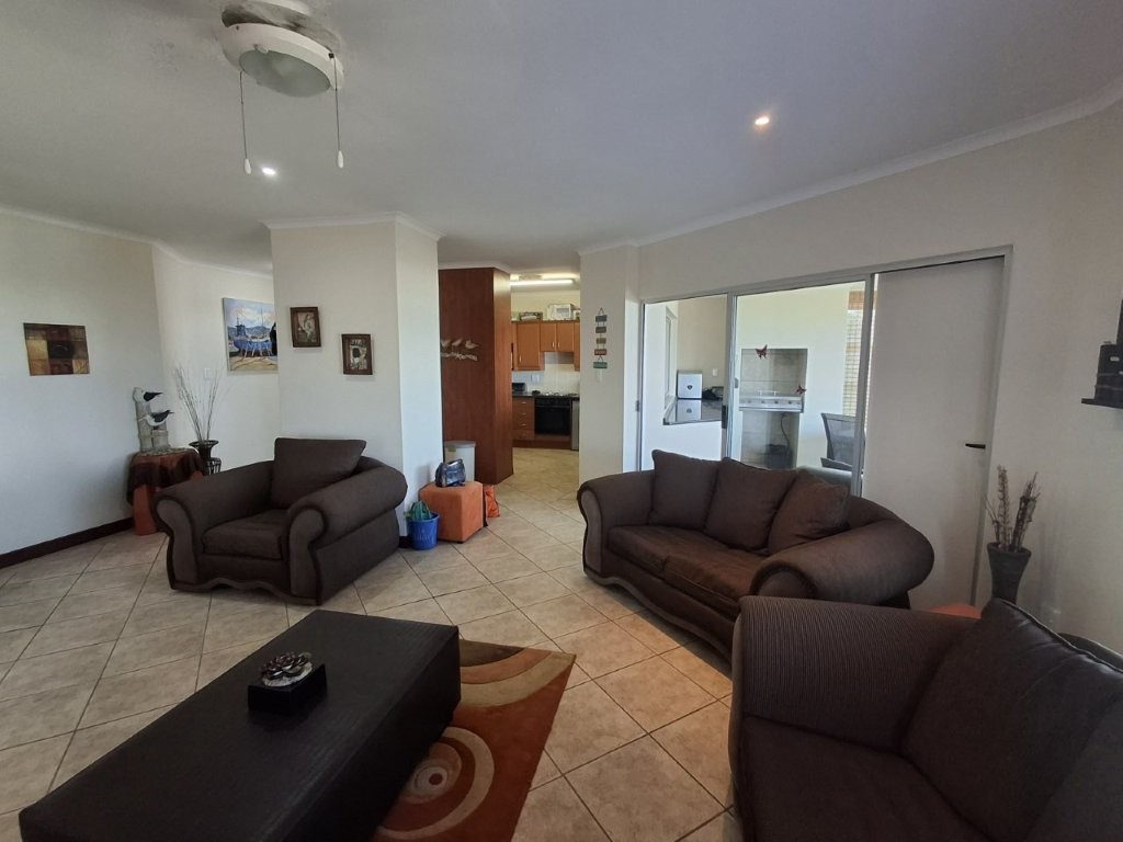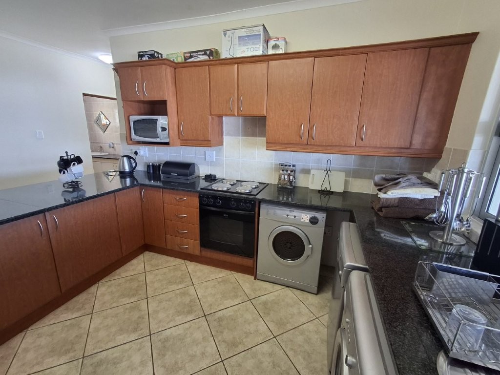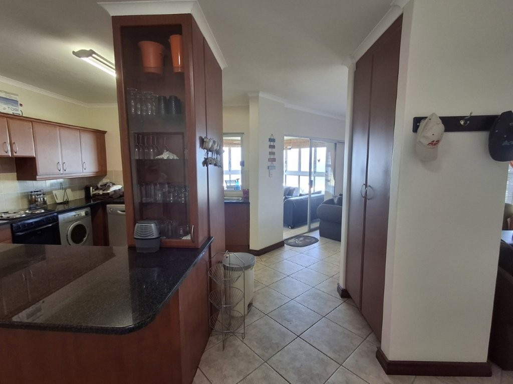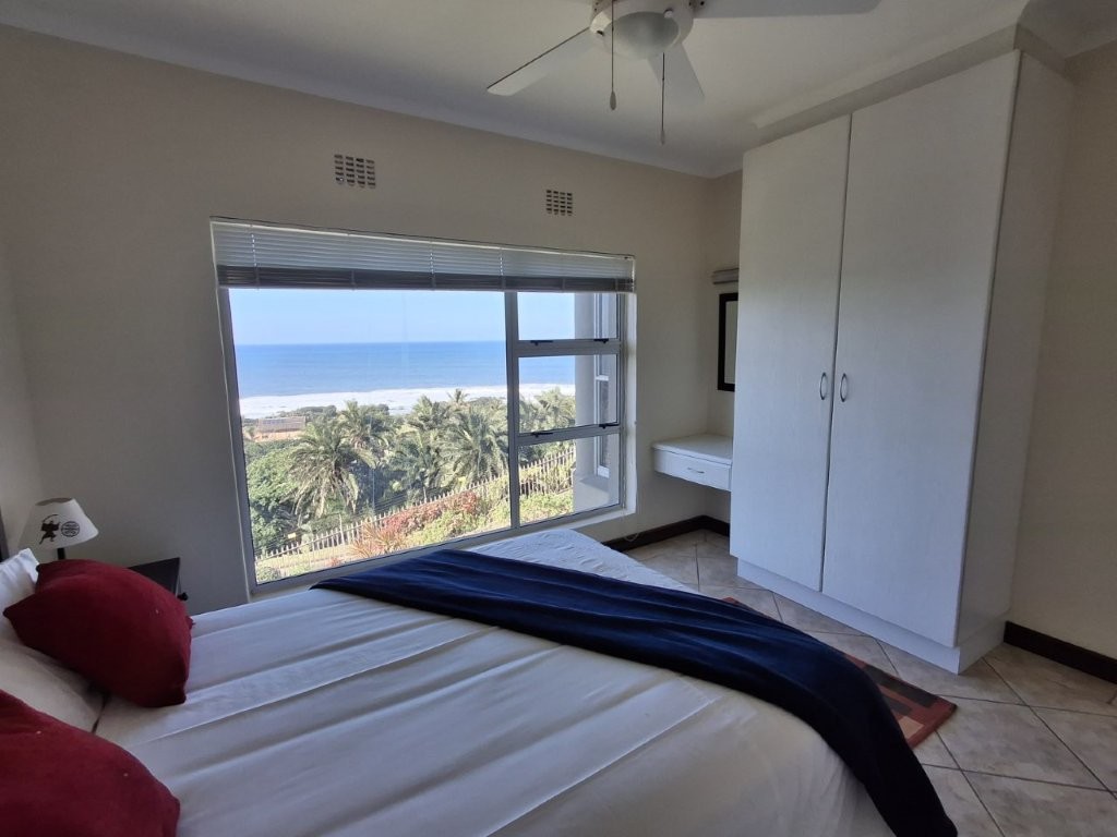 This beautiful upmarket apartment will capture your heart !! the feeling of well-being envelops you as you are met with bright spacious, open plan, living areas with the vast Indian ocean as your backdrop. The living areas are very versatile. An under-cover entrance will lead you into the spacious lounge with glass sliders leading into a dining area of note, with built in braai, this can be utilized as a formal entertaining area or a laid-back braai evening. With the entire area having stack sliding windows you will have the Ocean as a permanent dinner guest.