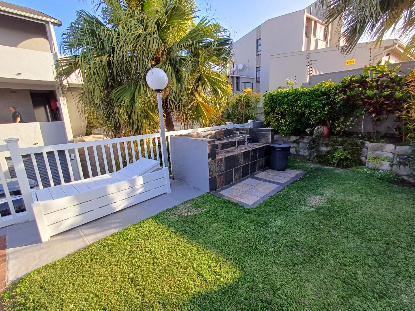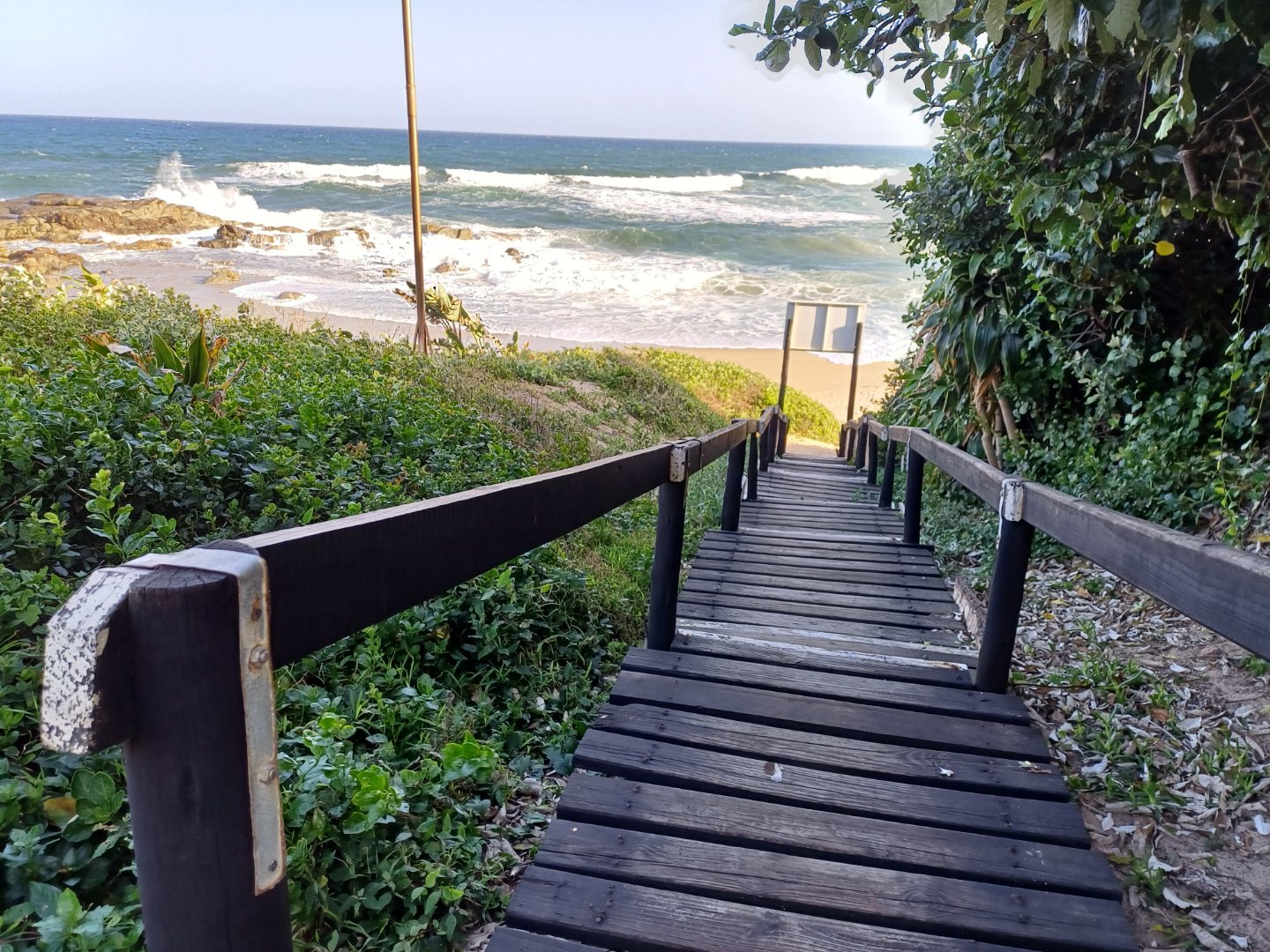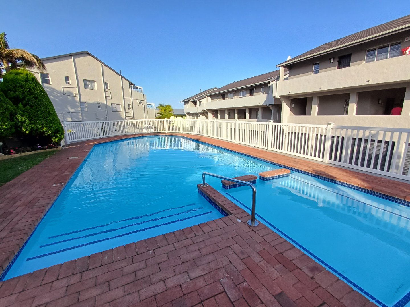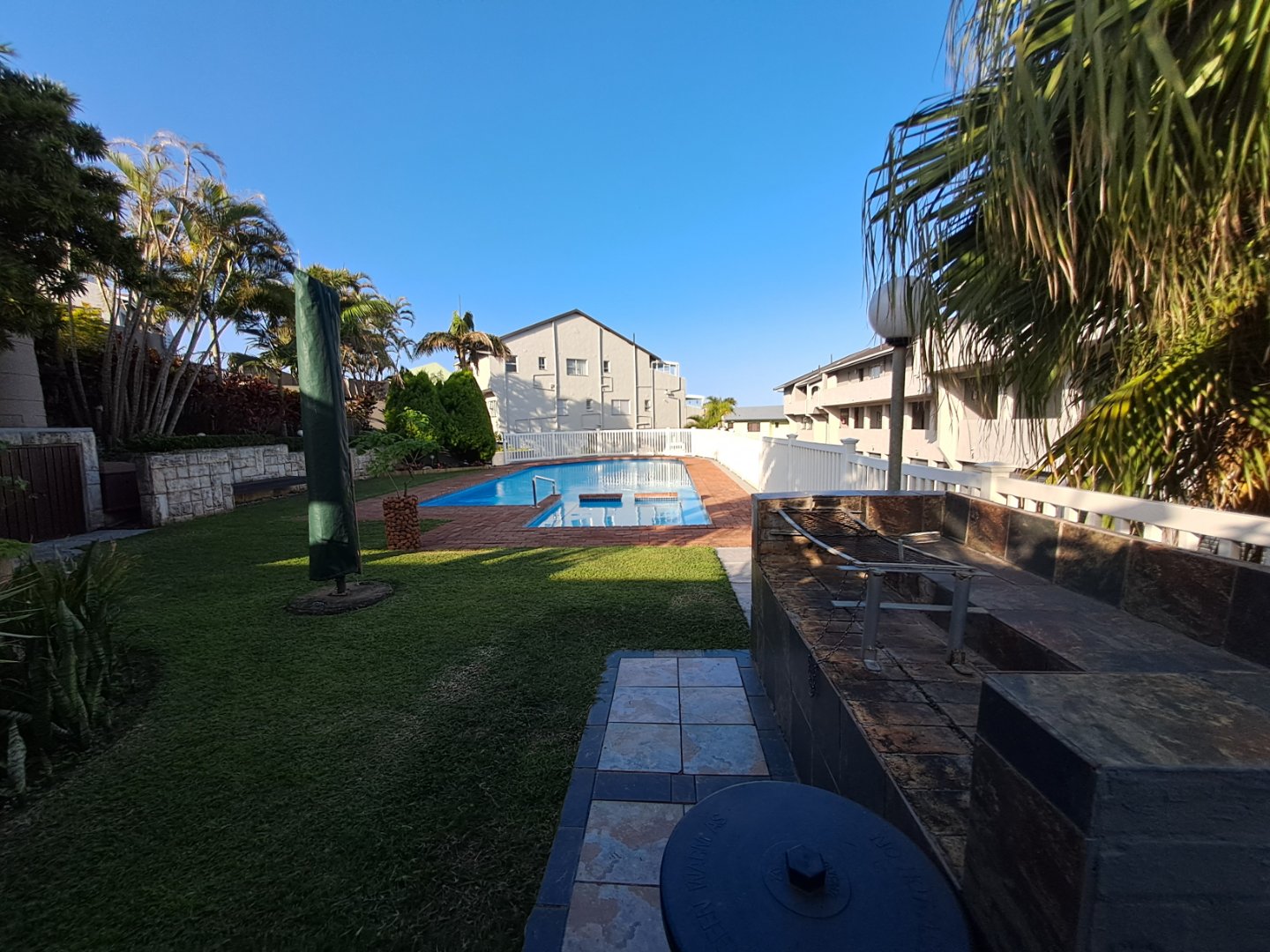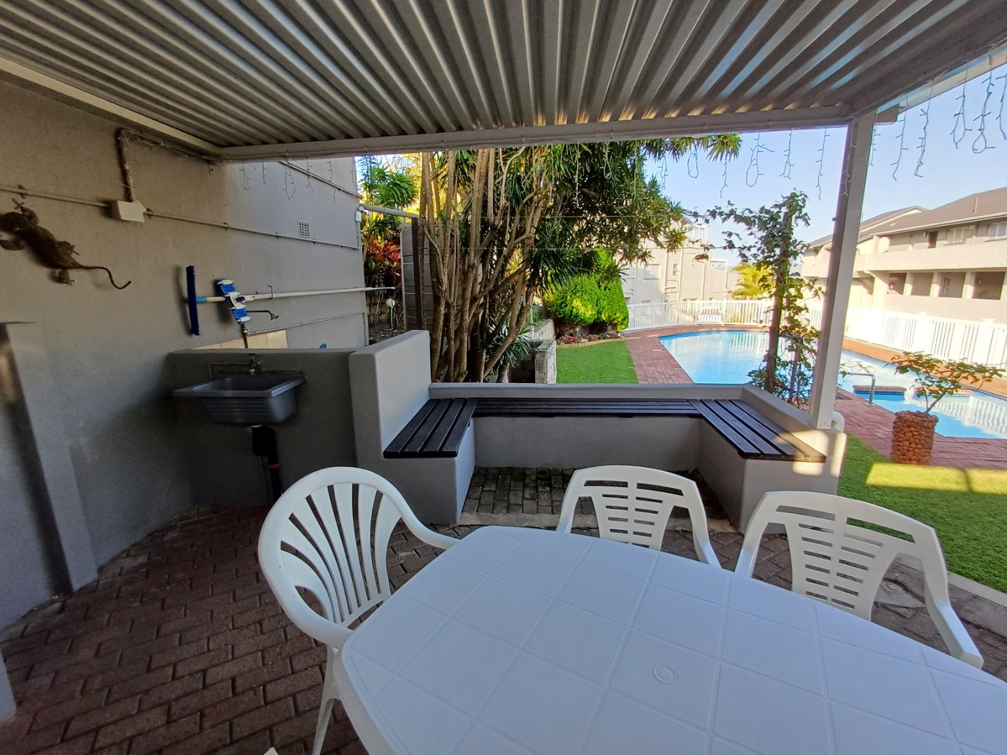 Lots of vegetation offers privacy and shelter on windy days, and the communal garden leads to the 20 steps to the beach in front of the complex. At the rear, is a lovely covered entertainment patio overlooking the swimming pool and braai area, all set in a manicured and landscaped garden.