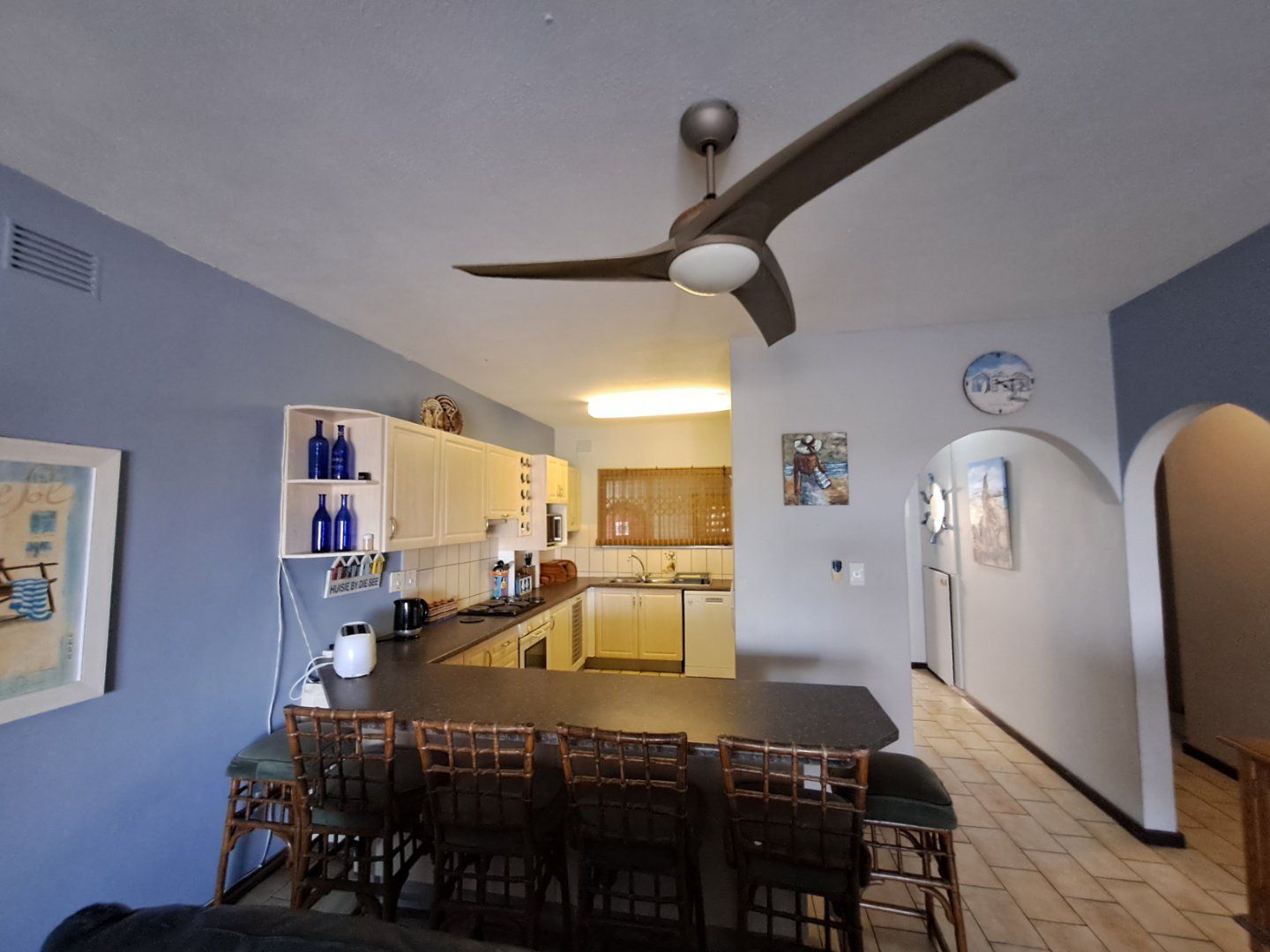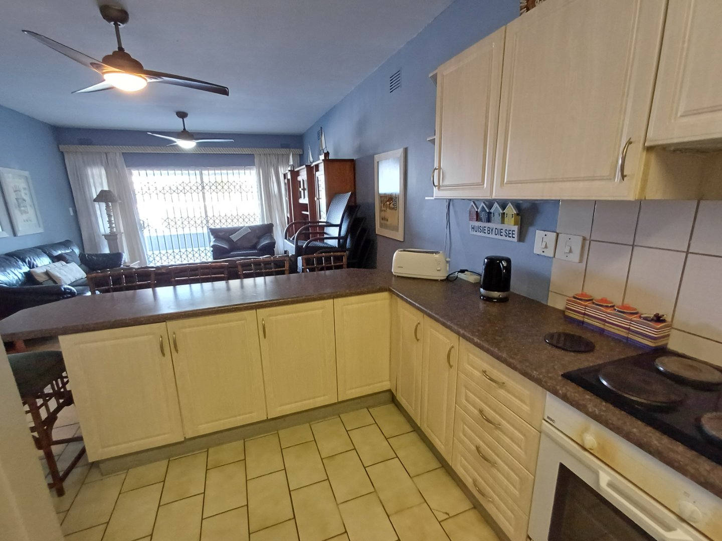 Space, privacy, a lock up garage, parking bay, electric fence, back up water tanks and a freshly painted, well managed security complex of only 18 units, positioned on the beach, means that this property ticks all the boxes for a family looking for a tranquil retreat at the coast.