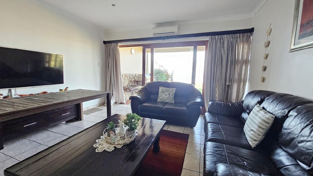 This inviting space is perfect for entertaining loved ones or simply just unwinding in the fresh coastal air. The unit features three beautifully designed bedrooms, each offering comfort and style. The main bedroom enjoys direct access to the patio and allows you to wake up to uninterrupted sea views. It also boasts an ensuite bathroom with a shower and offers ample wardrobe space. The second bedroom is bright and airy, featuring two single beds and generous built in cupboards. Sunlight streams in, creating a warm and welcoming atmosphere. The third bedroom is equally inviting, fitted with a double bed, ample wardrobe space and baths in natural light throughout the day. A second bathroom is conveniently shared by the second and third bedrooms. The complex is impeccably maintained all year round and offers excellent security, access to high speed fibre internet, and a reserve water tank for added convenience. Location is everything - situated close to premier attractions such as the Ramsgate Ski boat base, the iconic Waffle House and essential shopping outlets that are less than two kilometres away. You are also just a short stroll from some of the most picturesque beaches on the coast . This stunning coastal home is not to be missed.