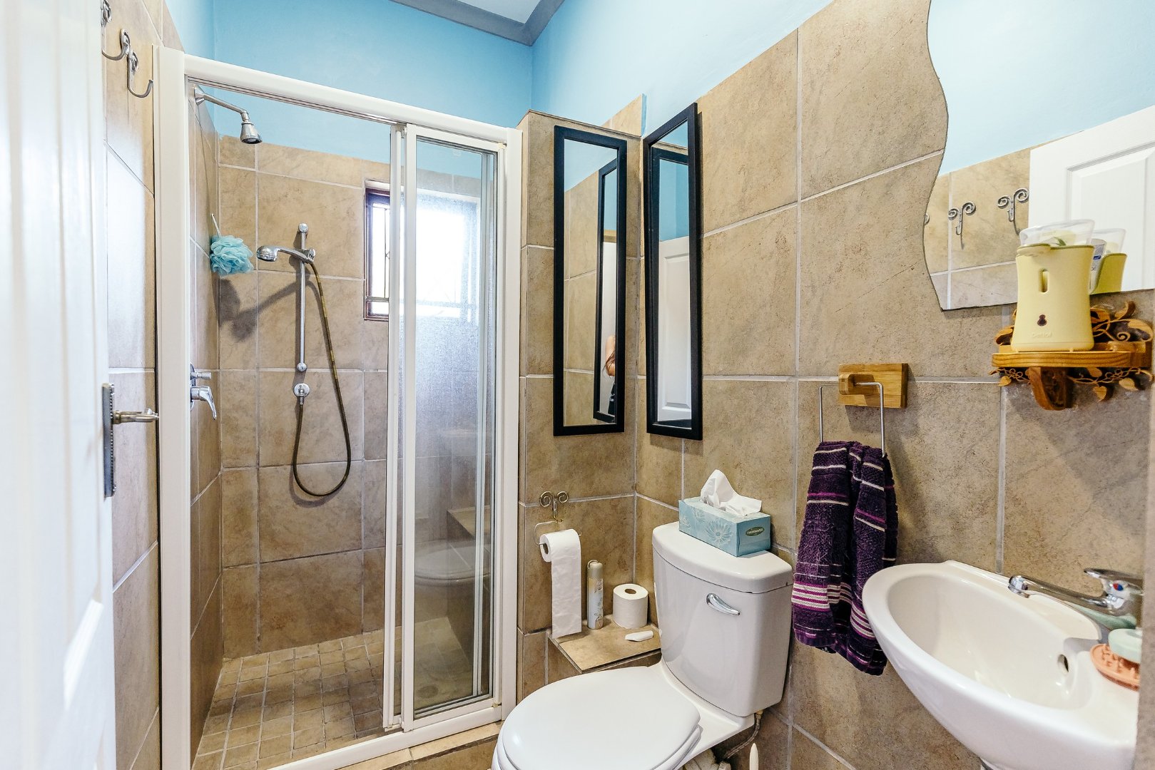 Open plan living area overlooking the ocean as well as leading to a large balcony. The kitchen is modern, with granite tops, dbl eye level oven, gas and electric hob, as well as a scullery. The main bedroom has a full en-suite with a separate toilet, there is also ample cupboards and a sea view. Downstairs is a large entertainment area which could be an office for anyone wishing to work from home, or possibly made into a guest suite.