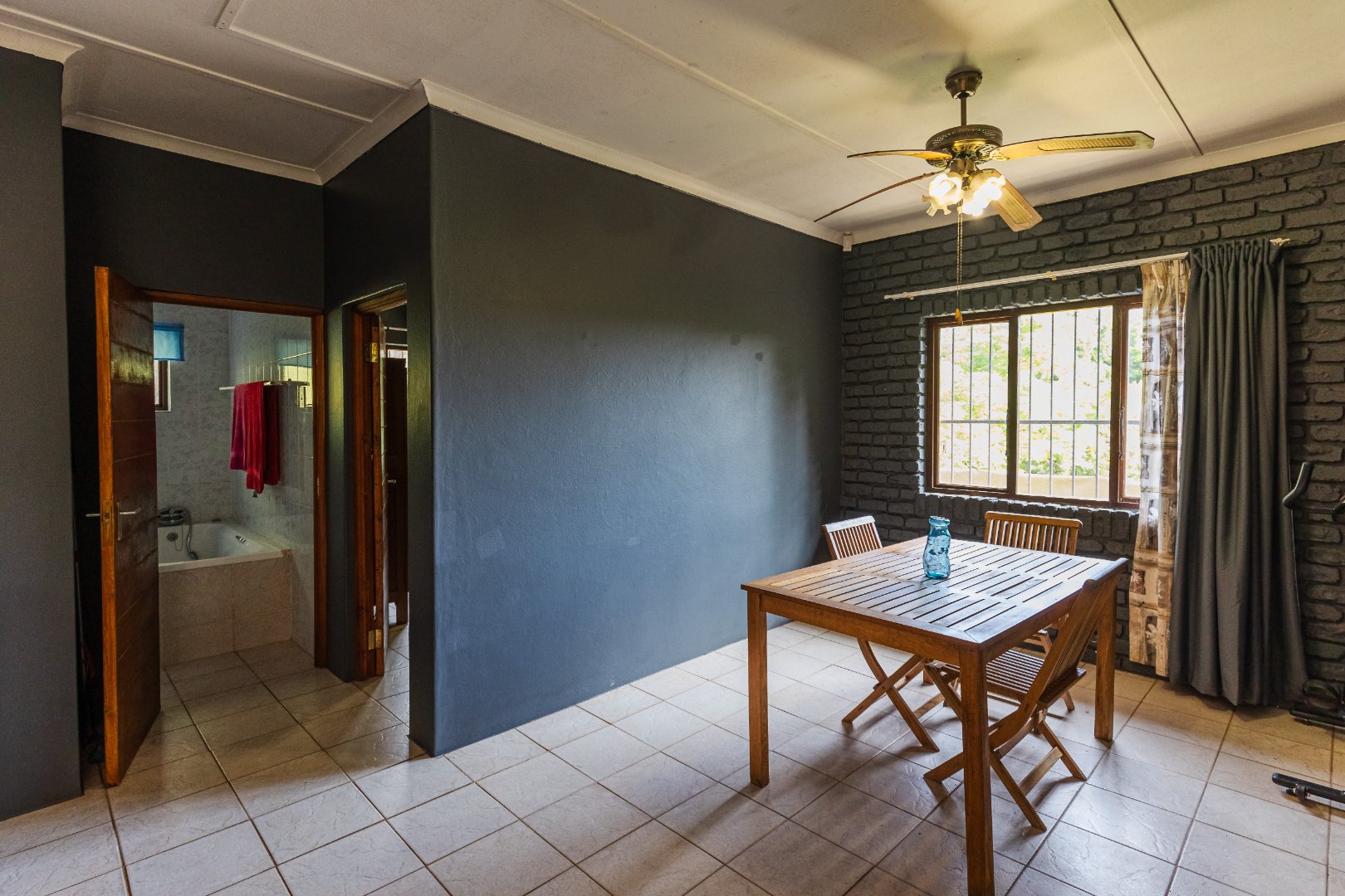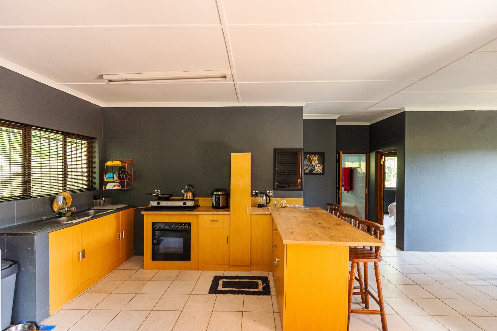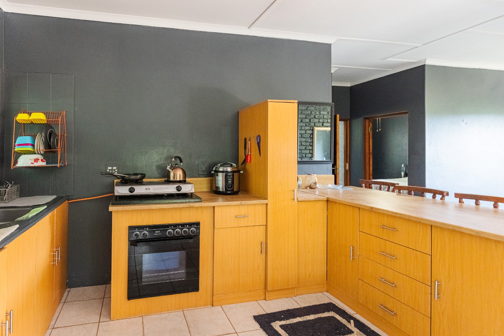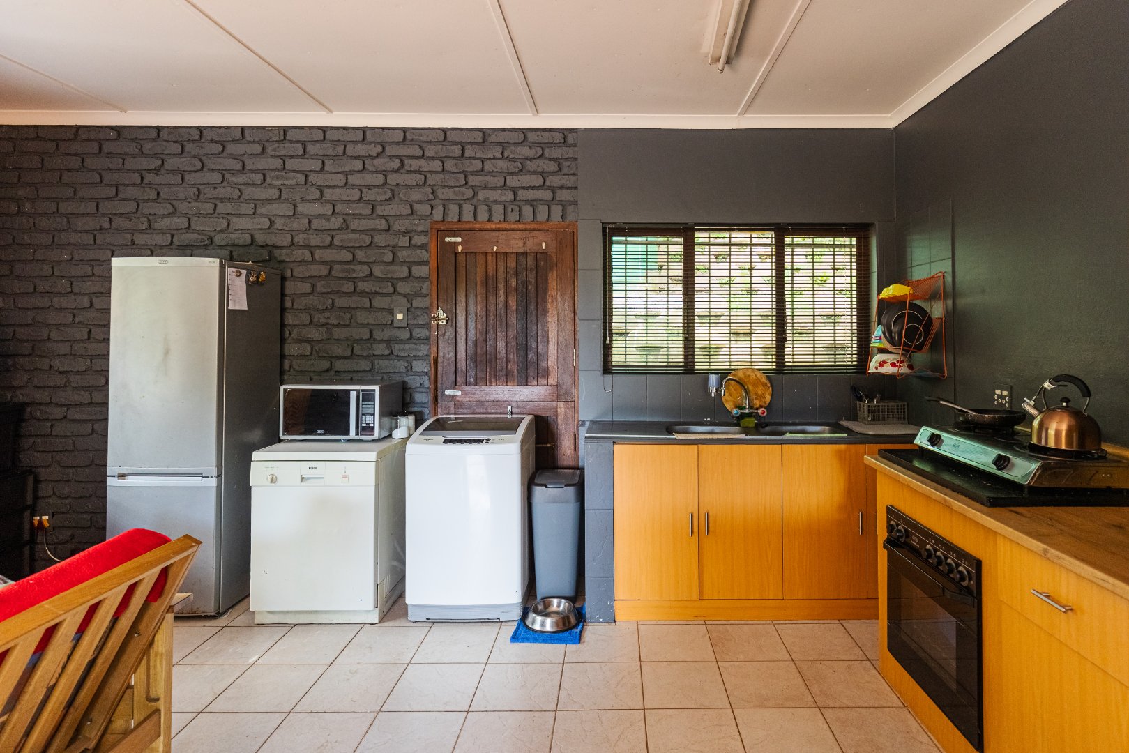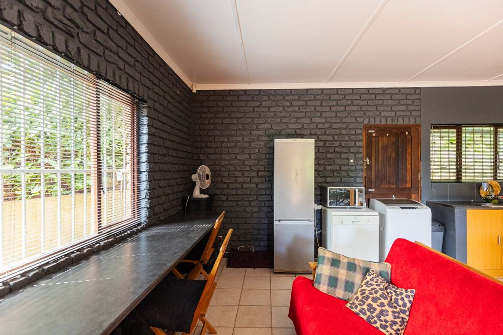 There is a water tank, a built-in braai and the property is fully walled with an alarm system, outside beams and burglar bars.