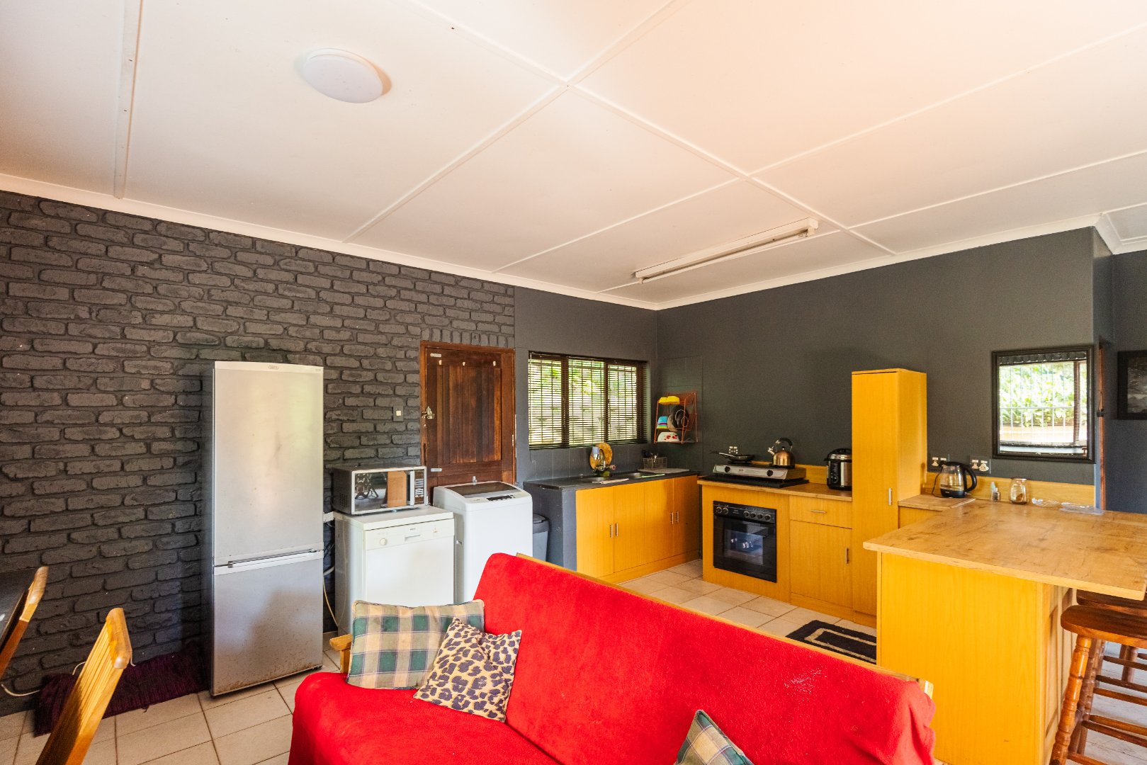 This house consists of an open plan kitchen, lounge and dining room. The 2 bedrooms are spacious and neat, both sharing a bathroom.