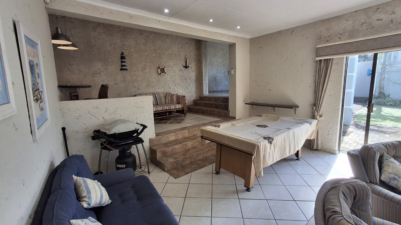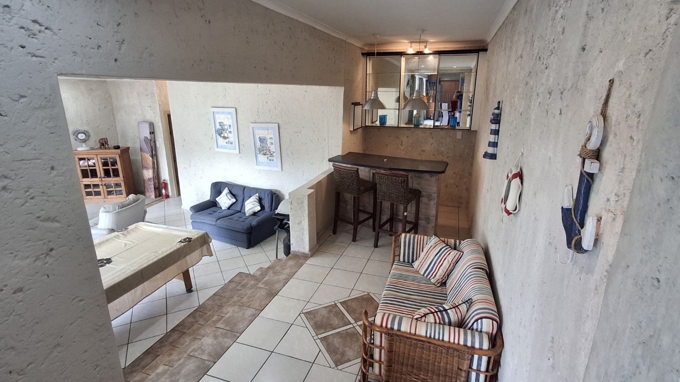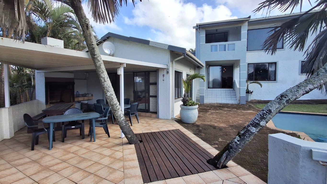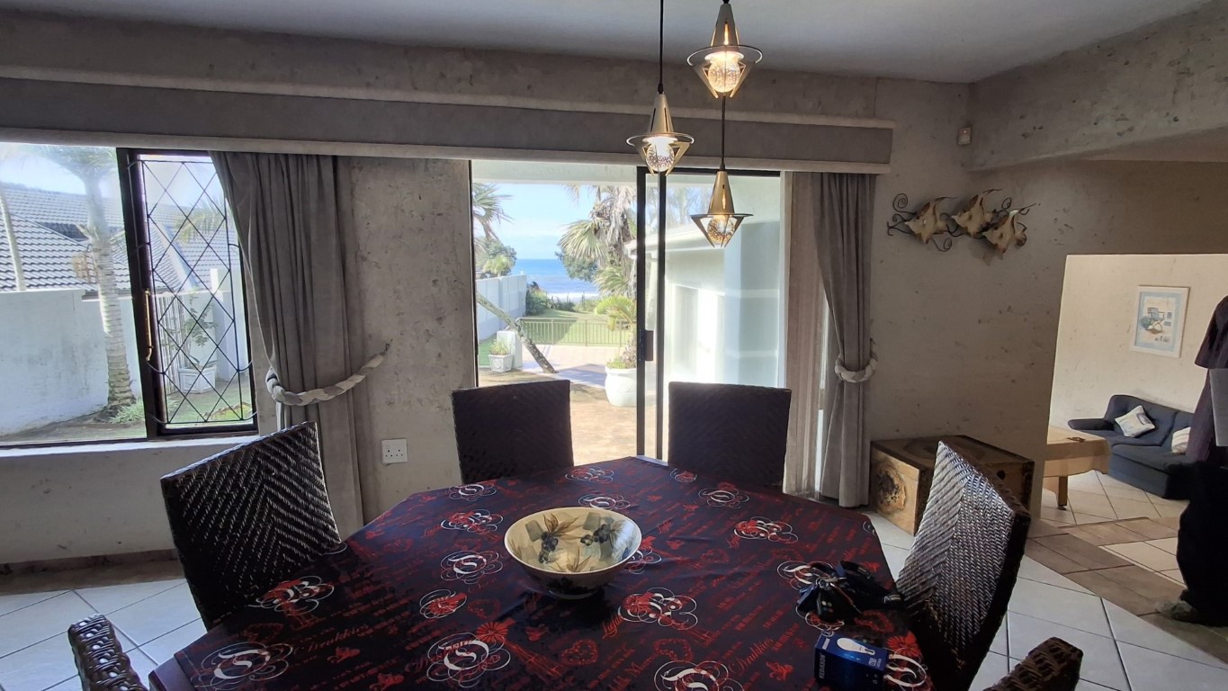 This beautiful sea front home is just waiting for the right owner to come along. It is beautifully set on a 1078sqm stand with a private access to the beach. A lovely flowing home with a large lounge with guest cloakroom, bar with open access to the undercover braai area. There are sliders all round which lead out to the patio and pool area also linked to the braai and entertainment area.