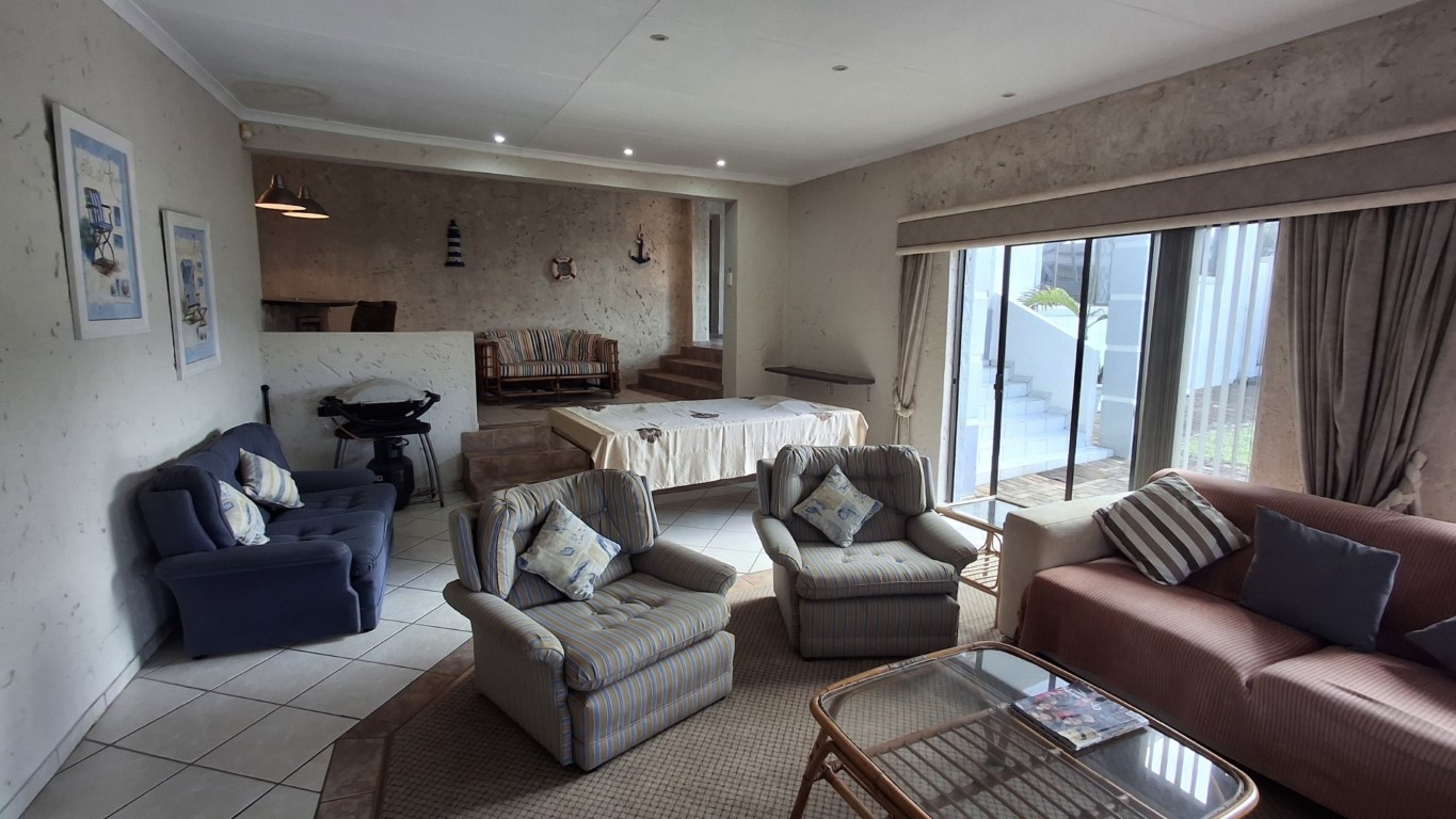 The kitchen is well appointed and has a scullery and laundry. There are 5 bedrooms and 3 bathrooms where the main has an en-suite and personal lounge open to a veranda with magical sea views and the well-maintained grounds. On the right as one enters the house there is a 2-bedroom, lounge and bathroom for that added privacy for guests if need be. This is the flatlet that makes up the 4th and 5th bedroom.