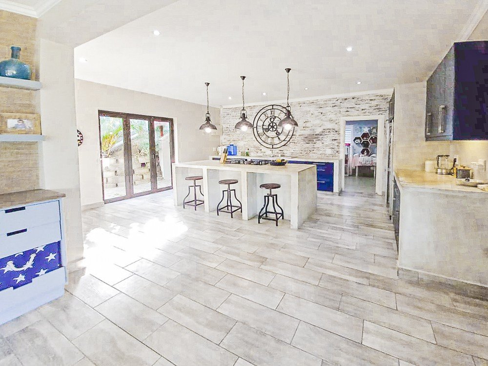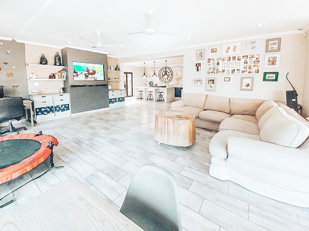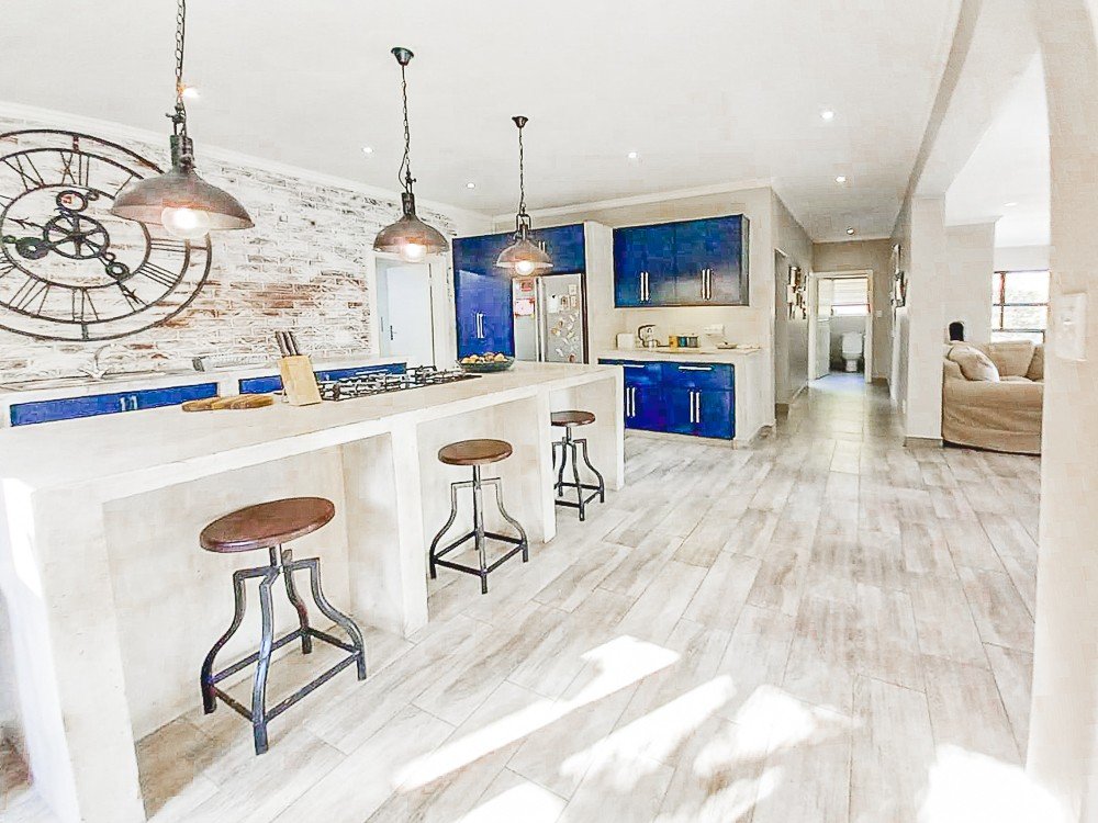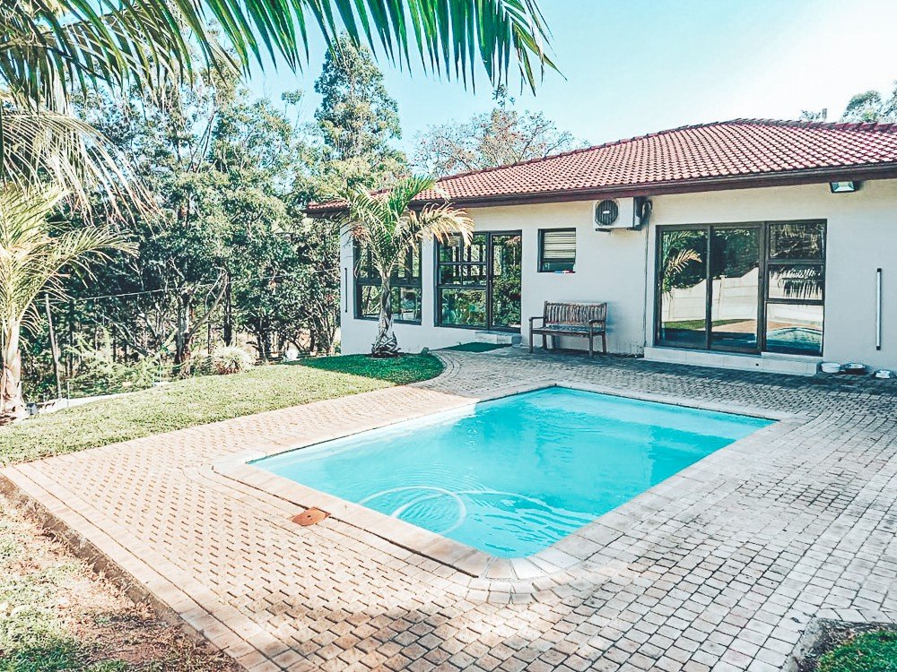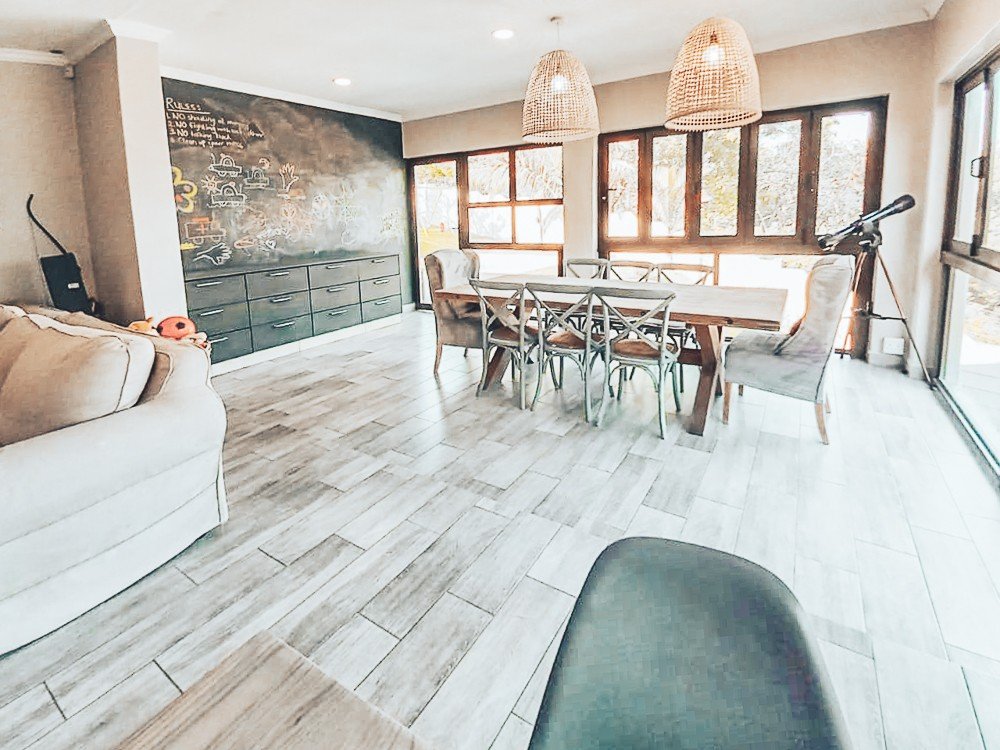 House 1, is situated at the bottom of the garden and has a modern farm style feel with a lovely open plan living area and gourmet kitchen. There is also 3 bright and airy bedrooms, two en-suite bathrooms and a guest toilet. From the living area you walk out to the pretty garden and sparkling swimming pool. There is also a double garage with direct access to the house and it also has a shower, toilet and hand basin, ideal for staff.