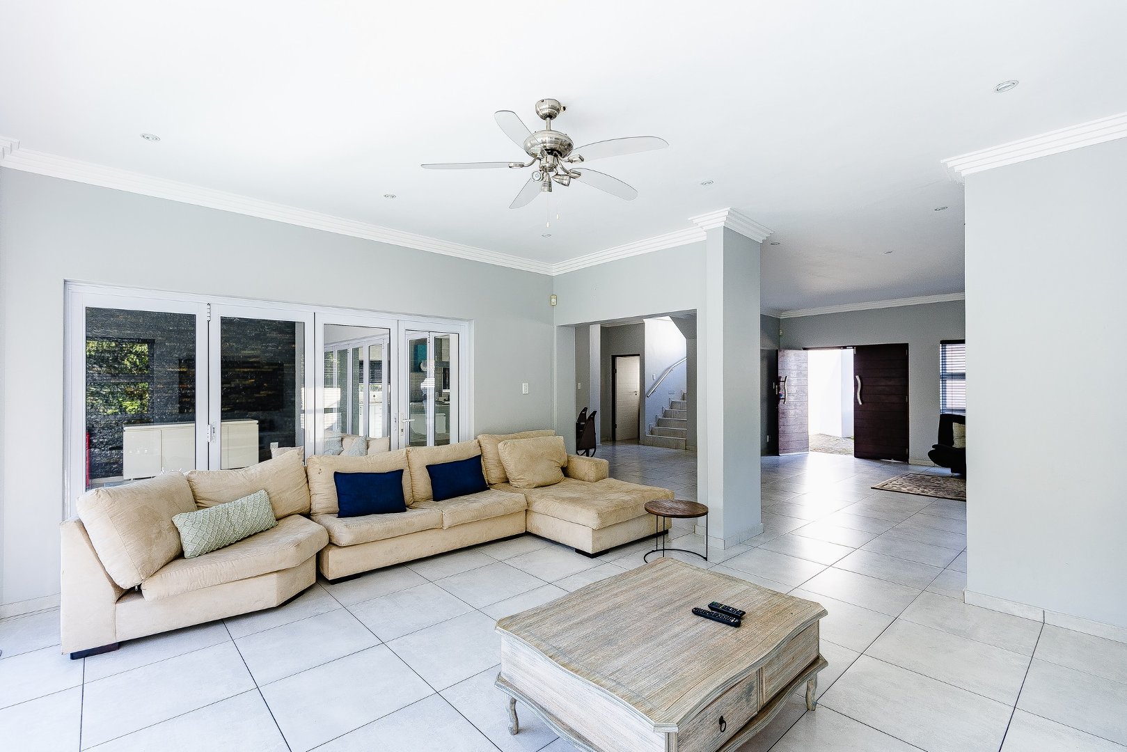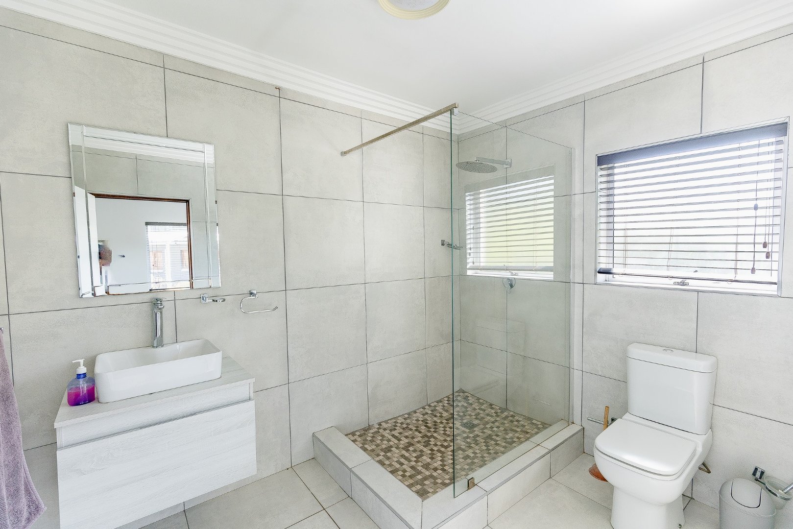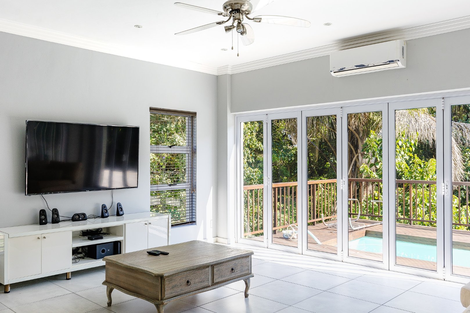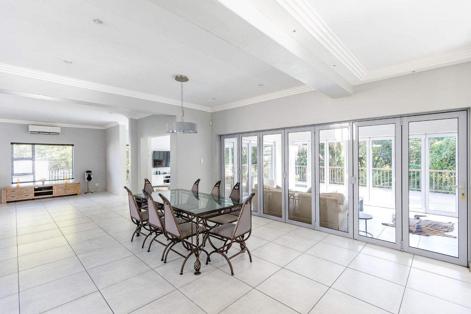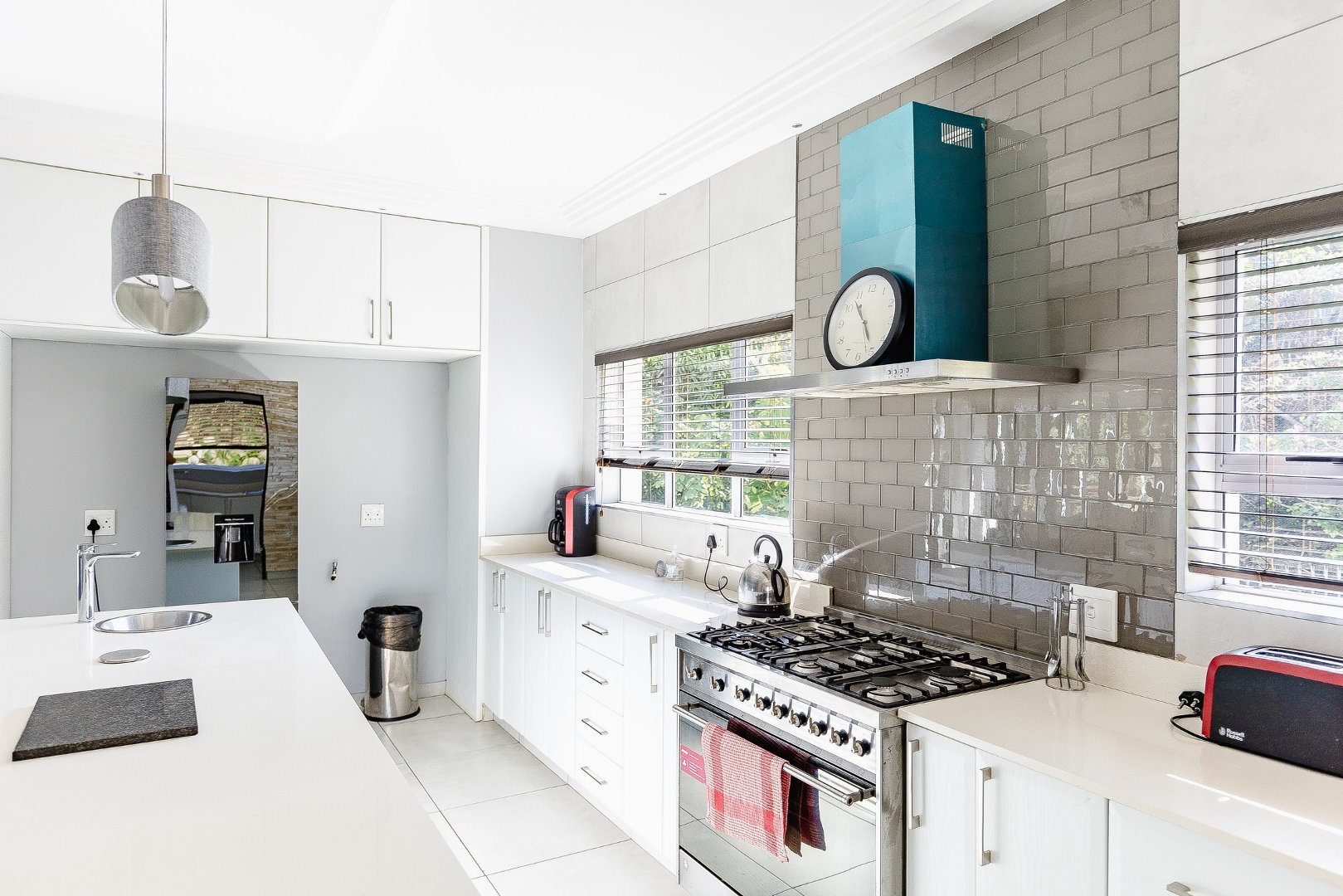This freestanding house is perfect for a big family, offering ample space and luxurious features. The first level boasts an open-plan design, seamlessly connecting the living spaces for a spacious and airy feel. Enjoy a modern kitchen with a centre island, plenty of cupboard space, a scullery, and a pantry—ideal for culinary enthusiasts. The dining room opens via stack doors to an enclosed patio, leading to a wooden deck with a sparkling pool, perfect for entertaining. Two lounge areas provide versatile living spaces, with one opening directly to the patio and pool area.