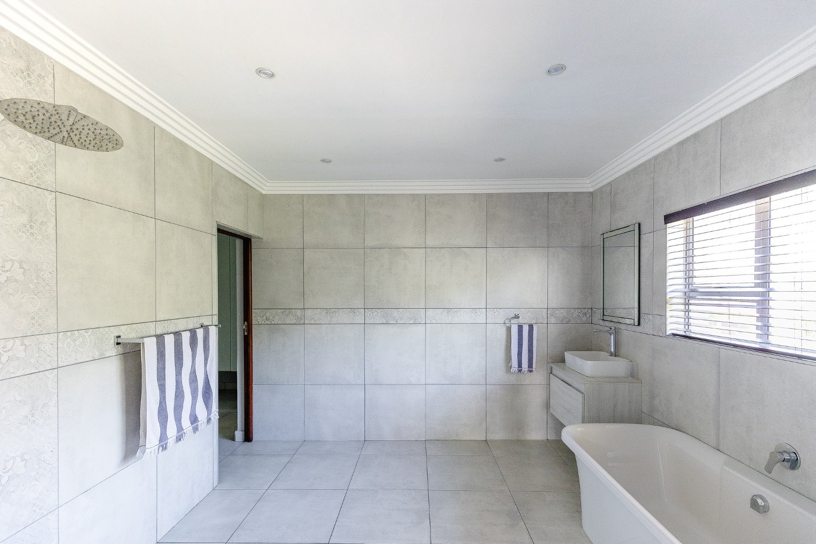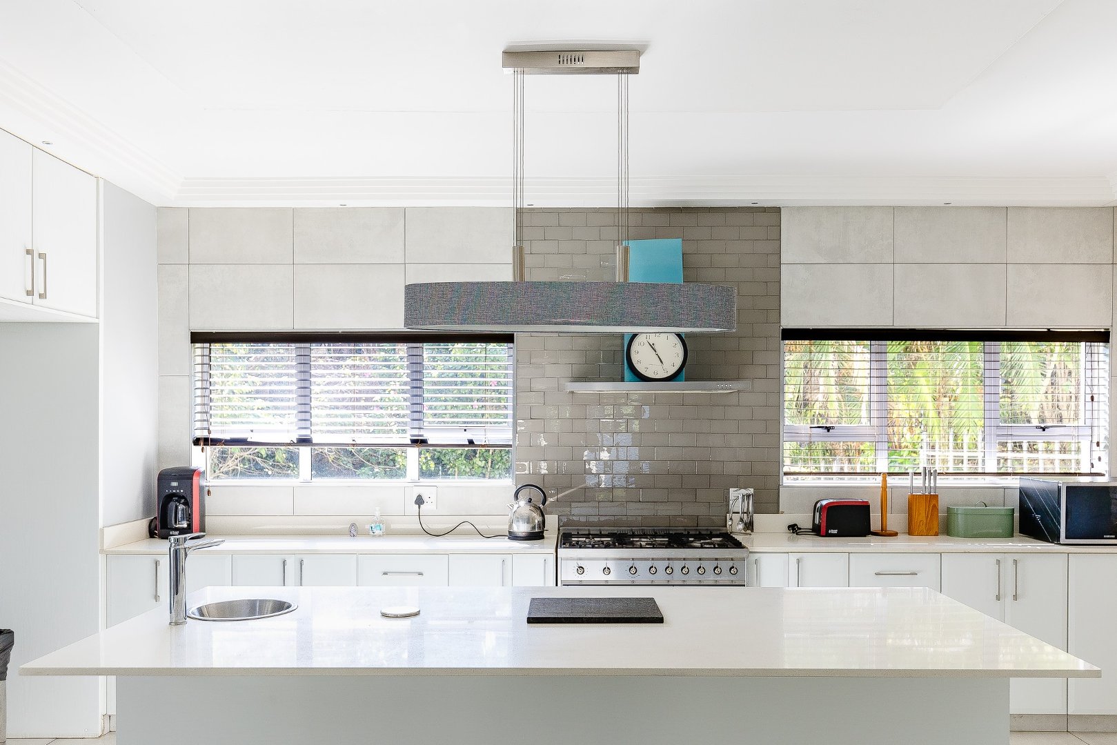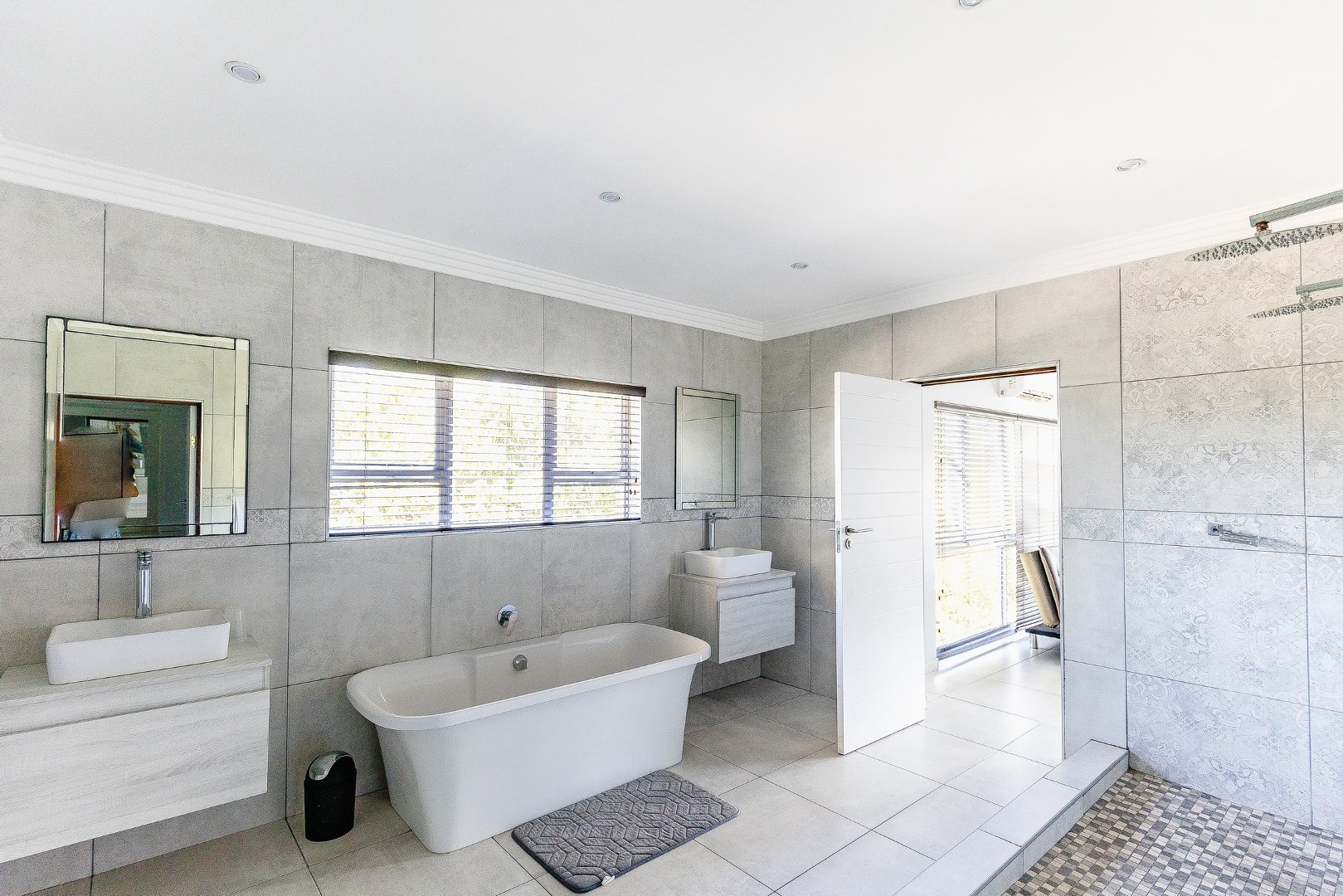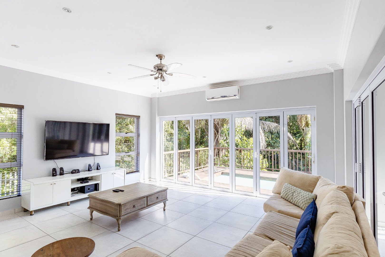 This freestanding house is perfect for a big family, offering ample space and luxurious features. The first level boasts an open-plan design, seamlessly connecting the living spaces for a spacious and airy feel. Enjoy a modern kitchen with a centre island, plenty of cupboard space, a scullery, and a pantry—ideal for culinary enthusiasts. The dining room opens via stack doors to an enclosed patio, leading to a wooden deck with a sparkling pool, perfect for entertaining. Two lounge areas provide versatile living spaces, with one opening directly to the patio and pool area.