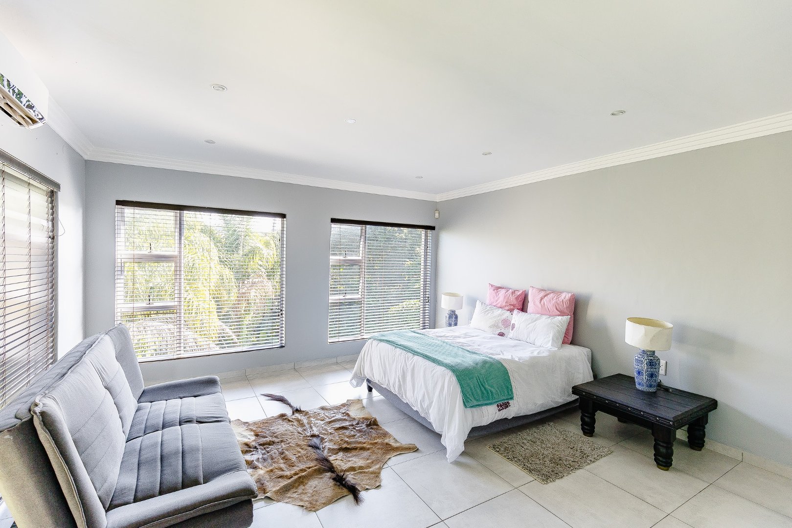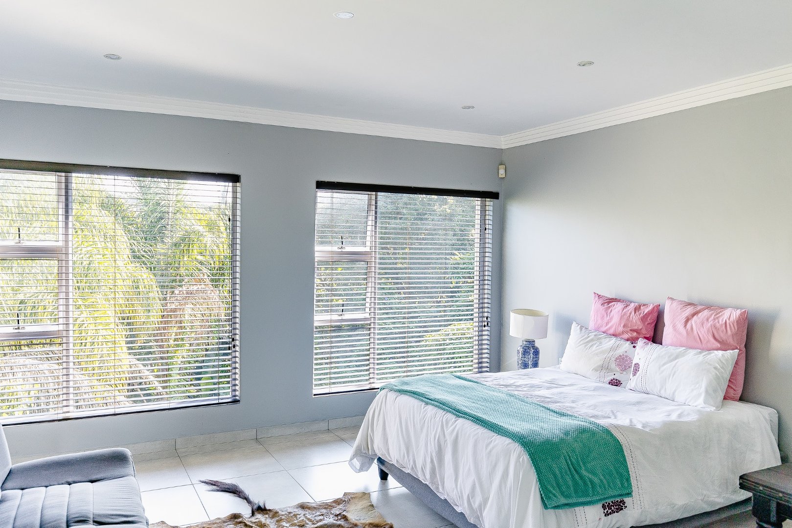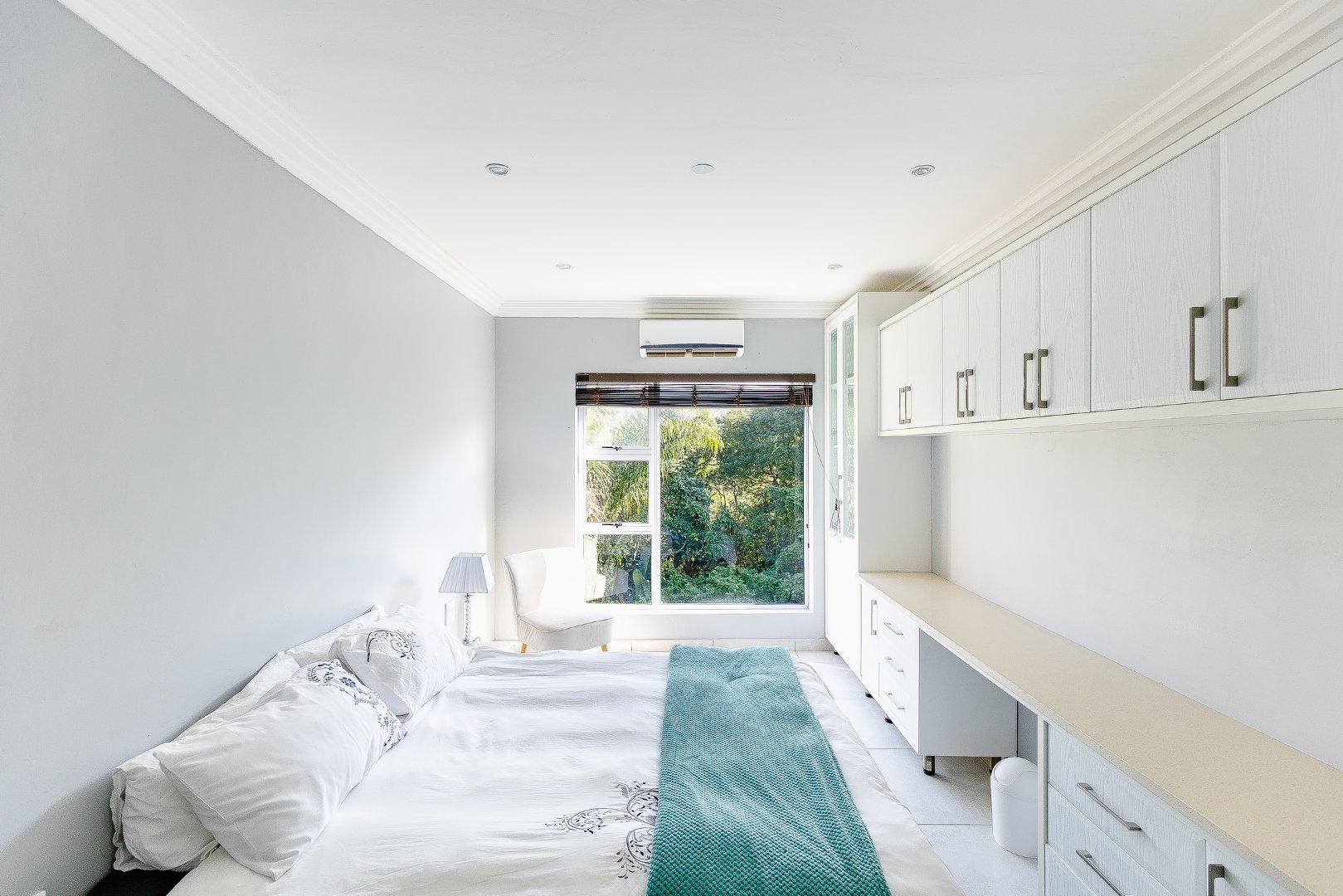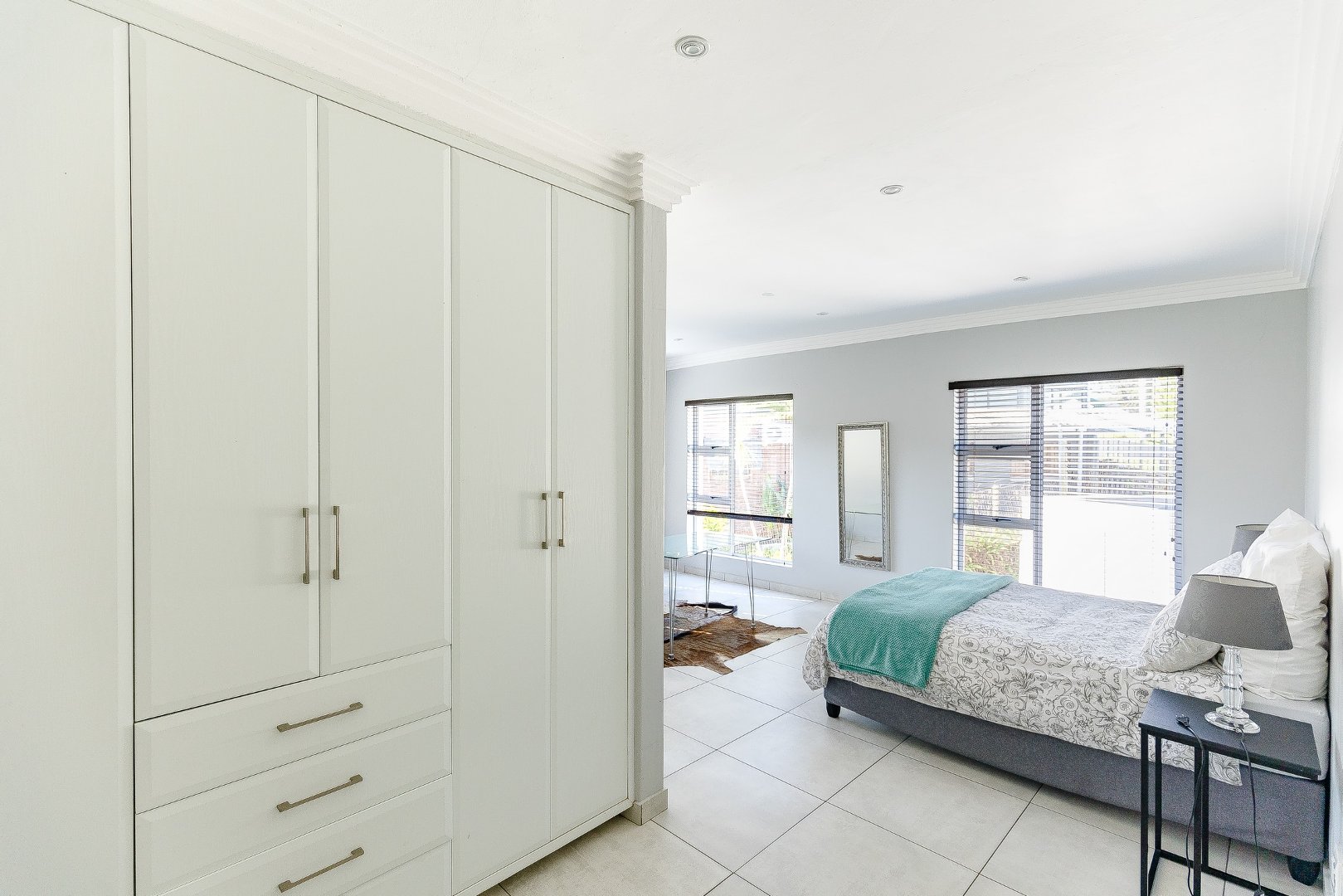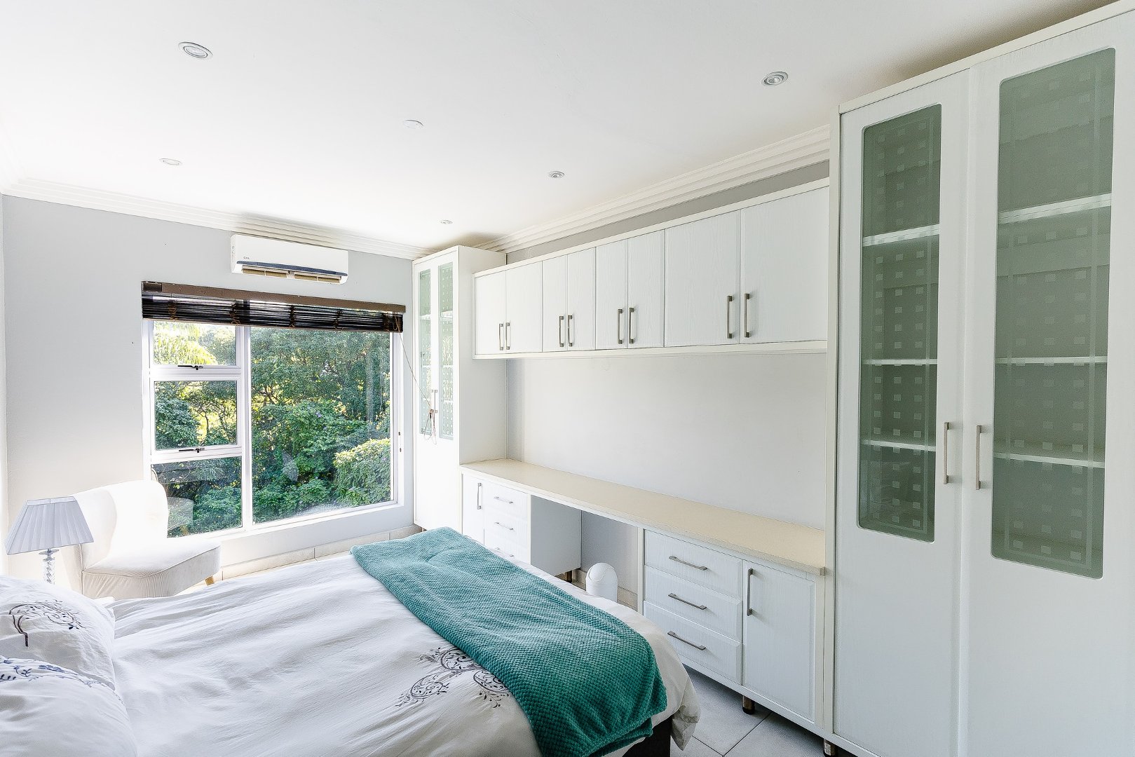 Upstairs, the home features four generous bedrooms, three of which include en-suite bathrooms. The master bedroom offers a large bathroom and a walk-in cupboard.