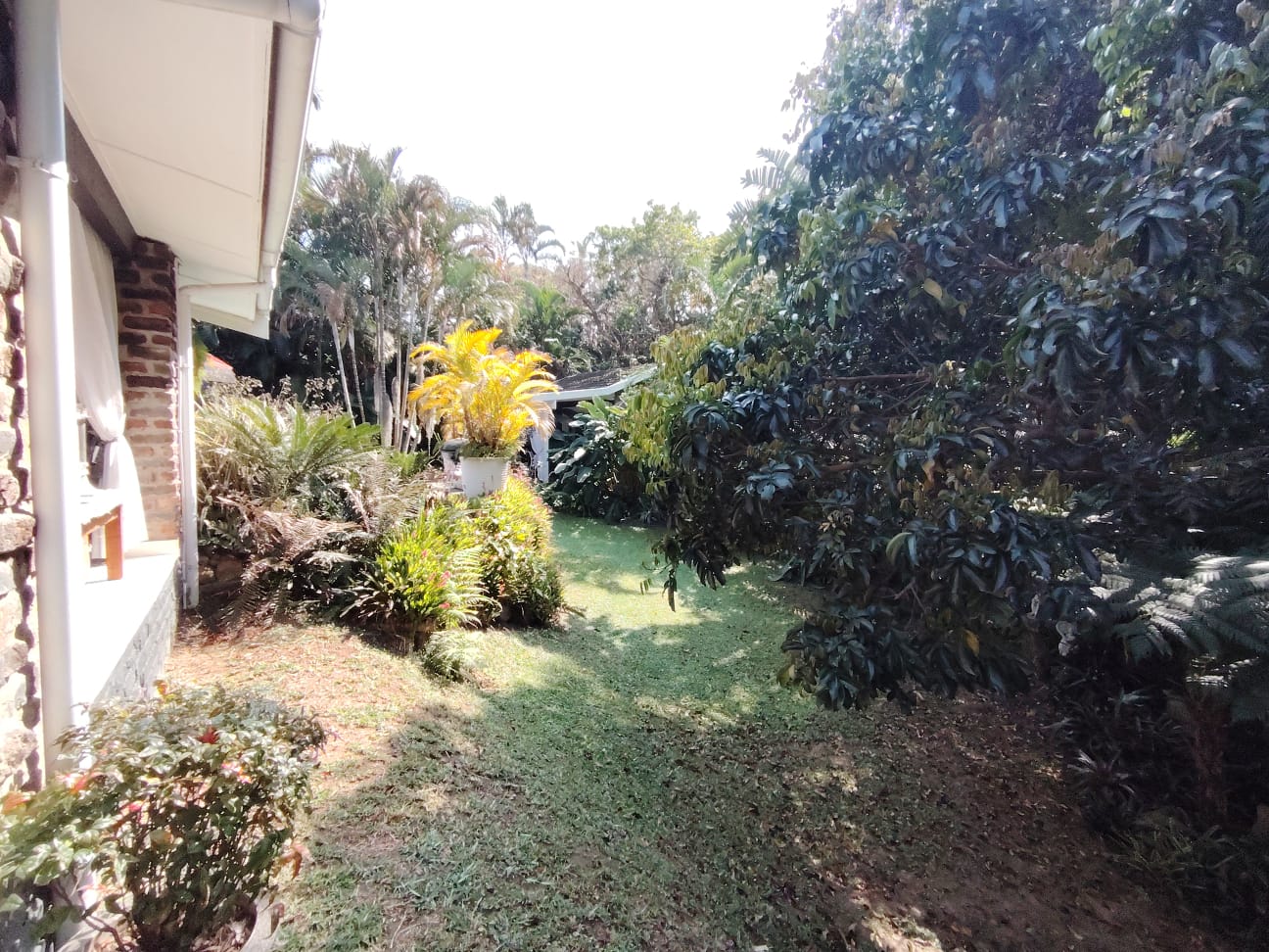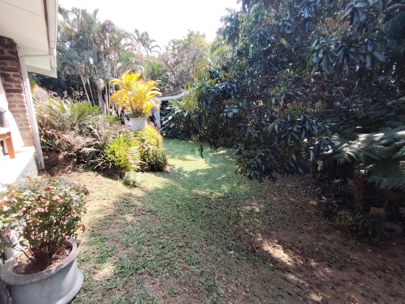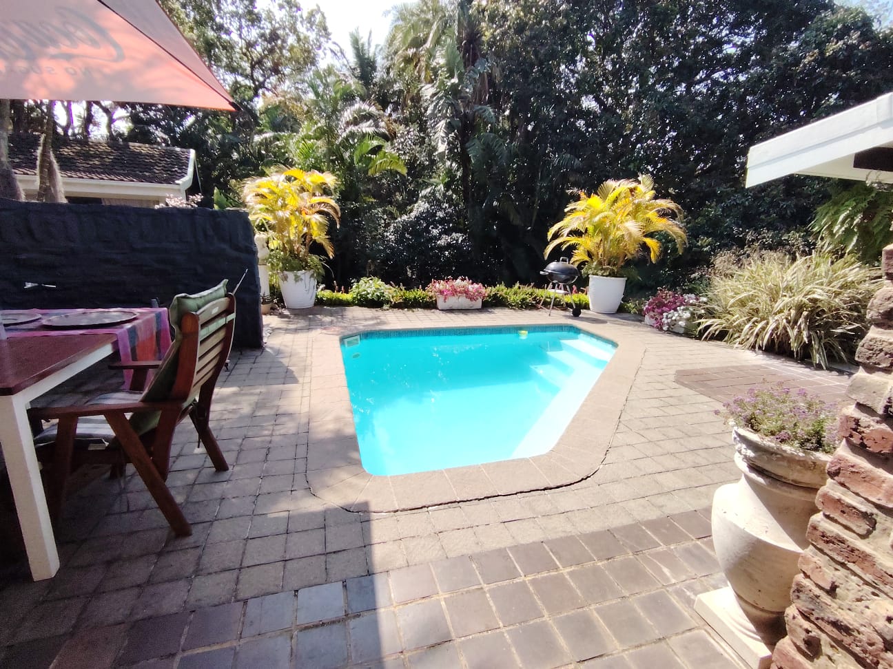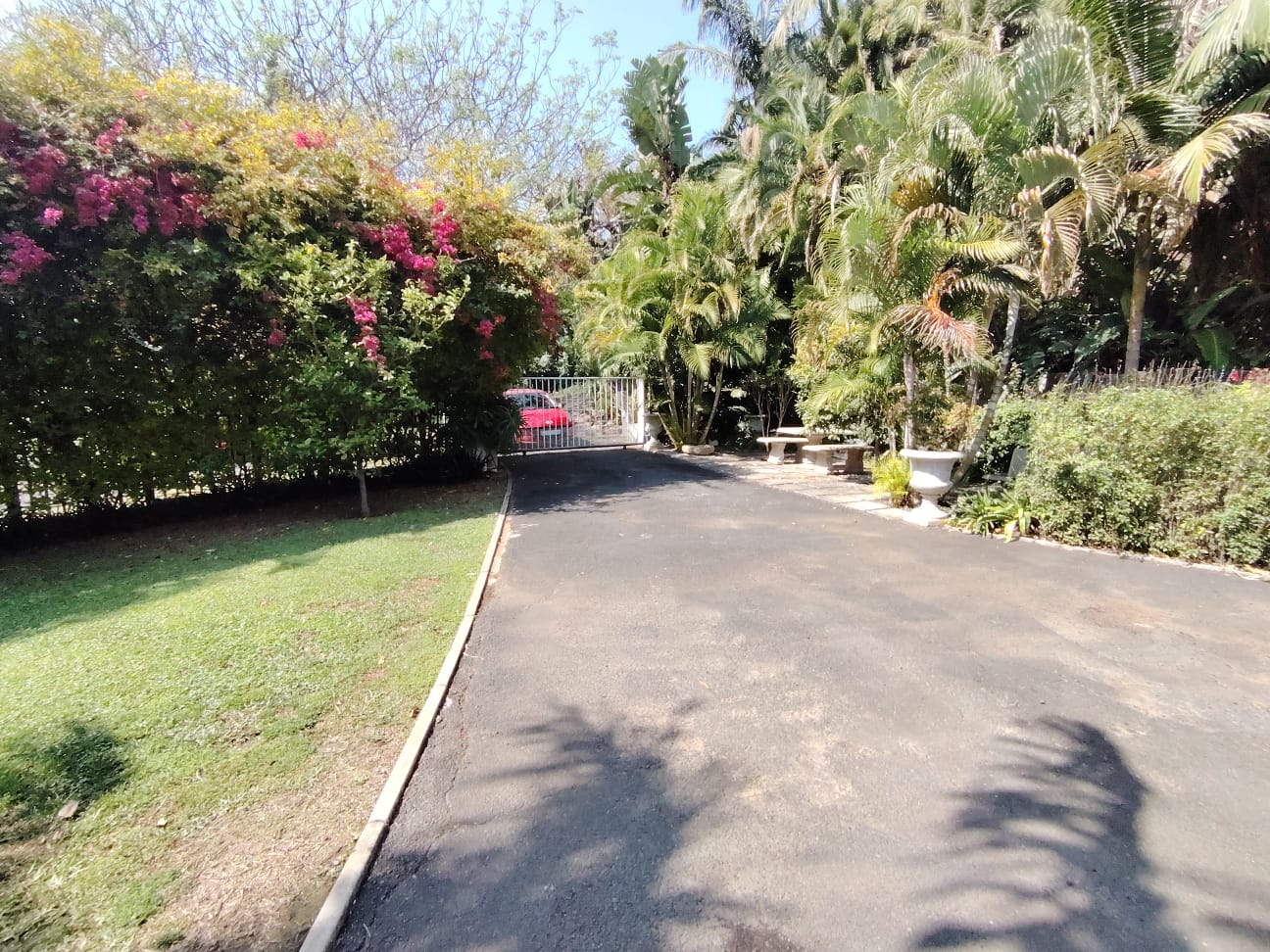 The living areas have been thoughtfully designed to embrace the South Coast lifestyle. Large doors and windows open the home to the outdoors, with two of the bedrooms leading directly onto private patios that overlook the sparkling swimming pool and entertainment area. This seamless indoor-outdoor flow makes the home perfect for hosting, entertaining, or simply enjoying quiet afternoons in the sunshine. The well-manicured garden adds another layer of beauty, with tropical palm trees, vibrant plants, and charming seating nooks spread throughout, creating little corners of privacy and tranquillity.