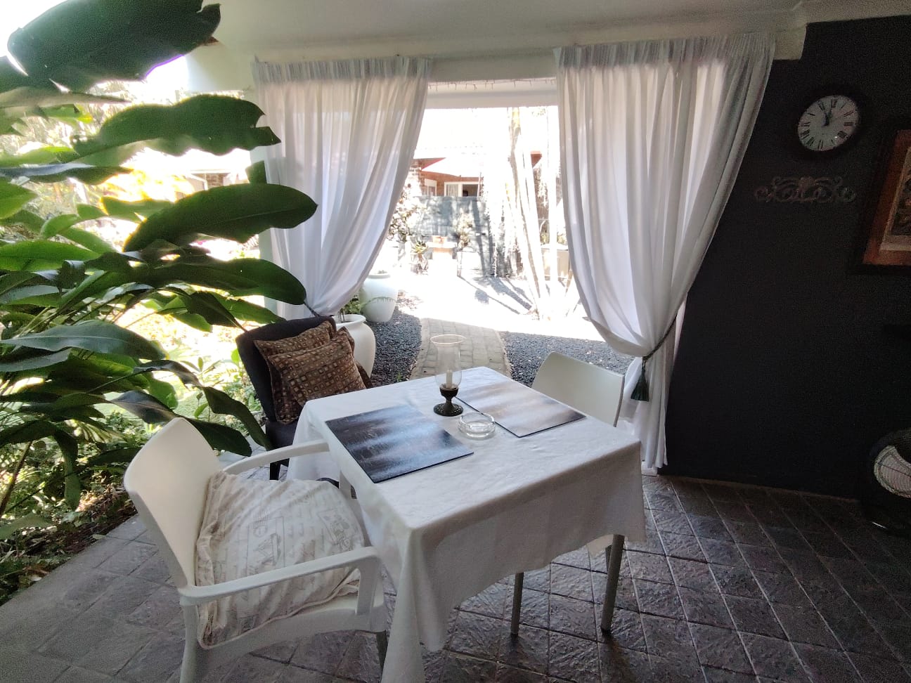 A fourth bedroom is found in a completely separate dwelling on the property, providing the perfect guest suite or private flatlet. This unit includes its own en-suite bathroom and a convenient under-roof kitchenette on the patio, offering independence and privacy for guests, extended family members, or even rental tenants.