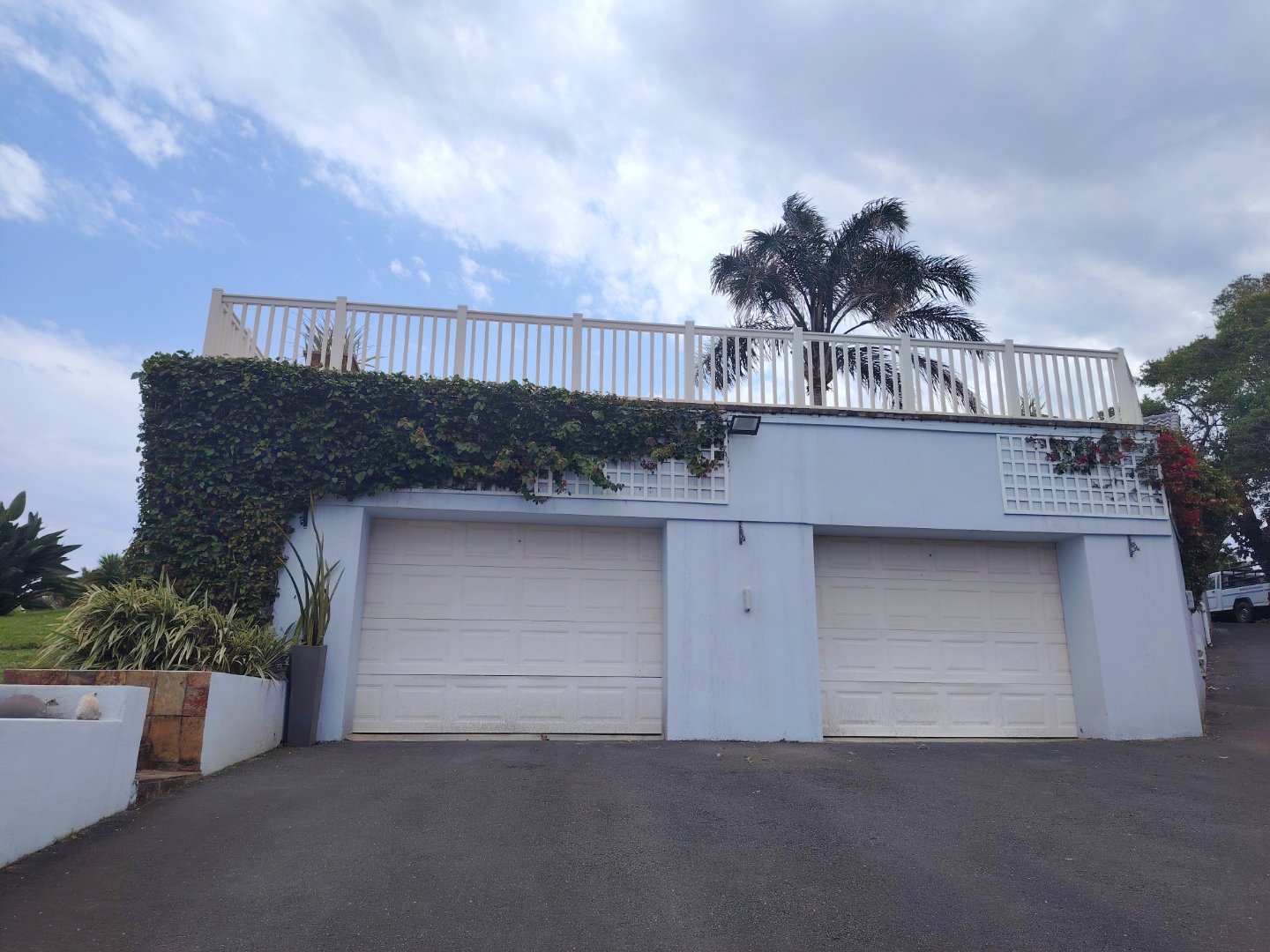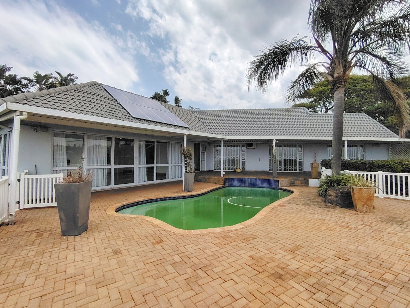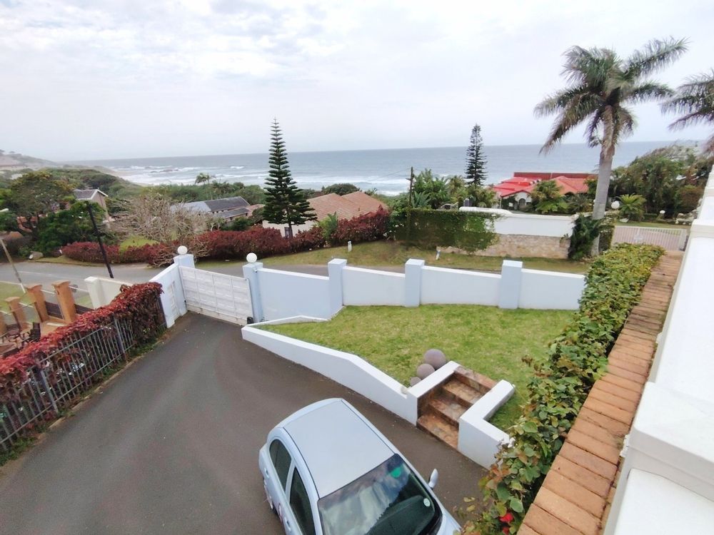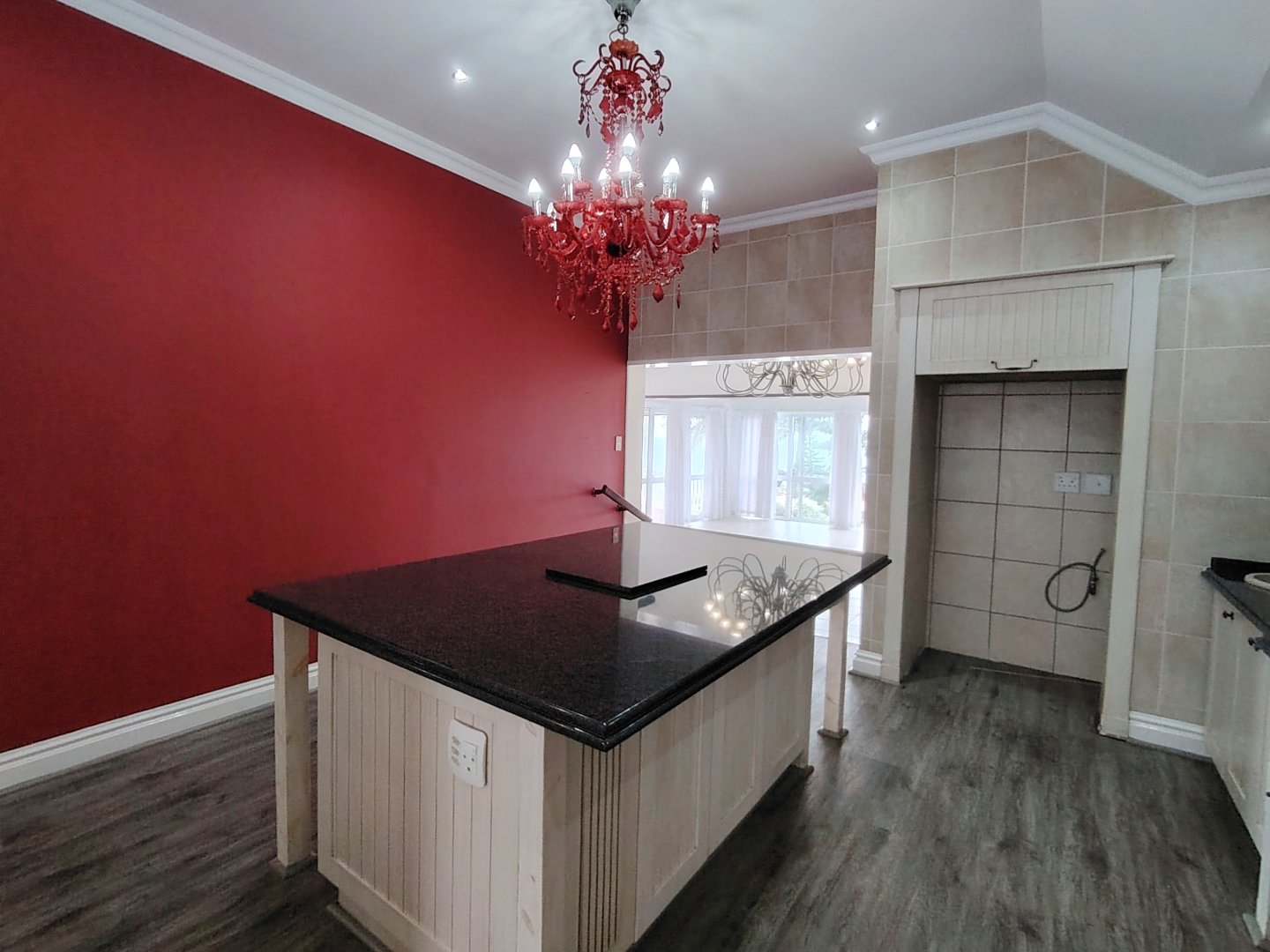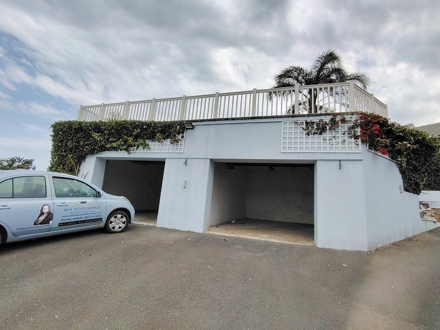 Take a walk through the property .... When entering the property via the electrical gate, the electrical double garages are to the left and the driveway takes you to the back of the home where the flat let is. Let's start with the gorgeous home first. With a few steps to the open plan balcony overlooking the ocean and the side garden where the two Jojo tanks and the borehole is situated. There are additional steps via the grass area to go into the home. When you enter the lounge via the glass stack doors the chandeliers through out the home will take your breath away. I am getting sidetracked again - back to the lounge area, the fiber is visible in the corner and then moving through an archway to the dining room / tv room and another glass sliding door overlooking the pool and balcony area. The first bedroom has a few steps up and the inverter is tucked away in the one walk in cupboard. Moving back to the lounge towards the spectacular kitchen with a red chandelier over the center island with granite tops through out. The electrical glass top and two eye level ovens will keep the Chef of the family busy - the scullery offers a spacious pantry and a laundry area. The cupboard space is the kitchen is a dream kitchen for any Chef and the TV for the cameras are visible while cooking food. All the doors are sea facing and overlooking the pool area. Now we are proceeding towards the rest of the home, down the corridor is the second bedroom to the right overlooking the pool area and all the bedrooms have an under cover patio area to enjoy sunrise. The full family bathroom is to the left and the second bedroom is to the left overlooking the pool and sea view. The third and fourth bedrooms have chandeliers and overlooking the under cover patio with sea views and access to the pool. The entrance hall gives easy access towards the flatlet. Finally the main bedroom is massive with a lot of cupboard space, walk in cupboard, under cover patio and sea view and a full gorgeous bathroom. Now we are moving around the home to the flat let. The entrance hall between the house and flat let gives more privacy to the occupants. Entering the flat let the lounge is big enough for a dining room space and a few steps to the kitchen or you can place a table and chair there. The bedroom has high ceilings and a bathroom with a shower. There is ample open parking for the flat let and for guests. The property is walking distance to the beach. The solar panels will keep your lights on during loadshedding.