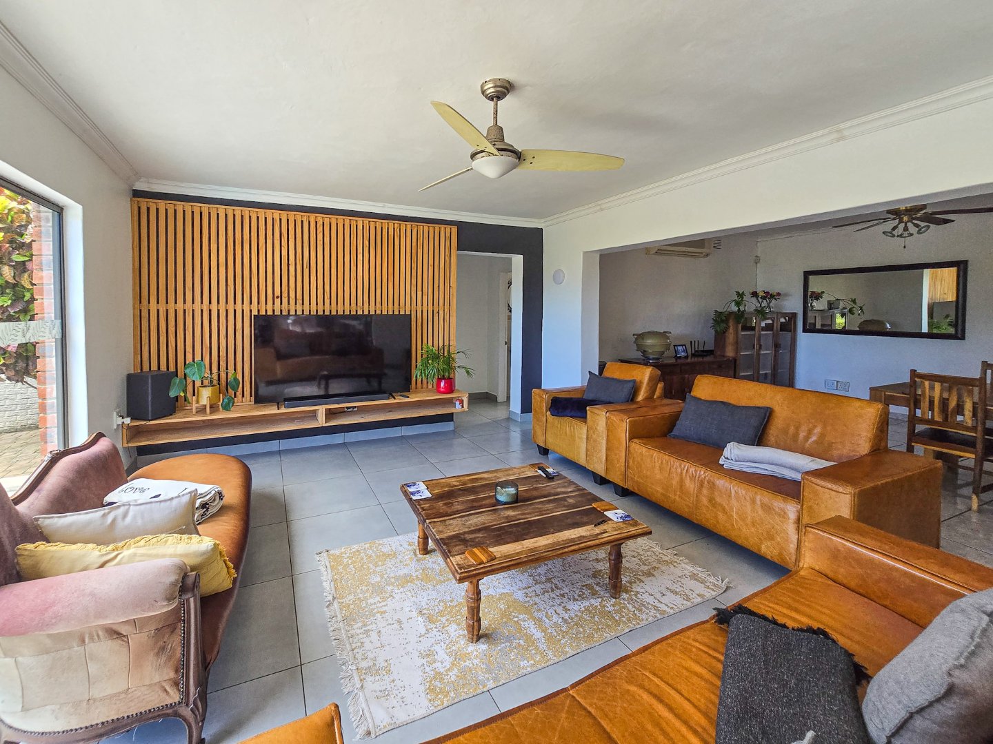 A generous additional room currently used as an entertainment/games room offers versatile possibilities, from a home theatre to a gym or games space. The property includes three garages: one manual, and a double with automatic doors.