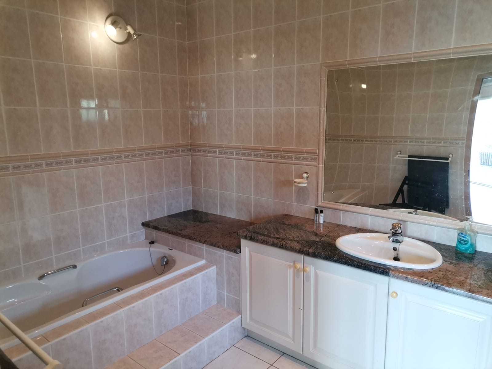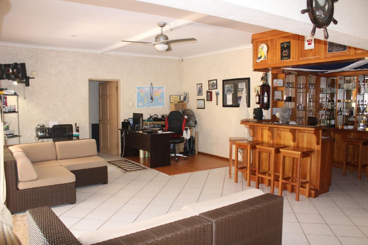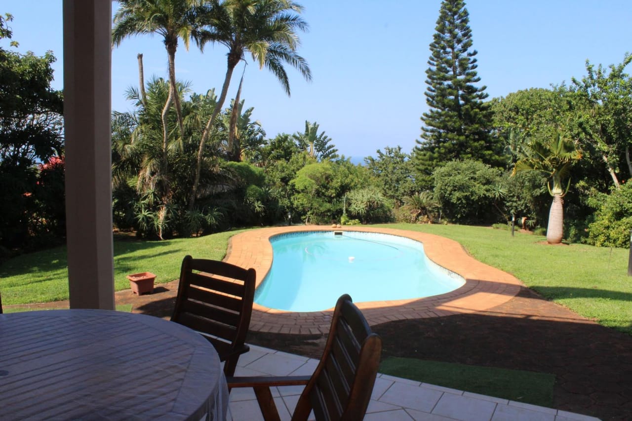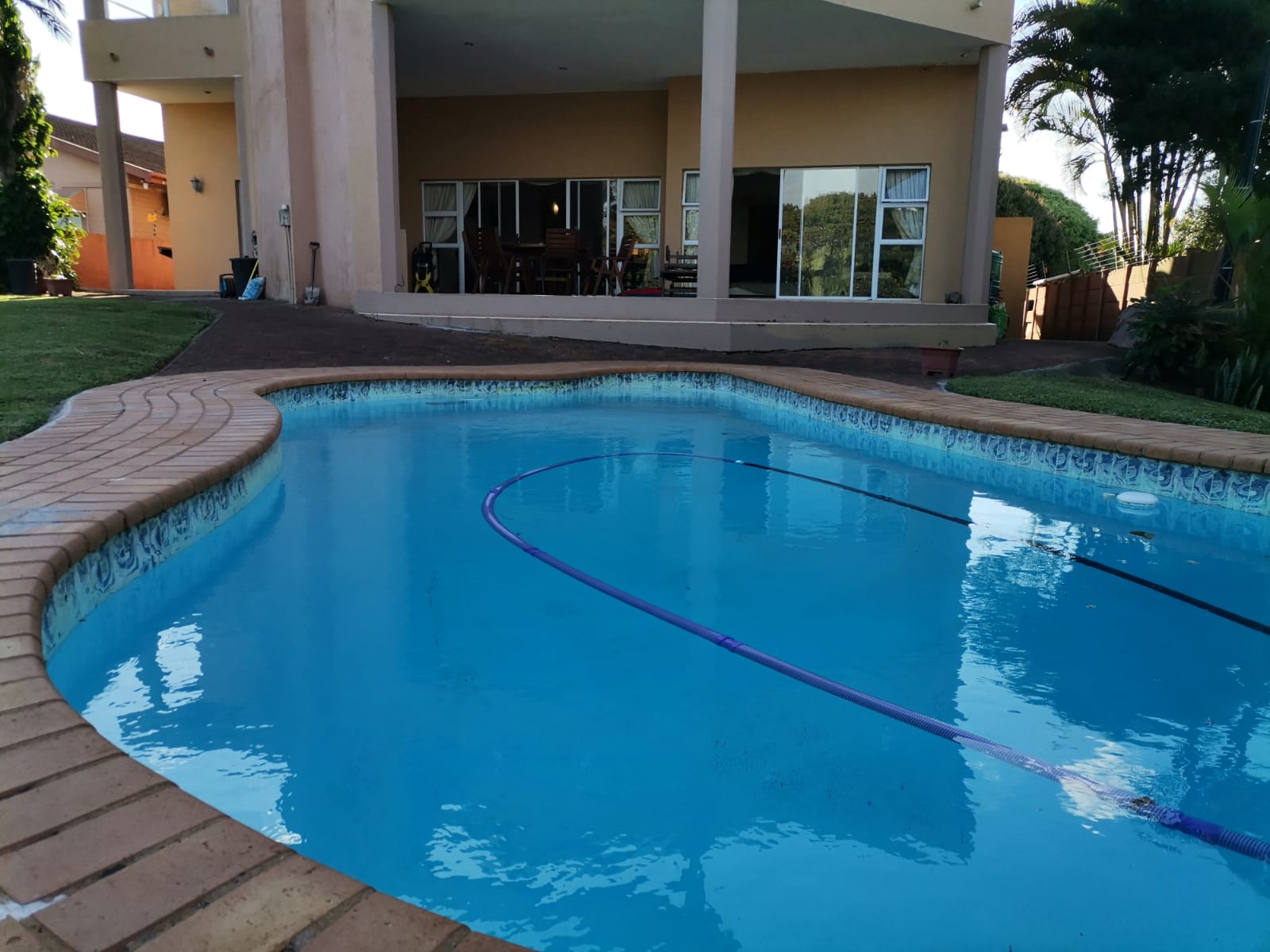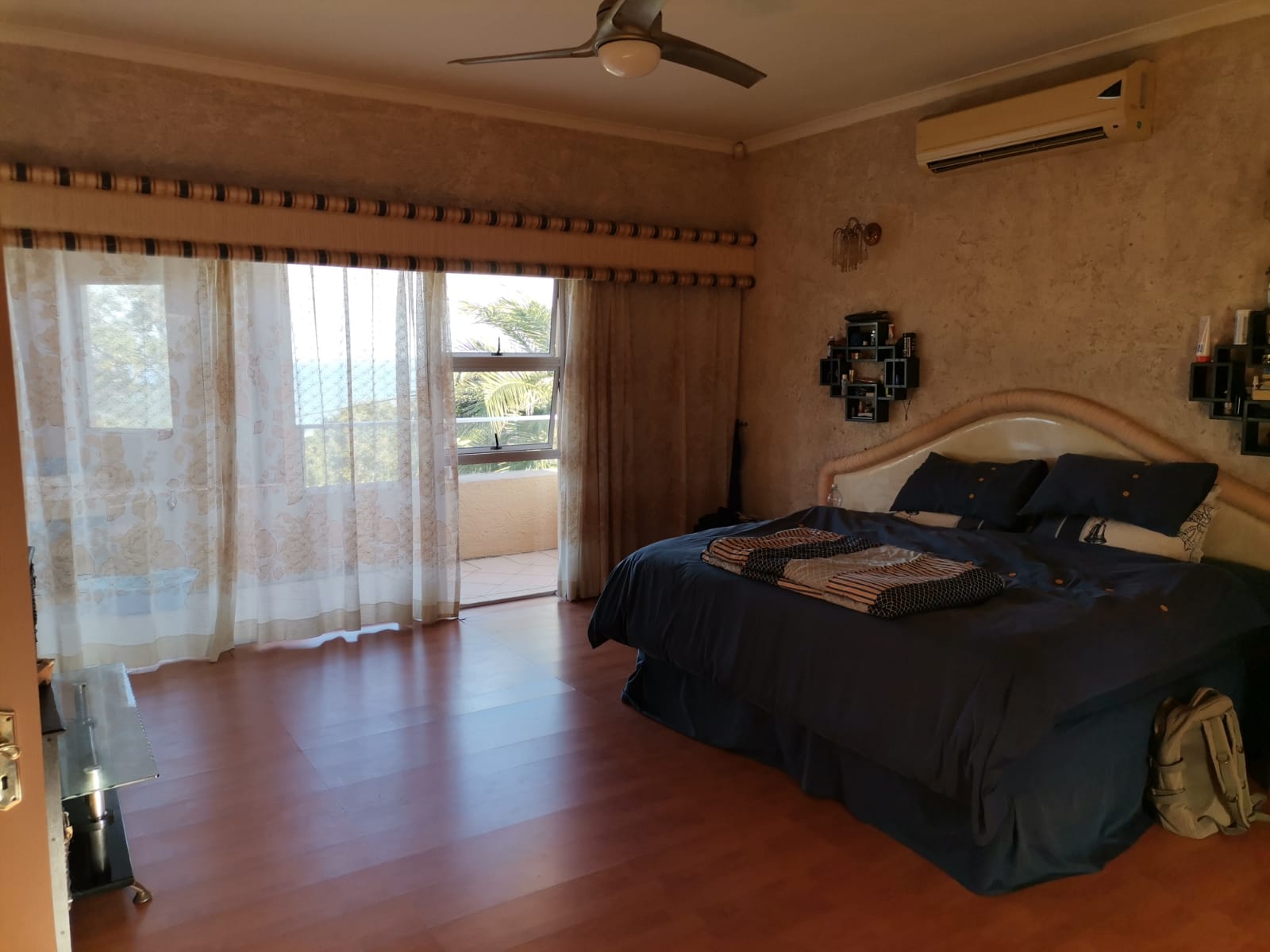 This home is ready for you to move in. Immaculate right through this beautiful property. This is a large property with beautiful sea views, perfect for a large family or make this your perfect getaway holiday home. Property consists of: Four beautifully groomed bedrooms and 4 bathrooms which are placed around an enormous dining and leisure area which leads through sliding doors to the side garden and balcony. Adjacent is a sundowner bar with a guest loo attached, which also has a separate entrance from the outside. Modern spacious kitchen, with beautiful solid wood and glass cabinetry, large island, gas hob and granite finishes. Two Jojo Tanks Servant quarters (Bedroom with bathroom) Alarm Fully electric fenced Pool Outside entertainment area with braai Beautiful bar Two lounges (one on the top floor) Two double garages which can fit 4 vehicles and a workshop that includes 3-phase electricity Each bedroom has en-suite bathrooms and ceiling fans, the main bedroom has got a walk-in closet surrounded with mirrors. Ample cupboard space in each room. Garden is well maintained with a large size pool. This property won't last on the market, make sure you snap it up quickly before you miss out on this amazing property that you could call home.