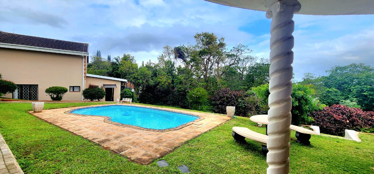 Nestled up on a hill with cooling oceans breeze is a beautiful Property. The main house boasts with 4 bedrooms which are all ensuite and the extra room which would be perfect for the little home office. The main bedroom being on the second level of the house with a covered balcony which is perfect for that cup of coffee and watching the ocean in the morning. Kitchen has solid wood cabinets and granite tops, with the pantry and laundry separate. Walking out of the kitchen you come into the open plan Dining room and Lounge which is ideal for a large family. From the lounge you walk out onto a covered patio which overlooks the swimming pool. The 3 cottages on property can be used for the extended family, who have their own privacy or can be rented out for extra income. Each cottage is unique, which makes it ideal for the hosting lovers for permanent rentals/holiday income. Contact us at ANYTIME to chat further about this remarkable property! Matriarch Real Estate powered by Mandated Property Group (PTY) Ltd
