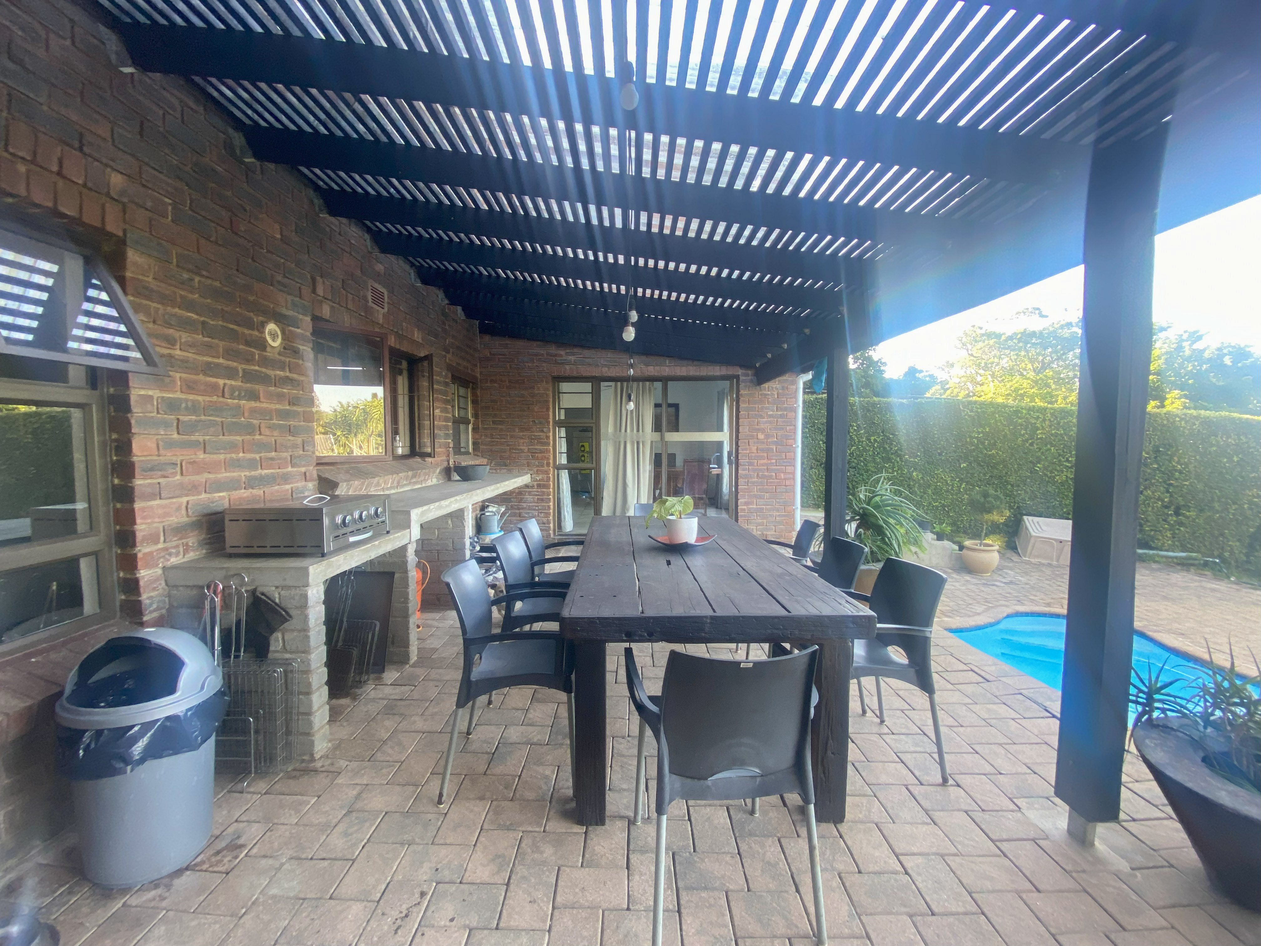 Discover coastal living at its finest in this beautifully designed, low-maintenance facebrick home located in the sought-after area of Ramsgate. Whether you're looking for a spacious family residence, this double-storey property offers breathtaking sea views, versatile interiors, and outstanding entertainment features. Upstairs Highlights Large entertainment/game room – perfect for family enjoyment or a private retreat Two well-sized bedrooms, which are en-suite with air conditioning Third bedroom and additional full bathroom with both shower and bath Downstairs Features Functional kitchen fitted with a gas stove and brand-new electric oven Open-plan lounge and dining area that leads seamlessly to outdoor spaces Direct access to a sparkling swimming pool, fire pit, and beautifully maintained garden – all with stunning sea views Self-Contained Flatlet Private entrance ensuring convenience and privacy Bright one-bedroom layout with generous natural light Bathroom with shower Fully equipped kitchen – ideal for guests, extended family, or rental income Additional Extras Plug-and-play generator-ready connections Double garage plus a third garage or storage space Exterior laundry area and separate toilet Two 5,000L JoJo water tanks providing a reliable backup supply Metal shack included in the sale for added storage or workspace This elegant home combines style, functionality, and coastal charm – the perfect combination for relaxed living and easy entertaining. Contact me today to arrange your private viewing and make this exceptional Ramsgate property your own.