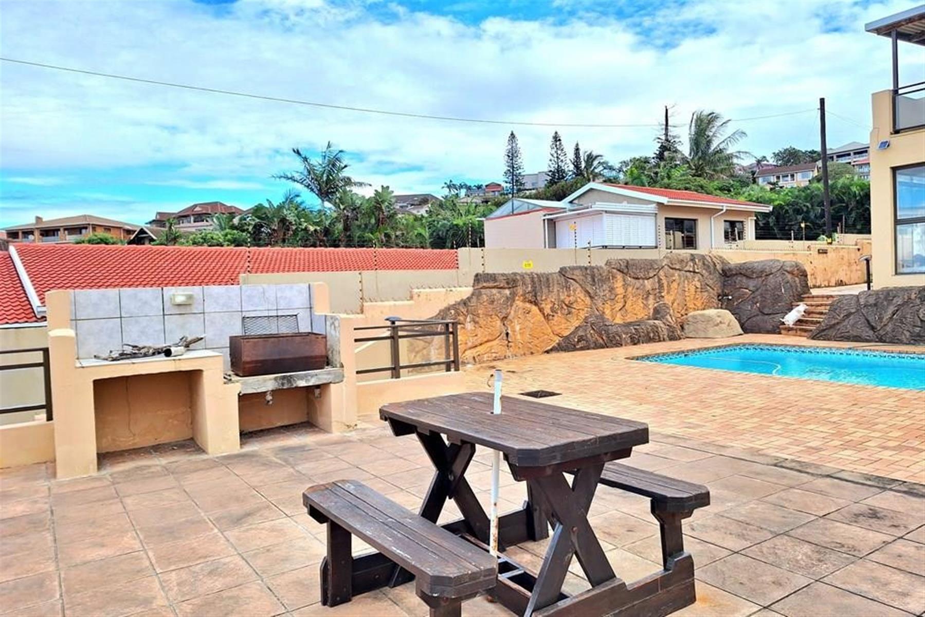 Stunning entertainment area with a sparkling pool and built-in braai (BBQ)