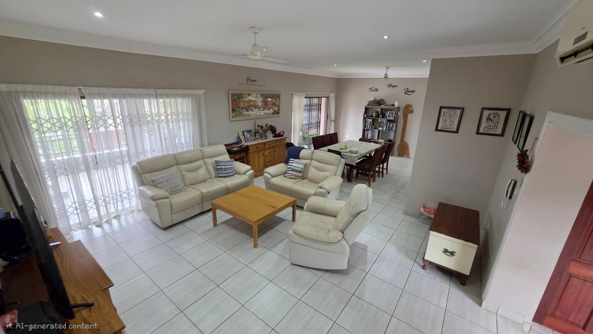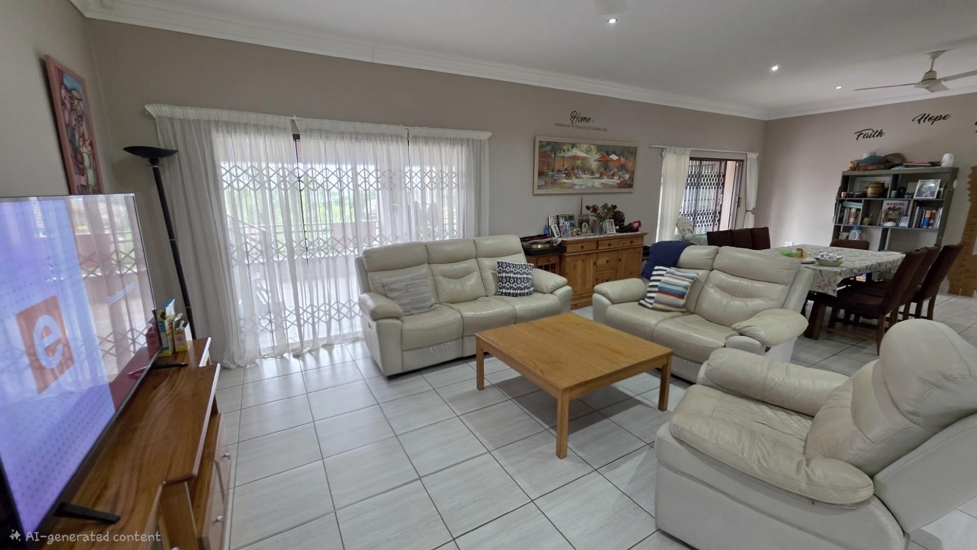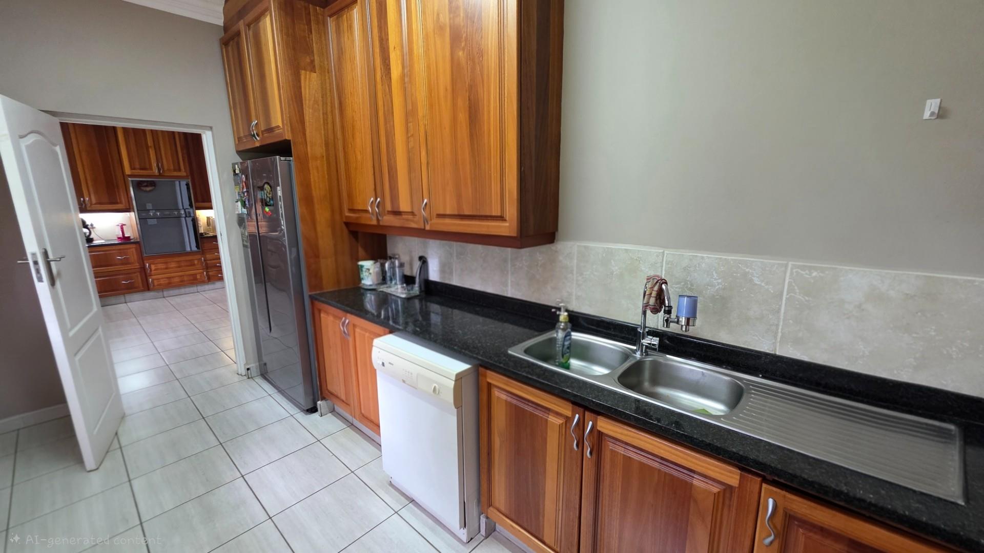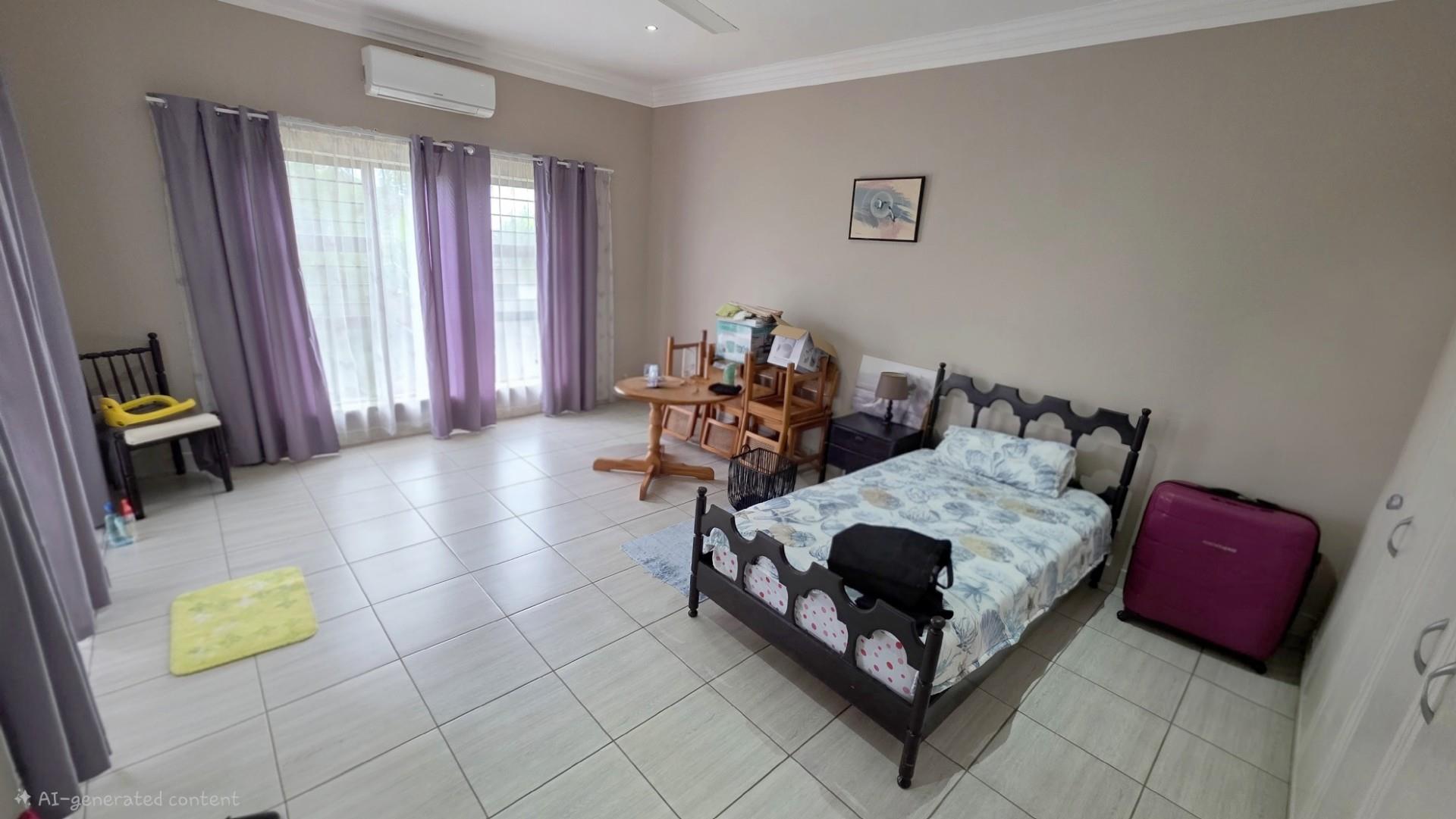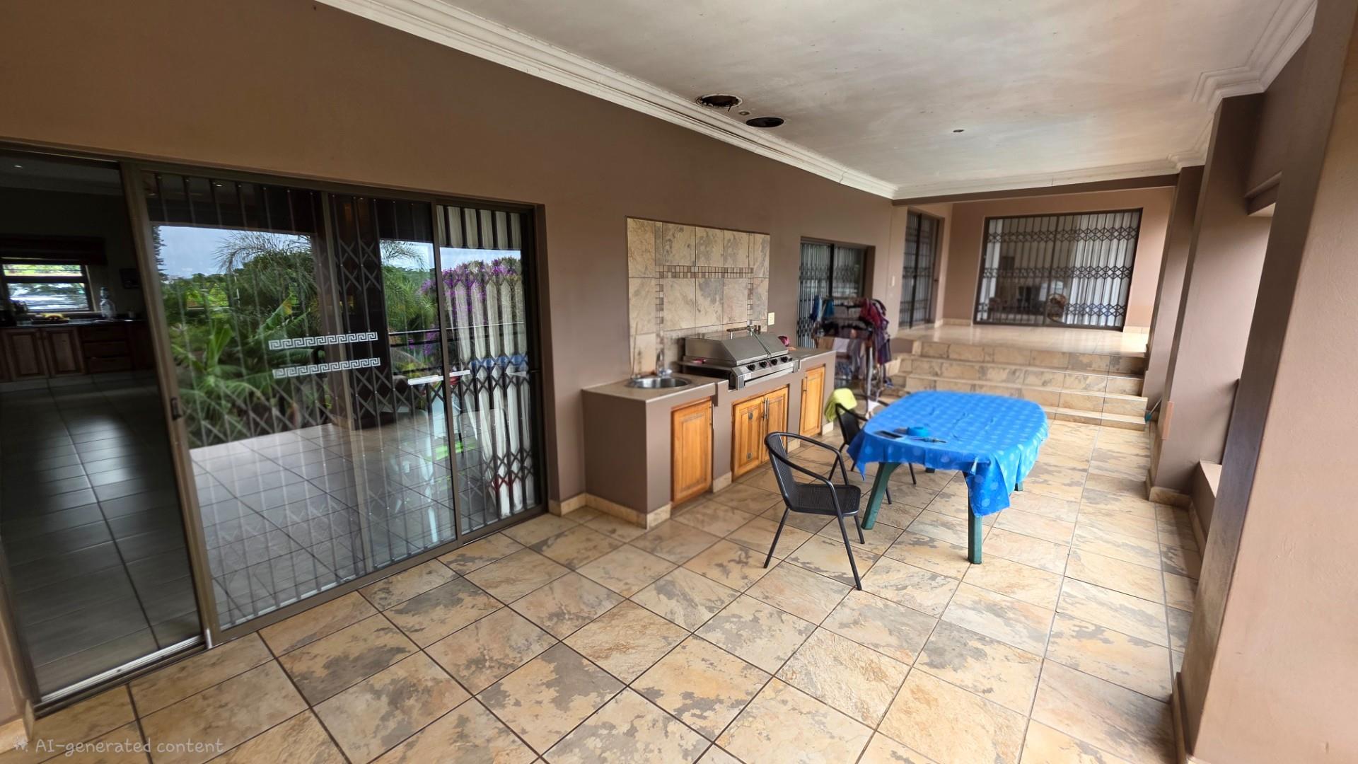 Picturesque home in a tranquil and idyllic Ramsgate. This home of grandeur proportions is situated at the end of a quiet street, surrounded by forestry and blue ocean vistas. The beautiful entrance hall leads you into an immaculately maintained home. with open plan lounge and dining room area, both with sliding doors offering access directly onto the undercover patio and maximises airflow through the home in the very humid months. In fact that is what makes this home so functional. It has been carefully designed and thought out to ensure maximum comfort. The kitchen is the absolute heart of this home. The mesmerizing dark wood cabinetry, with more than ample storage space, crisp granite counter tops, extractor fan, breakfast nook and an additional extension to the kitchen as a scullery which allows all of your bigger appliances to be separate from the main kitchen.